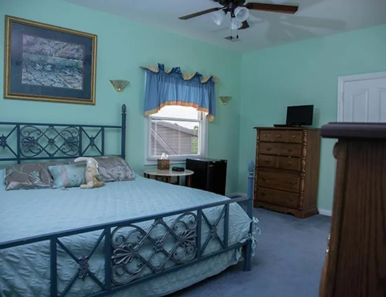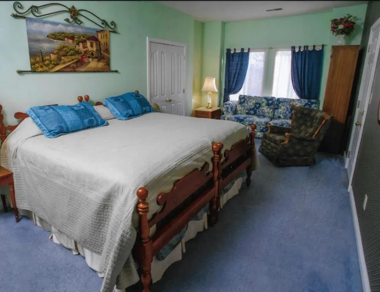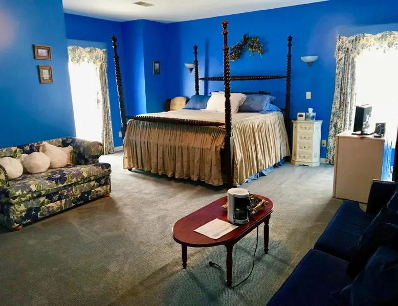 Comfortable Accommodations: Rabbit Creek Bed & Breakfast in Versailles offers family rooms with private bathrooms, air-conditioning, and free WiFi. Each room includes a balcony or patio with pool views, a dining area, and a sofa bed. Relaxing Facilities: Guests can enjoy a sun terrace, seasonal outdoor swimming pool, and a beautiful garden. Additional amenities include a lounge, games room, and outdoor seating area. Free on-site parking is available. Convenient Services: The property provides a free airport shuttle service to Blue Grass Airport, 12 mi away. Private check-in and check-out, laundry service, and breakfast in the room enhance the stay. Local Attractions: Nearby attractions include Keeneland Race Course (15 mi), Lexington McConnell Springs (19 mi), and The Mall At Lexington Green (21 mi). Cycling activities are available for guests. This spacious room has a seating area and cable TV.