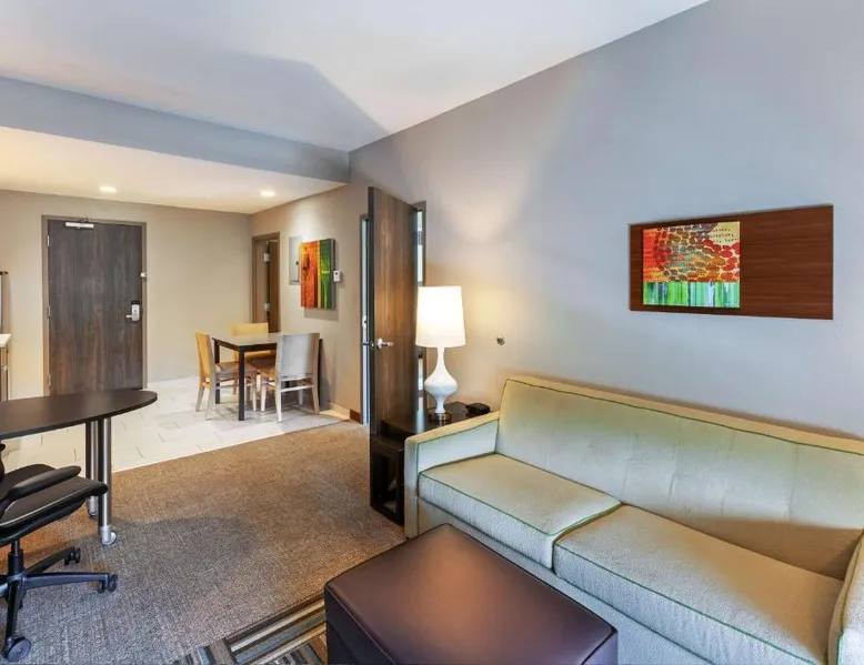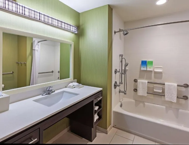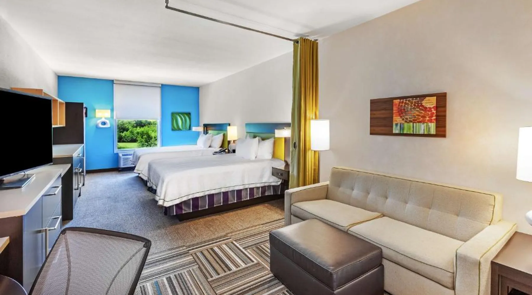 Comfortable Accommodations: Home2 Suites By Hilton Gonzales in Gonzales offers family rooms with air-conditioning, free WiFi, and modern amenities. Guests enjoy amenities such as a fitness center, sun terrace, and a year-round outdoor swimming pool. Dining and Facilities: The hotel provides an American breakfast with fresh pastries, pancakes, cheese, fruits, and juice. Additional facilities include a lounge, outdoor fireplace, fitness room, 24-hour front desk, minimarket, business area, outdoor seating, picnic area, and barbecue facilities. Location and Attractions: Located 27 mi from Baton Rouge Metropolitan Airport, the hotel is near Theater Baton Rouge (22 mi), Louisiana State University (24 mi), and other attractions. Guests appreciate the attentive staff, room cleanliness, and comfort. The suite provides air conditioning and a tea and coffee maker. The unit offers 2 beds.
