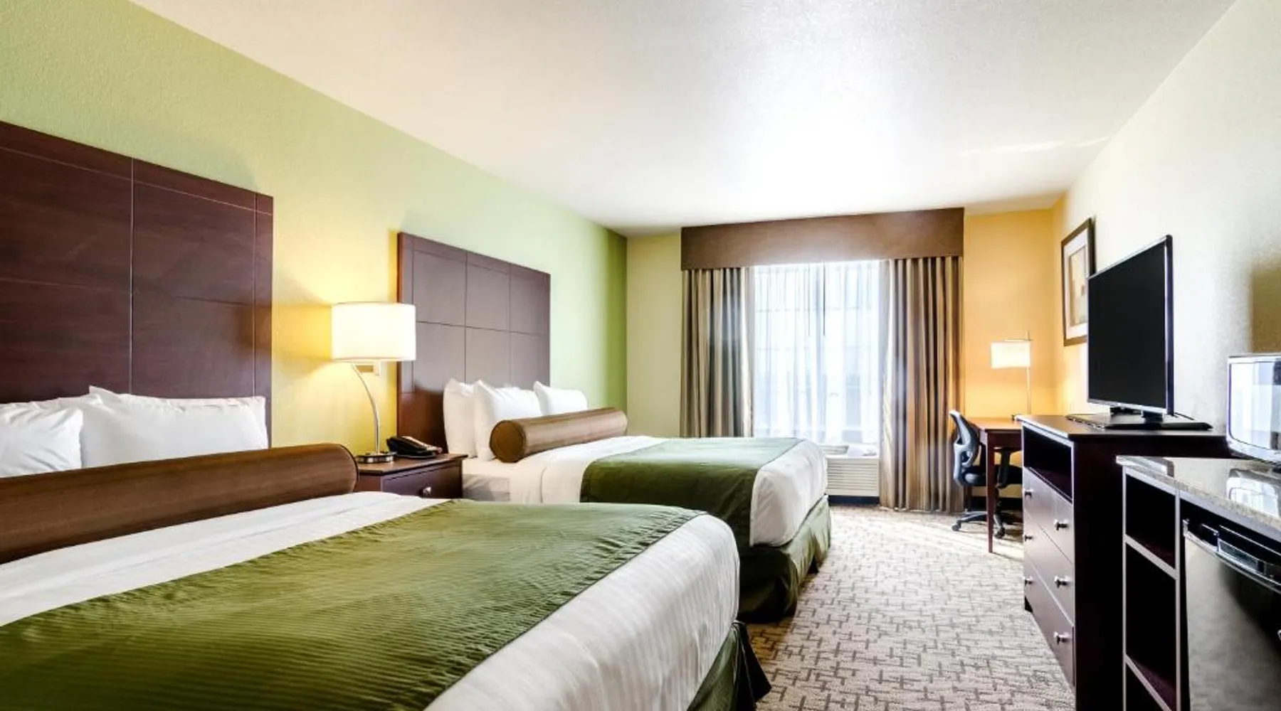 Comfortable Accommodations: Cobblestone Hotel & Suites - McCook in McCook offers clean and comfortable rooms with air-conditioning, private bathrooms, and free WiFi. Guests appreciate the room cleanliness and comfort. Exceptional Facilities: The hotel features a fitness center, indoor swimming pool, and a bar. Additional amenities include a lounge, 24-hour front desk, minimarket, and free on-site private parking. Delicious Breakfast: A complimentary American buffet breakfast is served daily, providing a great start to the day. Convenient Location: Located 3.7 mi from McCook Ben Nelson Regional Airport, the hotel offers easy access to local attractions. The quadruple room offers air conditioning and a tea and coffee maker. The unit offers 2 beds.