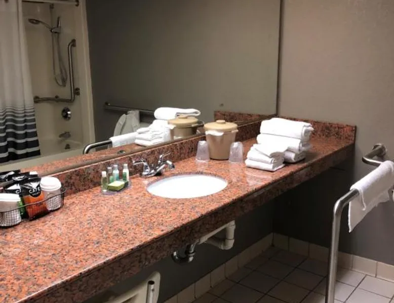 Located in downtown Frankfort, within 1.2 mi of Buffalo Trace Distillery and Kentucky State Capitol, Capital Plaza Hotel features a fitness center, guest laundry, an indoor heated pool, as well as free WiFi. A complimentary hot buffet breakfast is available each morning at the hotel. Capital Plaza Hotel, overlooking the Kentucky River, offers a business center for guest use and a 24-hour front desk. Kentucky State University is 6.2 mi from the property. The nearest airport is Blue Grass Airport, 19 mi from Capital Plaza Hotel. This room features a closed-caption TV, additional emergency light and smoke detectors and a key entryway. All bath, lighting and climate-control features are positioned on a lower level for easy access. The bathroom has an accessible shower, wide door, as well as grab bars and a raised toilet.