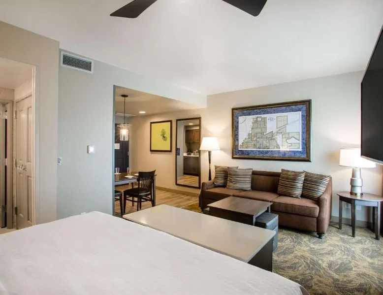 Comfortable Accommodations: Homewood Suites By Hilton Salina/Downtown in Salina offers family rooms with air-conditioning, kitchen facilities, and free WiFi. Each room includes a work desk, seating area, and modern amenities. Exceptional Facilities: Guests can enjoy a saltwater swimming pool, indoor pool, fitness center, and outdoor fireplace. Additional amenities include a lounge, coffee shop, and bar. Free on-site parking is available. Dining Experience: The modern, family-friendly restaurant serves American cuisine for lunch and dinner, complemented by a bar offering cocktails. Room service and barbecue facilities enhance the dining experience. Convenient Location: Located 3.7 mi from Salina Regional Airport, the hotel is highly rated for its convenient location, room cleanliness, and attentive staff. Meals can be prepared in the kitchen, which comes with a stovetop, a refrigerator, a dishwasher and kitchenware. The suite provides air conditioning, a tea and coffee maker, a seating area, heating, as well as a flat-screen TV with cable channels. The unit offers 2 beds.