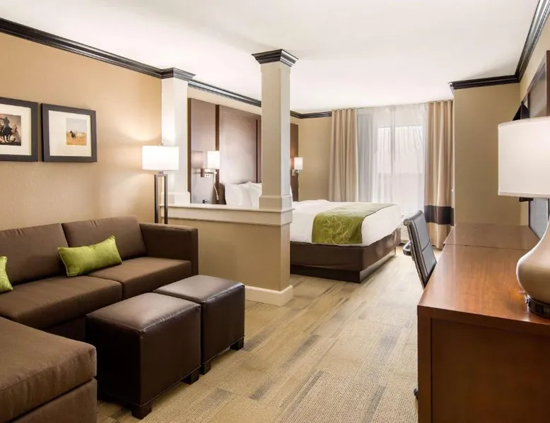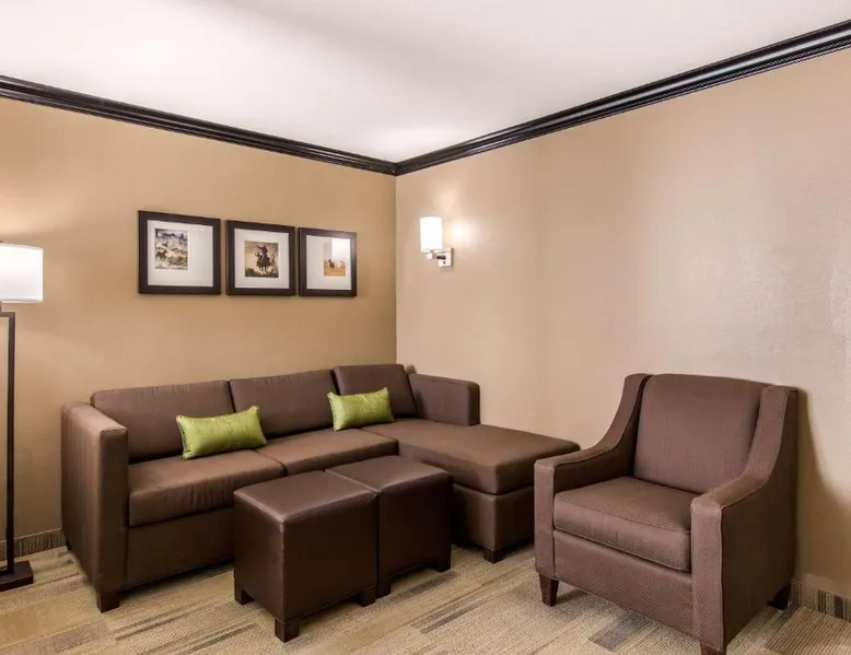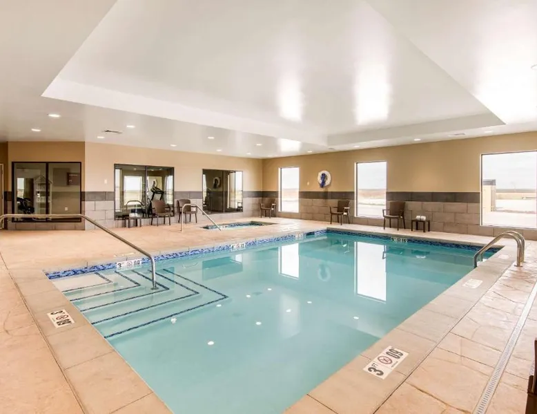 Comfortable Accommodations: Comfort Suites Liberal North in Liberal offers family rooms with private bathrooms, featuring bath or shower and TV. Guests appreciate the room cleanliness and comfort. Exceptional Facilities: The hotel includes an indoor swimming pool, fitness room, hot tub, and lounge. Free WiFi is available throughout the property. Convenient Services: Private check-in and check-out, 24-hour front desk, and free on-site parking enhance the stay. Additional amenities include a minimarket, business area, and child-friendly buffet. Breakfast and Location: A continental breakfast is served daily. The hotel is 3.1 mi from Liberal Mid-America Regional Airport. The triple room provides heating, as well as a private bathroom featuring a bath or a shower. The unit offers 2 beds.