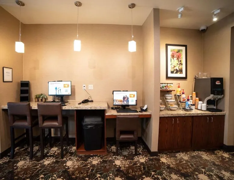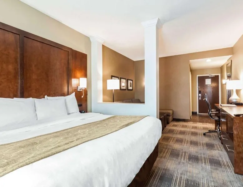 Comfortable Accommodations: Comfort Suites University Brookings in Brookings offers spacious rooms with air-conditioning, private bathrooms, and free WiFi. Guests appreciate the room comfort, cleanliness, and size. Exceptional Facilities: The hotel features an indoor swimming pool, fitness center, restaurant, bar, and hot tub. Additional amenities include a lounge, fitness room, elevator, 24-hour front desk, minimarket, and business area. Dining Experience: A family-friendly restaurant serves local cuisine with dinner and cocktails in a romantic ambiance. Breakfast includes juice, fresh pastries, and fruits. Convenient Location: Located 51 mi from Watertown Regional Airport, the hotel provides free on-site parking and is highly rated by guests. The air-conditioned suite has 1 bedroom and 1 bathroom with a shower and a hairdryer. The suite features carpeted floors, a seating area with a flat-screen TV with cable channels, a tea and coffee maker, a wardrobe, as well as a sofa. The unit has 1 bed.