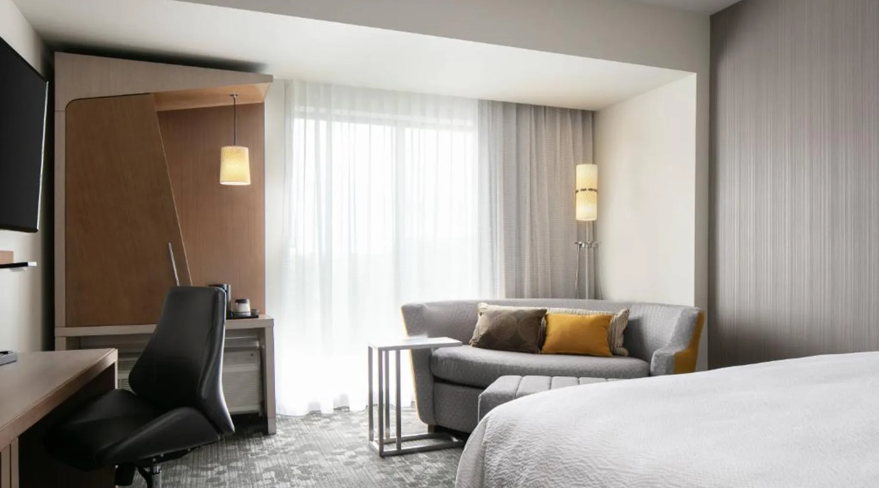 Comfortable Accommodations: Courtyard Sioux City Downtown/Convention Center in Sioux City offers rooms with air-conditioning, private bathrooms, and free WiFi. Each room includes a work desk, wardrobe, and free toiletries. Dining and Leisure: The modern, family-friendly restaurant serves American cuisine for brunch and dinner. Guests can also enjoy the bar and indoor swimming pool. Additional facilities include an outdoor fireplace, fitness room, and outdoor seating area. Convenient Location: Located 6.2 mi from Sioux Gateway Airport, the hotel is a short walk from the Sioux City Convention Center and near attractions such as the Sioux City Art Center (1969 feet) and Tyson Events Center (less than 0.6 mi). Guest Satisfaction: Highly rated for room cleanliness, comfort, and attentive staff, the hotel ensures a pleasant stay for all visitors. The double room features air conditioning, a wardrobe, as well as a private bathroom boasting a bath or a shower and a hairdryer. The double room provides a carpeted floor and heating. The unit has 2 beds.