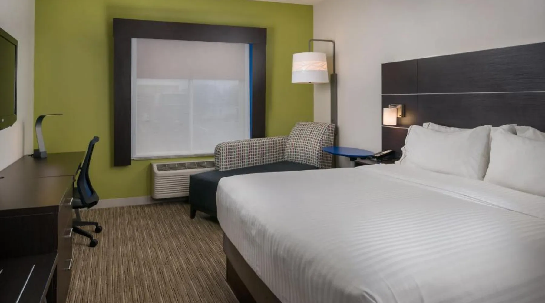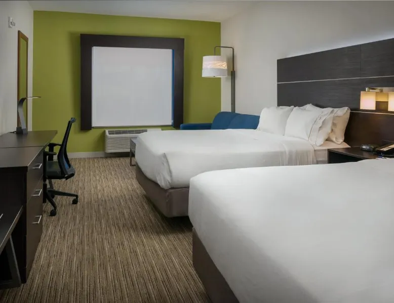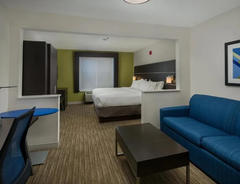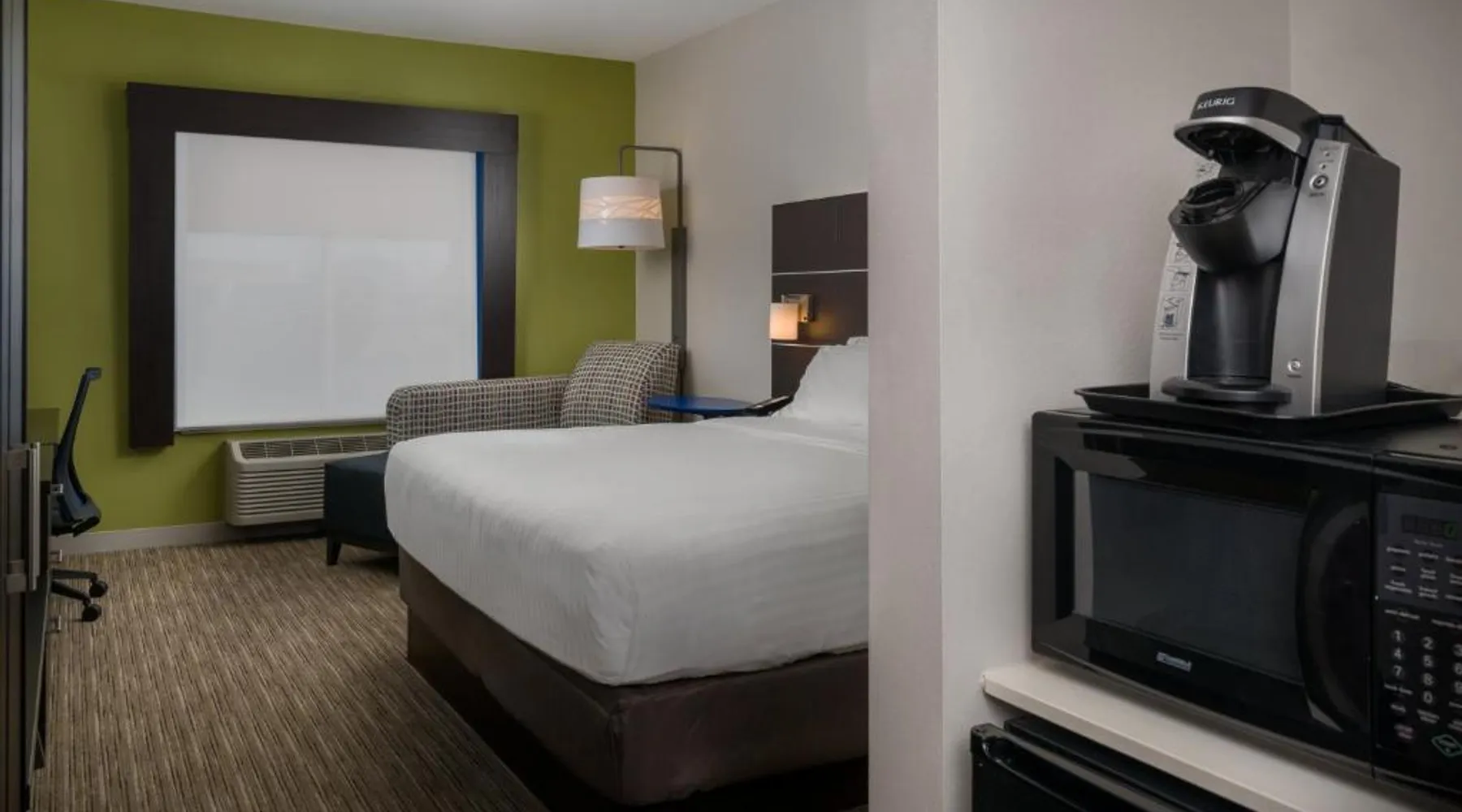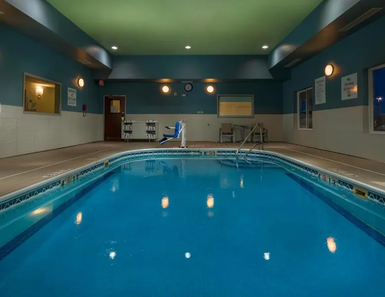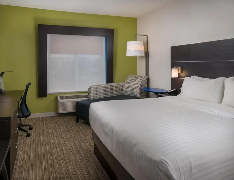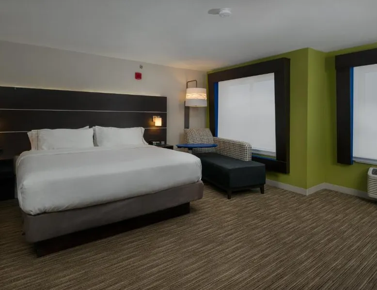 Comfortable Accommodations: Holiday Inn Express Lawrence by IHG in Lawrence offers family rooms with air-conditioning, kitchenettes, private bathrooms, and free WiFi. Each room includes a work desk, seating area, and TV. Leisure Facilities: Guests can enjoy a fitness center, indoor swimming pool, and hot tub. Additional amenities include a fitness room, elevator, 24-hour front desk, minimarket, business area, and free on-site parking. Dining Options: A continental buffet breakfast is served daily. The property also provides a coffee machine, refrigerator, microwave, and dining area. Location and Attractions: Located 46 mi from Kansas City International Airport, the hotel is near Kansas Memorial Stadium (3.7 mi) and Great Wolf Lodge Kansas City (31 mi). Highly rated for its breakfast, room comfort, and attentive staff. The unit has 1 bed.