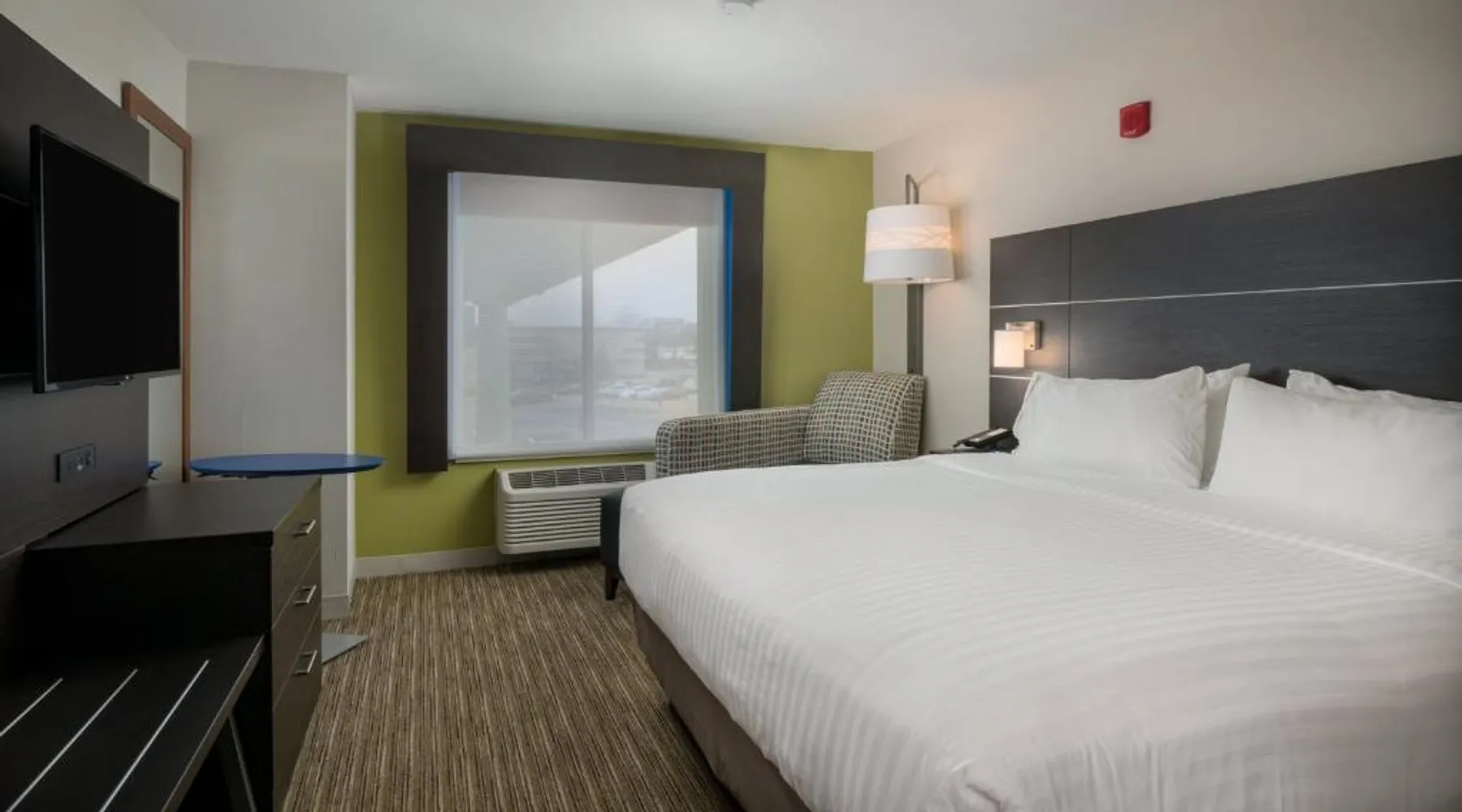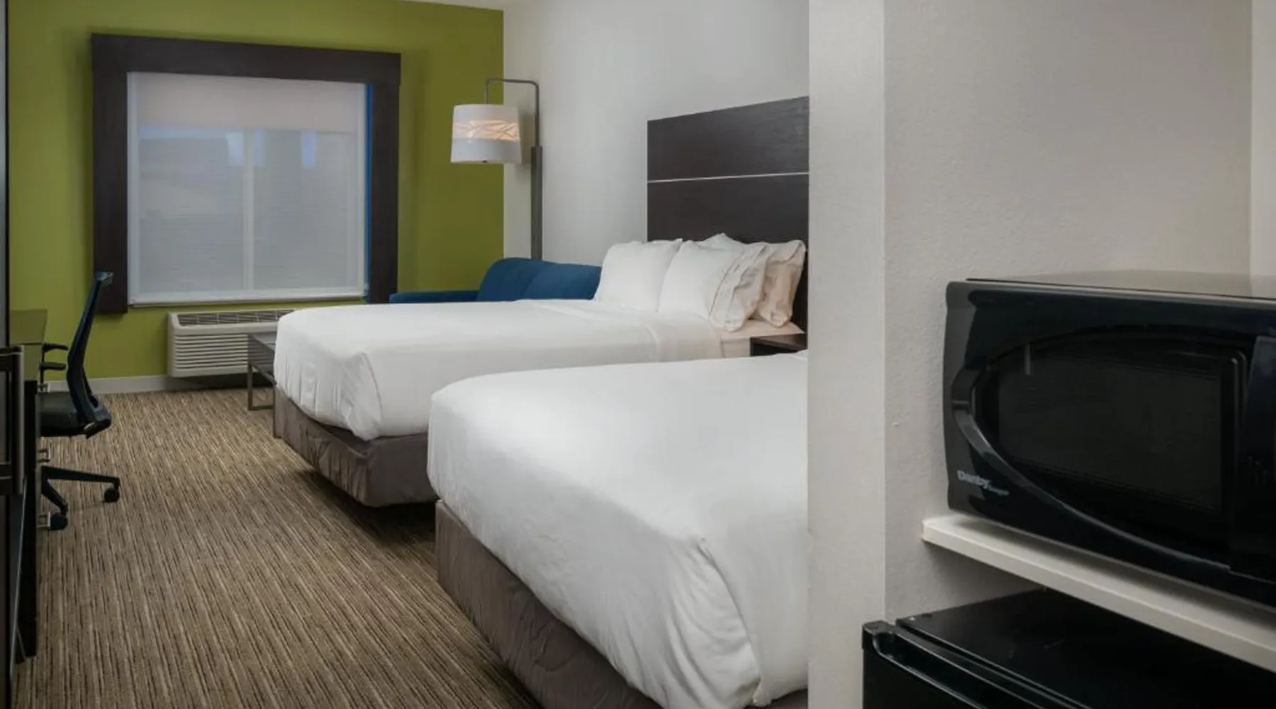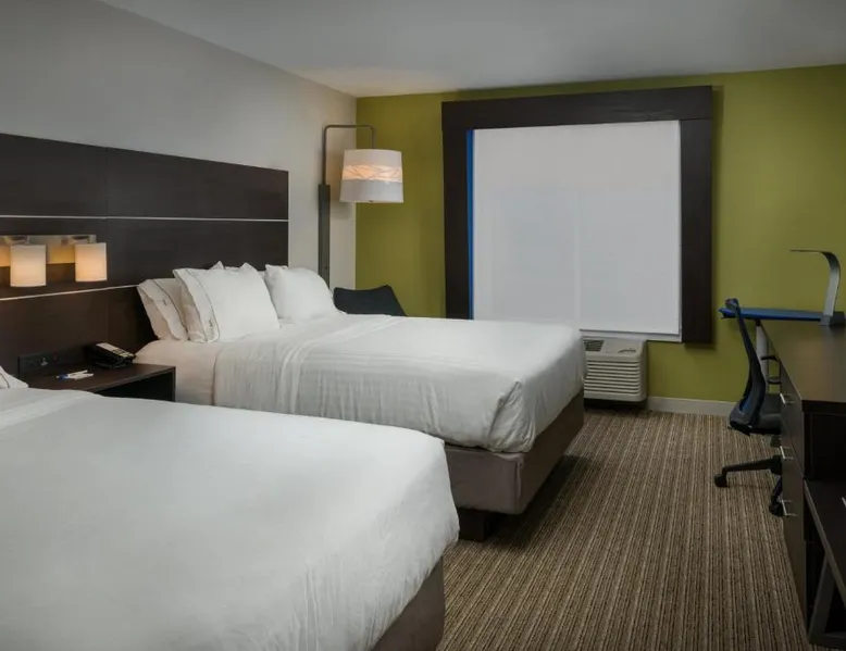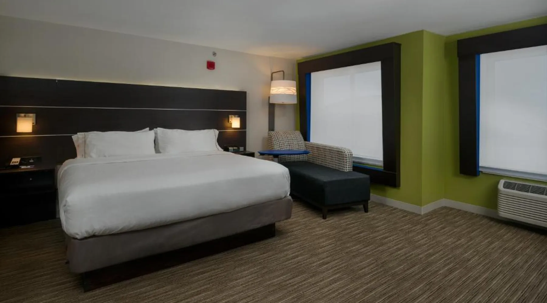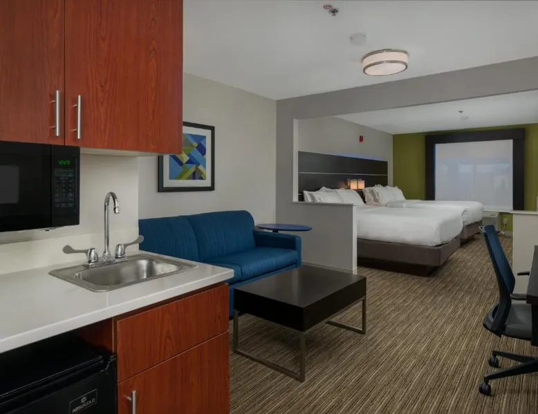 Comfortable Accommodations: Holiday Inn Express Lawrence by IHG in Lawrence offers family rooms with air-conditioning, kitchenettes, private bathrooms, and free WiFi. Each room includes a work desk, seating area, and TV. Leisure Facilities: Guests can enjoy a fitness center, indoor swimming pool, and hot tub. Additional amenities include a fitness room, elevator, 24-hour front desk, minimarket, business area, and free on-site parking. Dining Options: A continental buffet breakfast is served daily. The property also provides a coffee machine, refrigerator, microwave, and dining area. Location and Attractions: Located 46 mi from Kansas City International Airport, the hotel is near Kansas Memorial Stadium (3.7 mi) and Great Wolf Lodge Kansas City (31 mi). Highly rated for its breakfast, room comfort, and attentive staff. The unit has 1 bed.