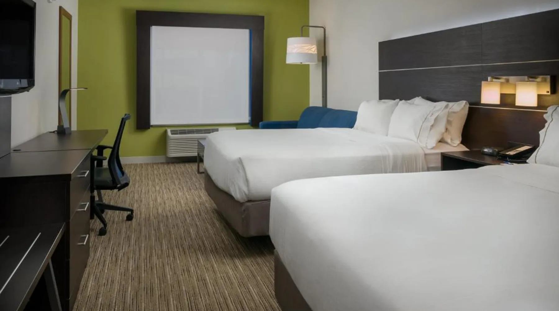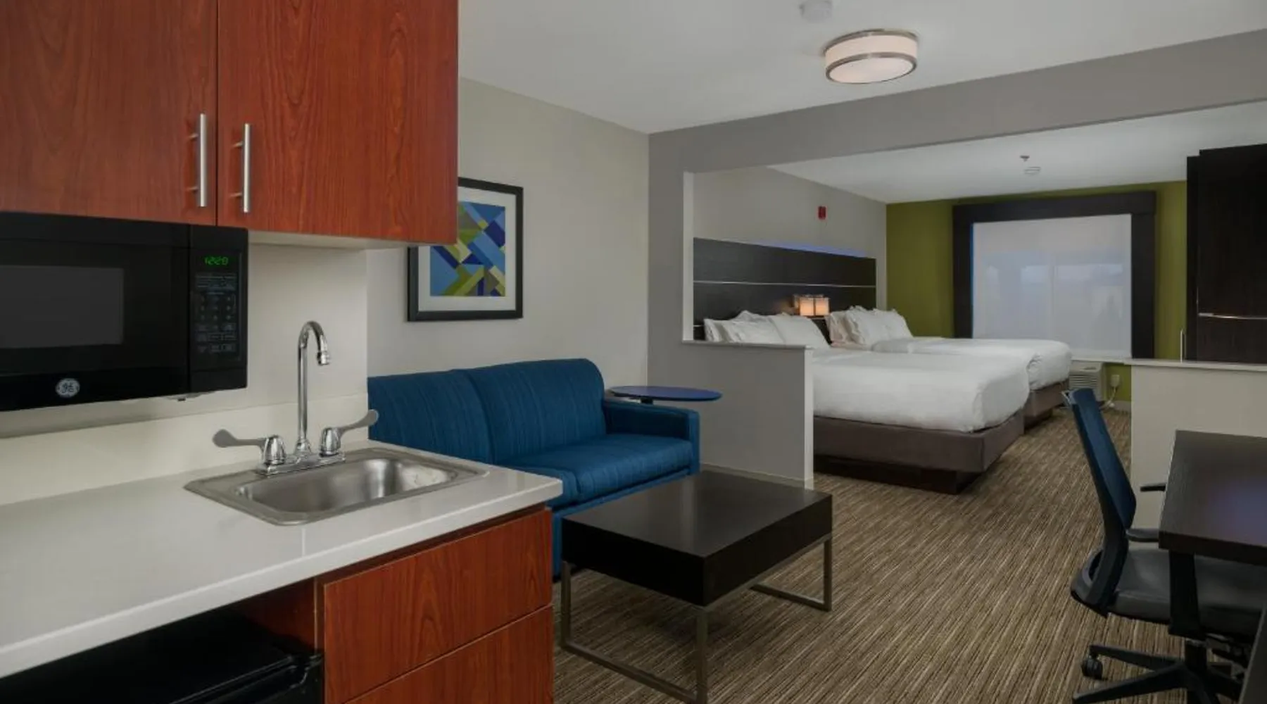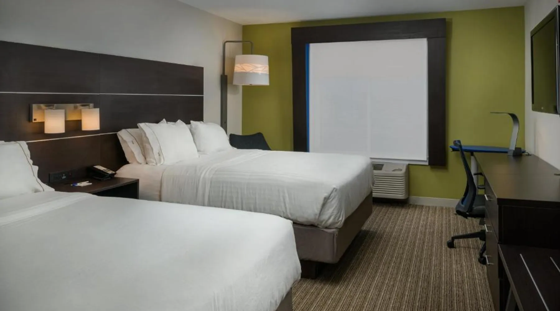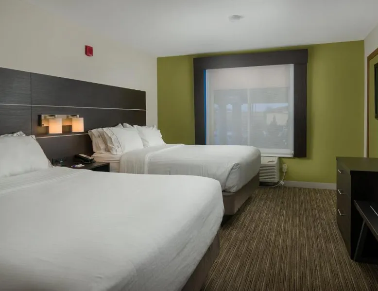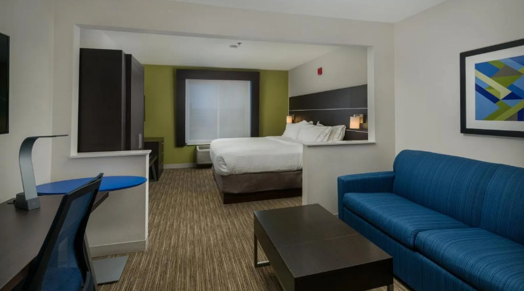 Comfortable Accommodations: Holiday Inn Express Lawrence by IHG in Lawrence offers family rooms with air-conditioning, kitchenettes, private bathrooms, and free WiFi. Each room includes a work desk, seating area, and TV. Leisure Facilities: Guests can enjoy a fitness center, indoor swimming pool, and hot tub. Additional amenities include a fitness room, elevator, 24-hour front desk, minimarket, business area, and free on-site parking. Dining Options: A continental buffet breakfast is served daily. The property also provides a coffee machine, refrigerator, microwave, and dining area. Location and Attractions: Located 46 mi from Kansas City International Airport, the hotel is near Kansas Memorial Stadium (3.7 mi) and Great Wolf Lodge Kansas City (31 mi). Highly rated for its breakfast, room comfort, and attentive staff. The unit has 1 bed.