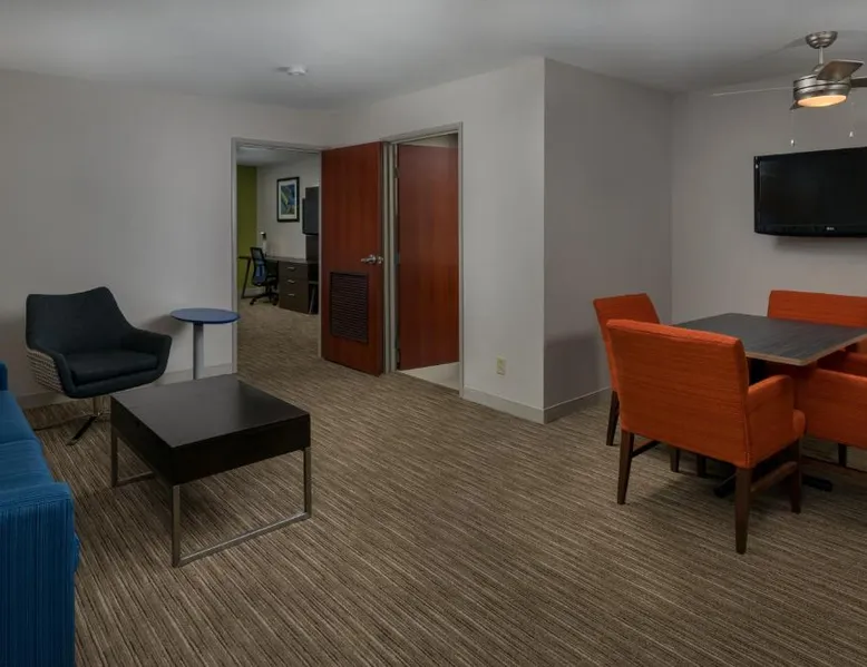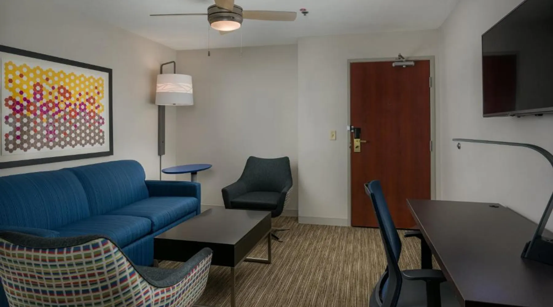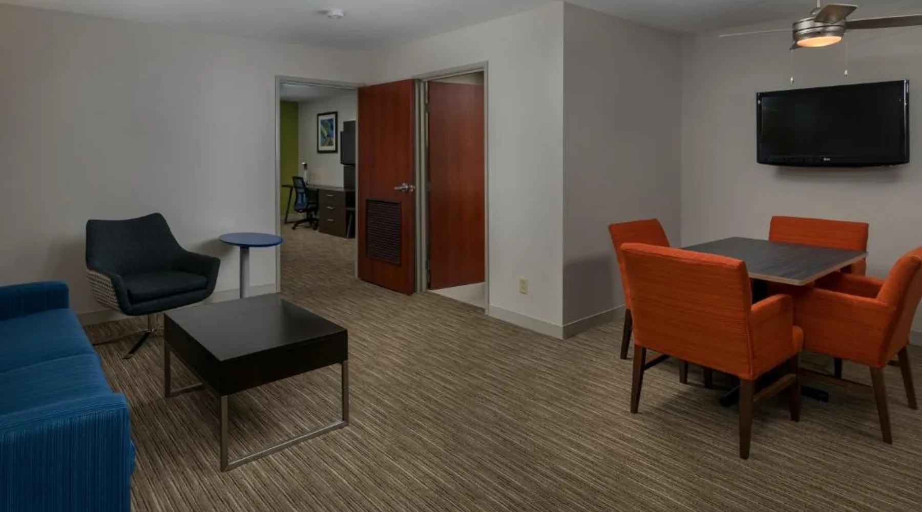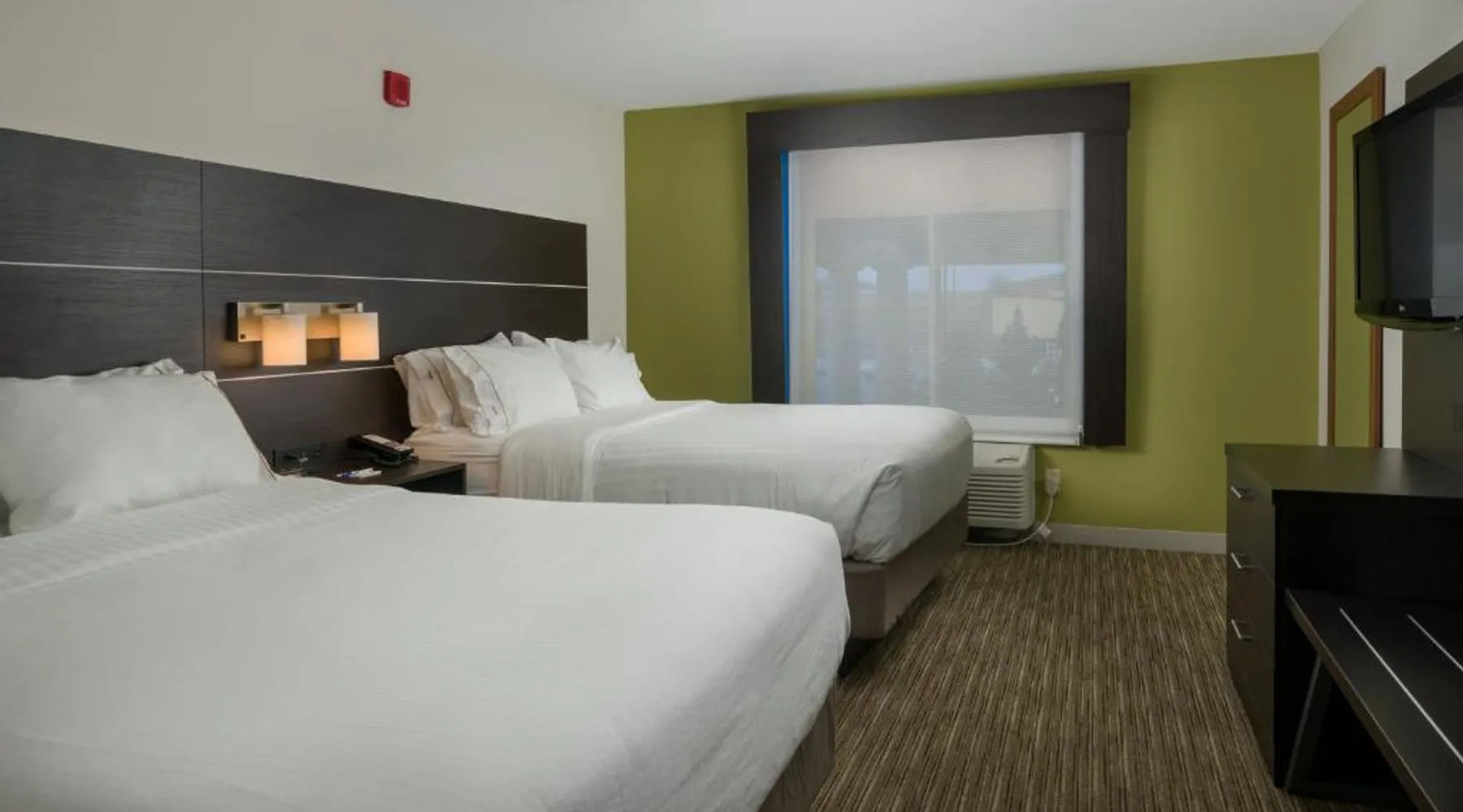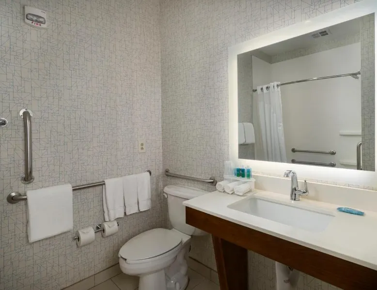 Comfortable Accommodations: Holiday Inn Express Lawrence by IHG in Lawrence offers family rooms with air-conditioning, kitchenettes, private bathrooms, and free WiFi. Each room includes a work desk, seating area, and TV. Leisure Facilities: Guests can enjoy a fitness center, indoor swimming pool, and hot tub. Additional amenities include a fitness room, elevator, 24-hour front desk, minimarket, business area, and free on-site parking. Dining Options: A continental buffet breakfast is served daily. The property also provides a coffee machine, refrigerator, microwave, and dining area. Location and Attractions: Located 46 mi from Kansas City International Airport, the hotel is near Kansas Memorial Stadium (3.7 mi) and Great Wolf Lodge Kansas City (31 mi). Highly rated for its breakfast, room comfort, and attentive staff. The unit has 1 bed.