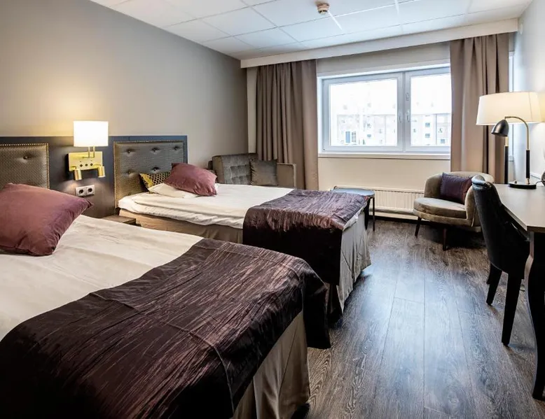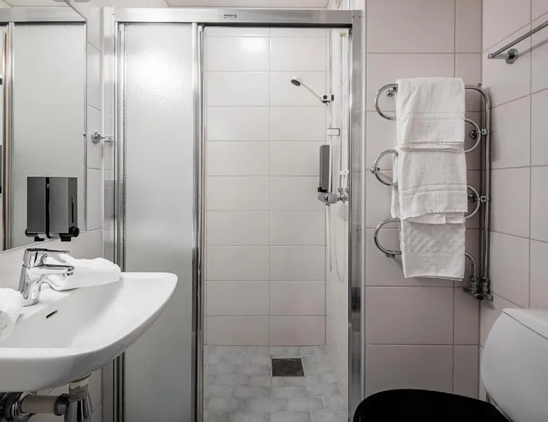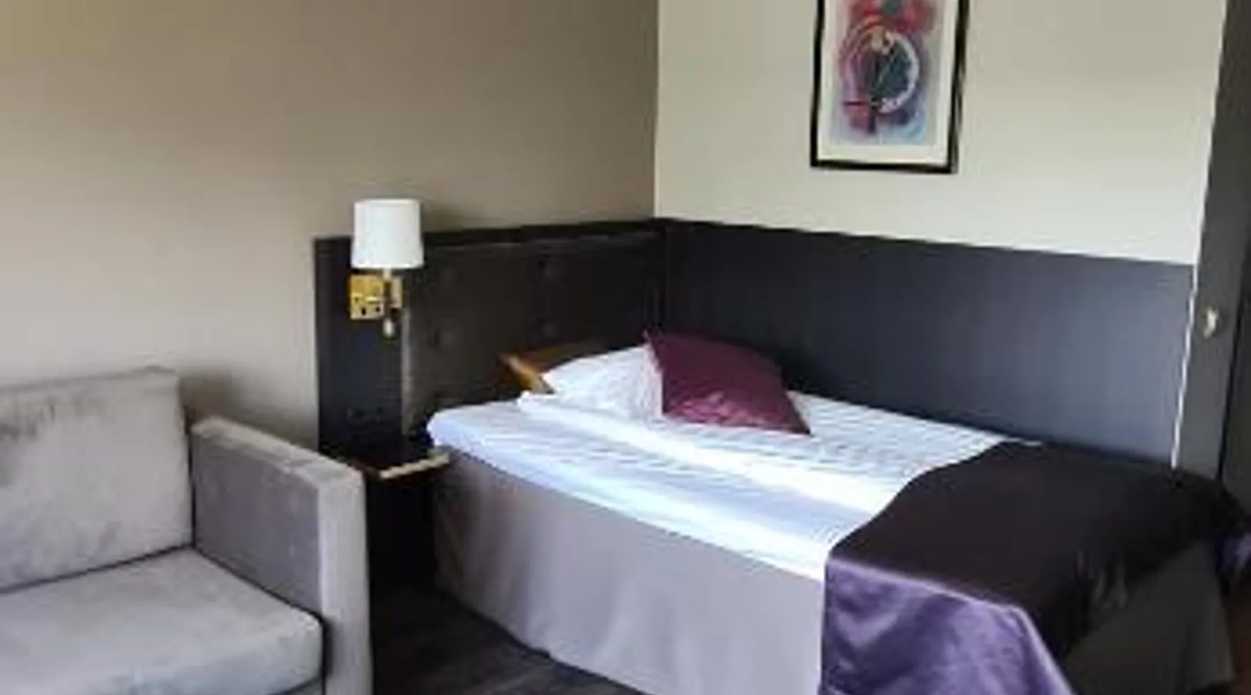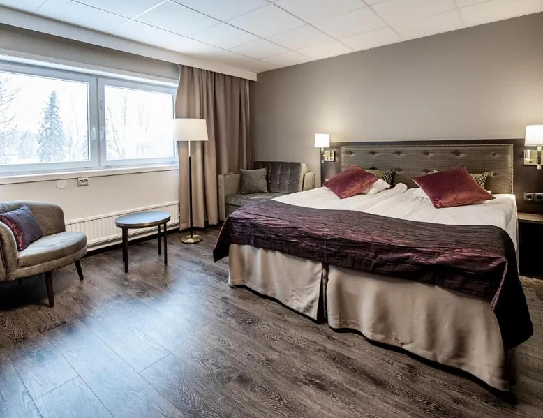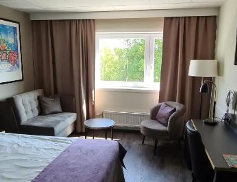 First Hotel Royal lies in central Säffle, only 1640 ft from the Säffle Train station. It offers free WiFi internet access in all rooms, private parking with electric car chargers, pool, sauna and gym for our guests. All guest rooms at First Hotel Royal are equipped with cable TV. Some guest rooms offer views of the Byälven River. In addition to both Swedish and international dishes, the Royal Bar offers a large whiskey selection. A seating area with a flat-screen TV, a desk and a private bathroom are featured in this double room. The unit offers 1 bed.