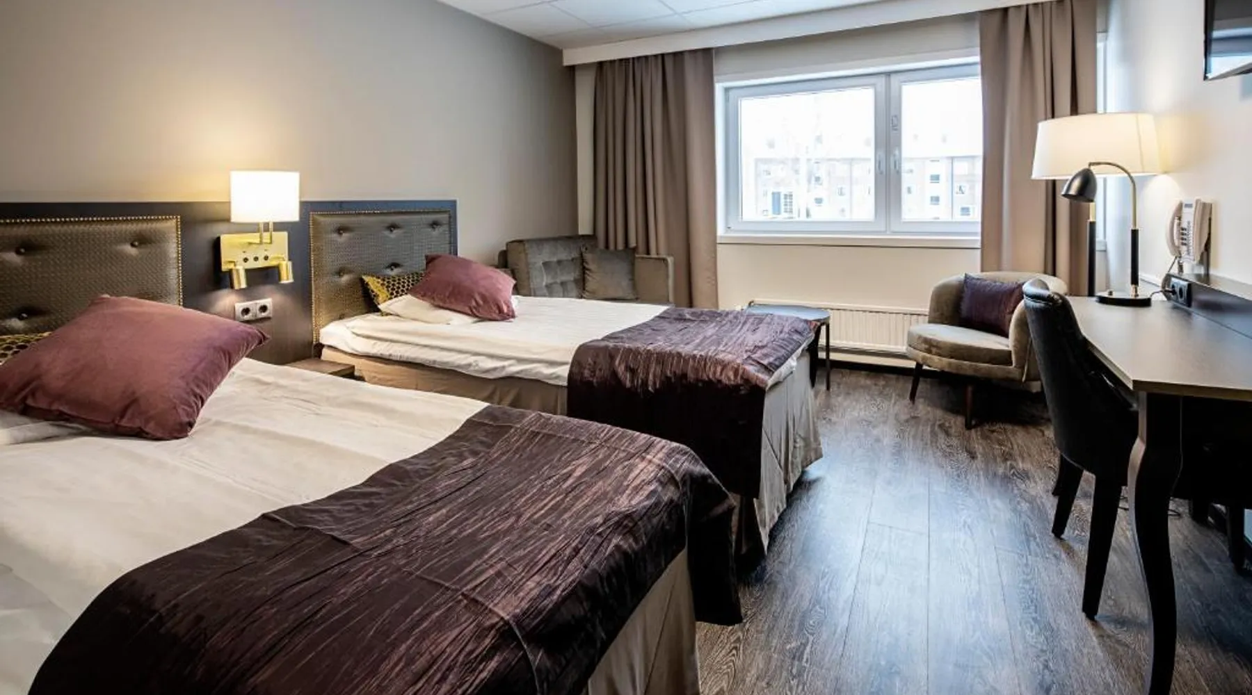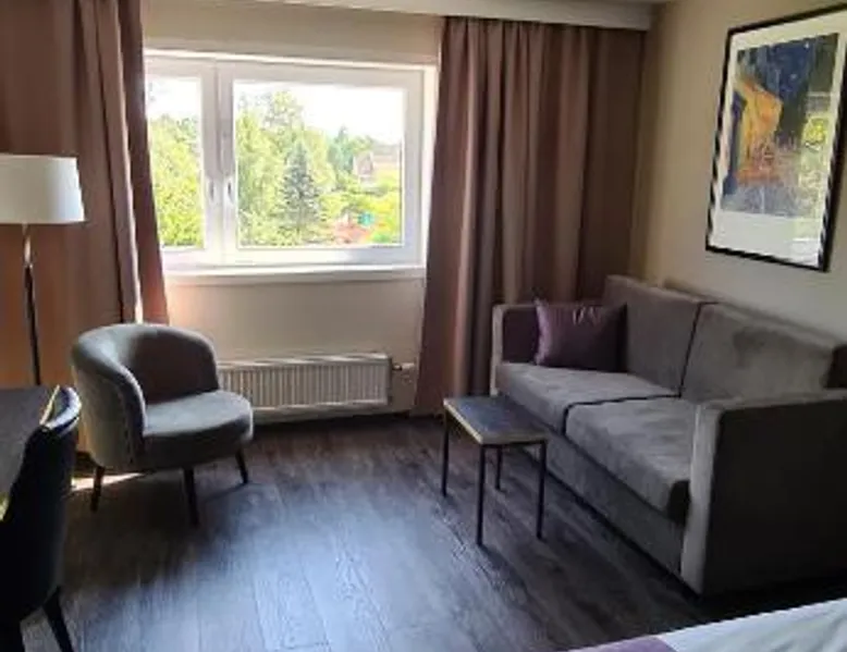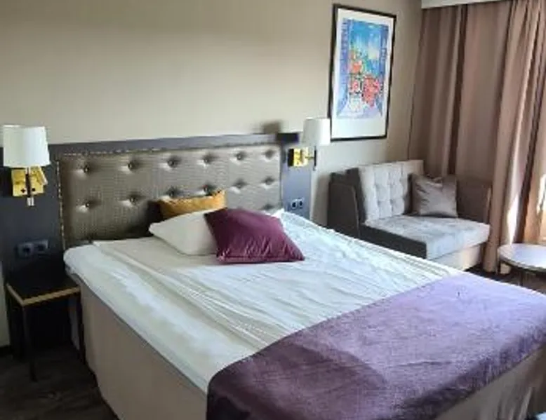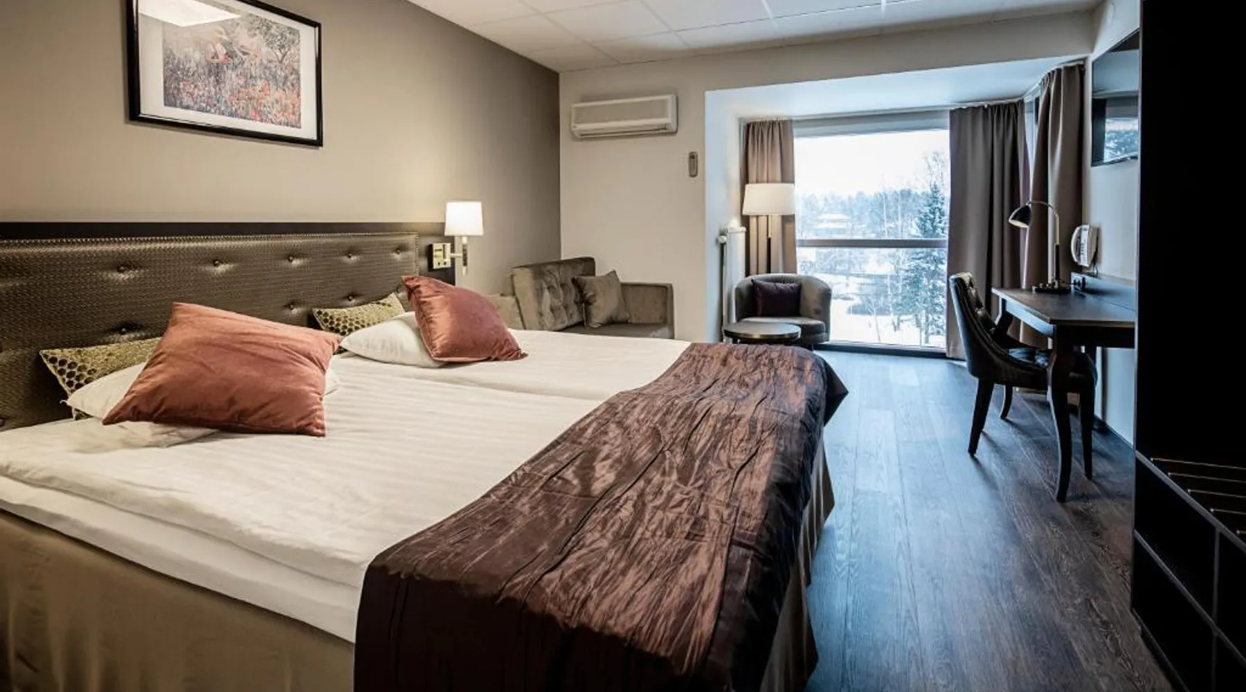 First Hotel Royal lies in central Säffle, only 1640 ft from the Säffle Train station. It offers free WiFi internet access in all rooms, private parking with electric car chargers, pool, sauna and gym for our guests. All guest rooms at First Hotel Royal are equipped with cable TV. Some guest rooms offer views of the Byälven River. In addition to both Swedish and international dishes, the Royal Bar offers a large whiskey selection. A seating area with a flat-screen TV, a desk and a private bathroom are featured in this double room. The unit offers 1 bed.