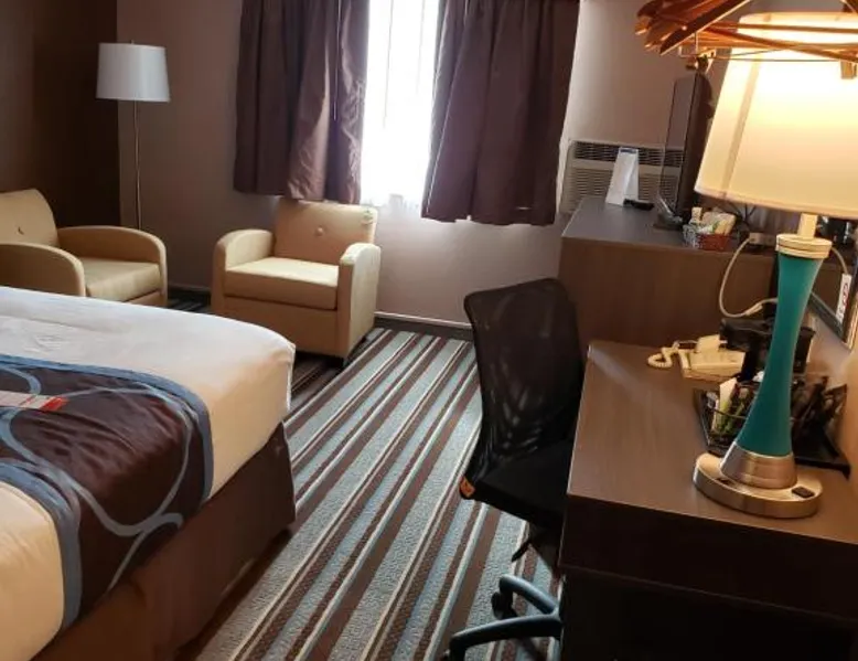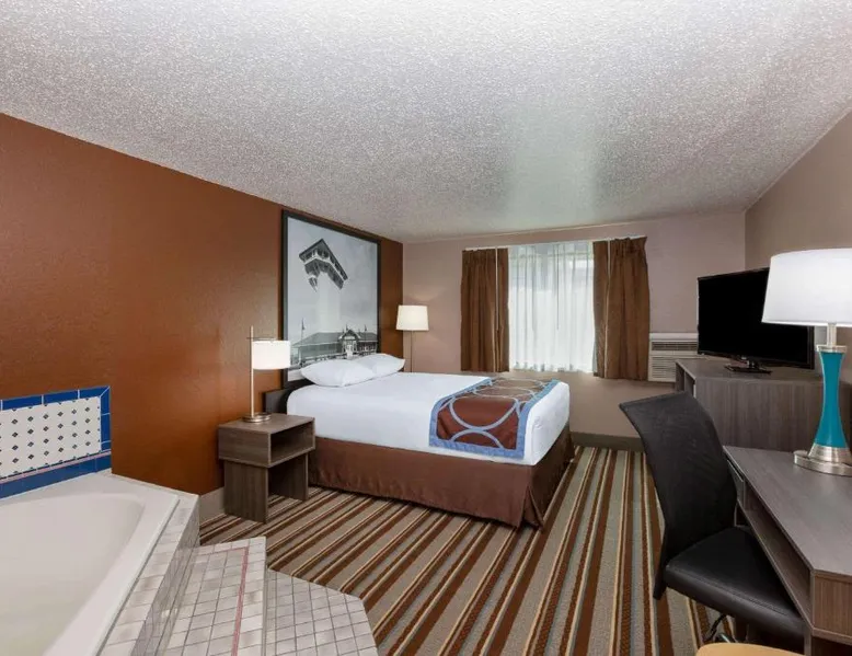 Offering a fitness center, this Platte motel is located off of interstate 80 and is 15 minutes’ drive to Buffalo Bills Ranch. Free Wi-Fi access is available. All air-conditioned rooms include a flat-screen cable TV at North Platte Super 8. Complete with a refrigerator, the dining area also has a coffee machine. Extras include a hairy dryer. Breakfast is served each morning to all guests and includes pastries and coffee. At Super 8 North Platte you will find a hot tub and a 24-hour front desk. Other facilities offered include a shared lounge and a vending machine. The property offers free parking. Avid golfers will enjoy Indian Meadows Golf Course, 4 minutes’ drive away. The Golden Spike Tower, featuring panoramic views of the largest Union Pacific train yard, is 6.2 mi away. Guests will have a special experience as the double room provides a hot tub. Providing free toiletries, this double room includes a private bathroom with a bath, a shower and a hairdryer. This double room is air-conditioned and features a flat-screen TV with cable channels, a tea and coffee maker, a sofa and a carpeted floor. The unit offers 1 bed.