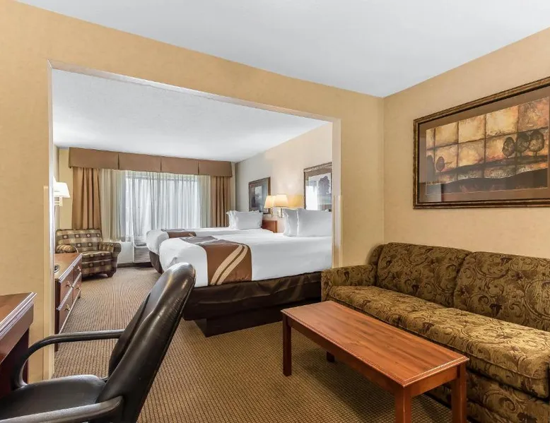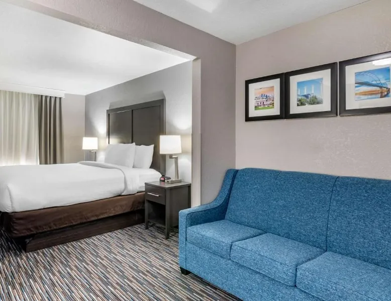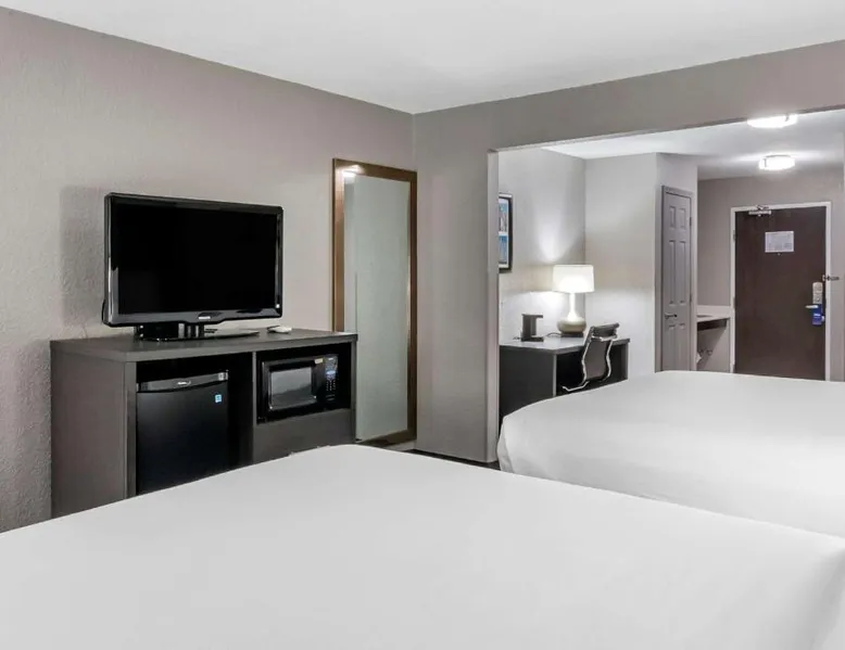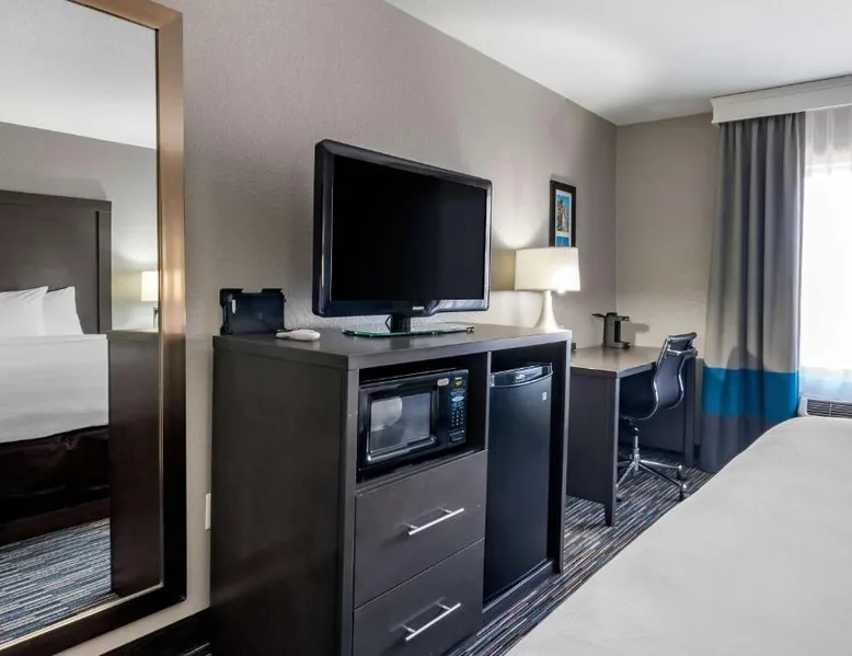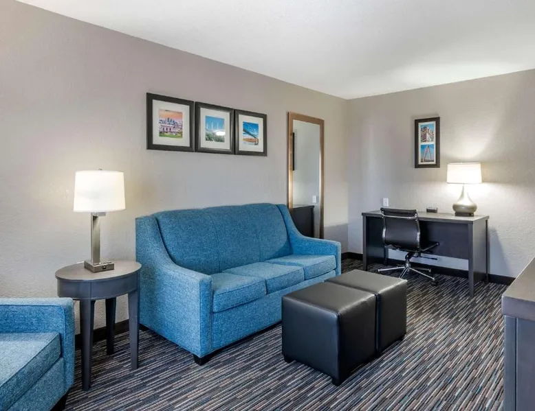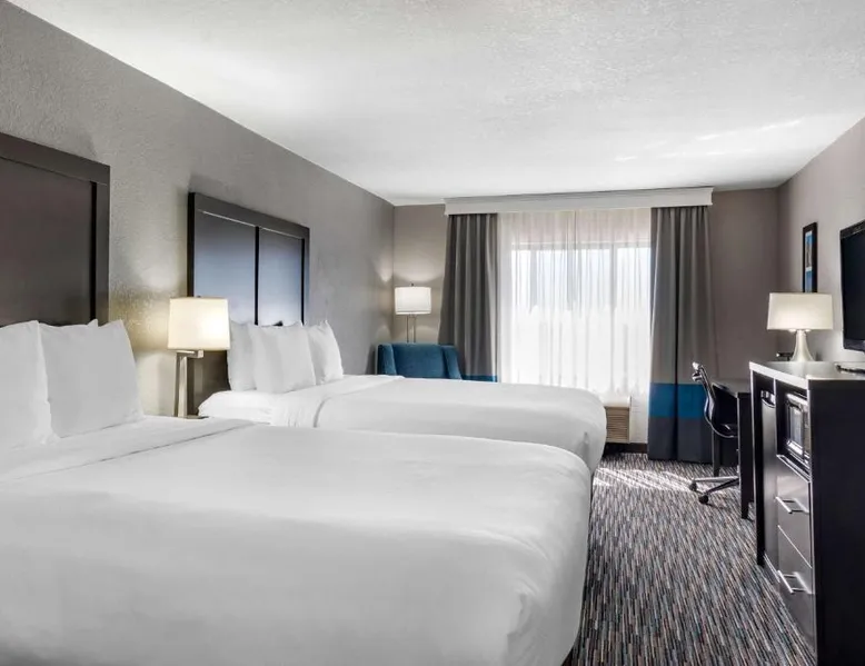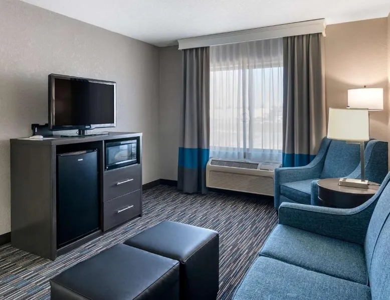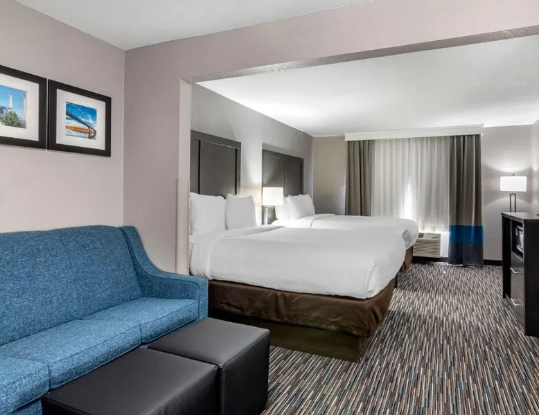 Comfortable Accommodations: Comfort Inn & Suites in Emporia offers clean rooms with private bathrooms, air-conditioning, and free WiFi. Each room includes a work desk, TV, and coffee machine. Leisure Facilities: Guests can relax in the indoor swimming pool or stay active in the fitness center. Free on-site parking is available for convenience. Breakfast and Services: A continental breakfast is served daily, providing a perfect start to the day. The hotel staff speak English and offer excellent service support. Location and Attractions: Located 78 mi from Manhattan Regional Airport, the hotel is near attractions such as the Emporia Arts Center and the Emporia Public Library. The unit has 2 beds.