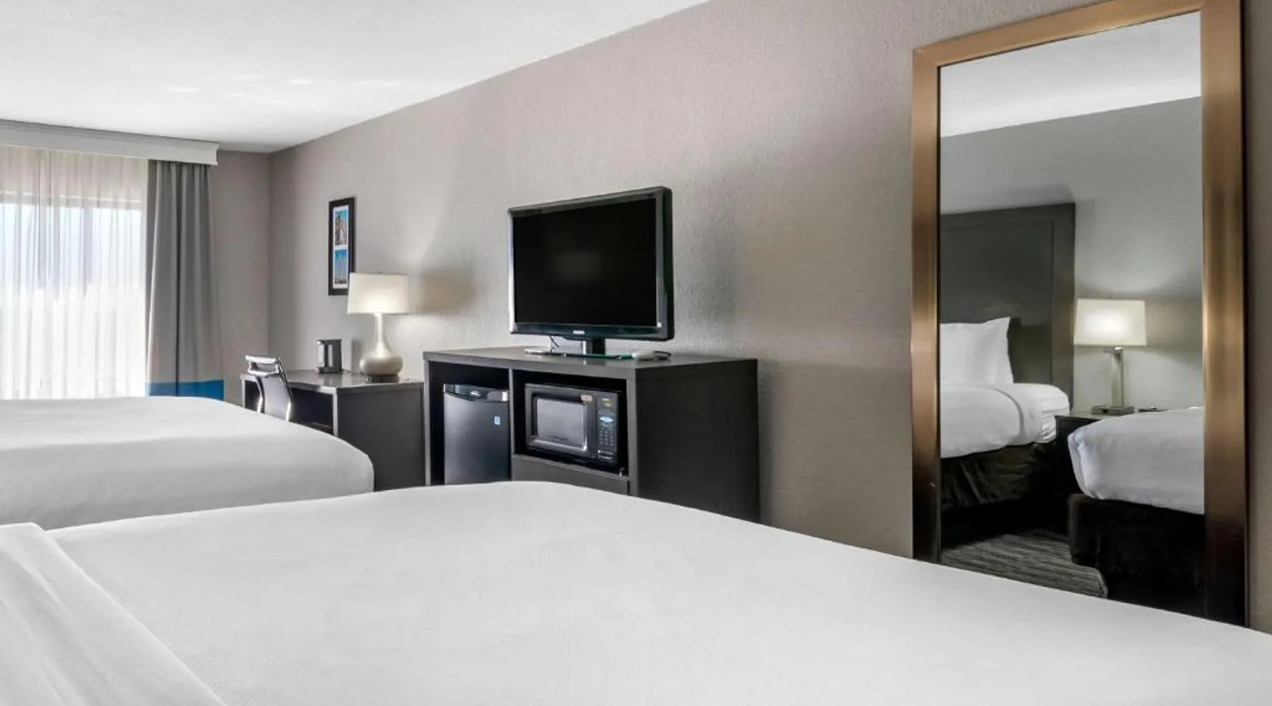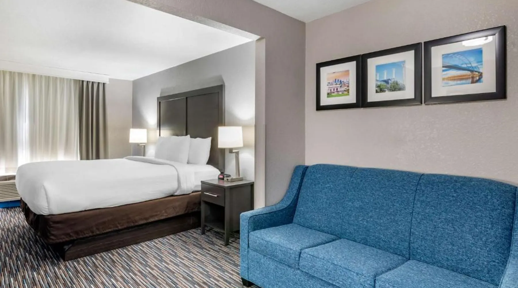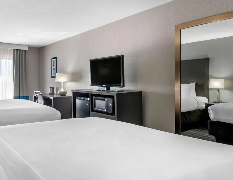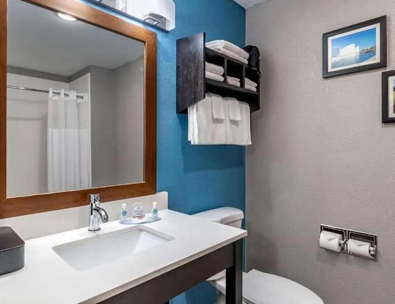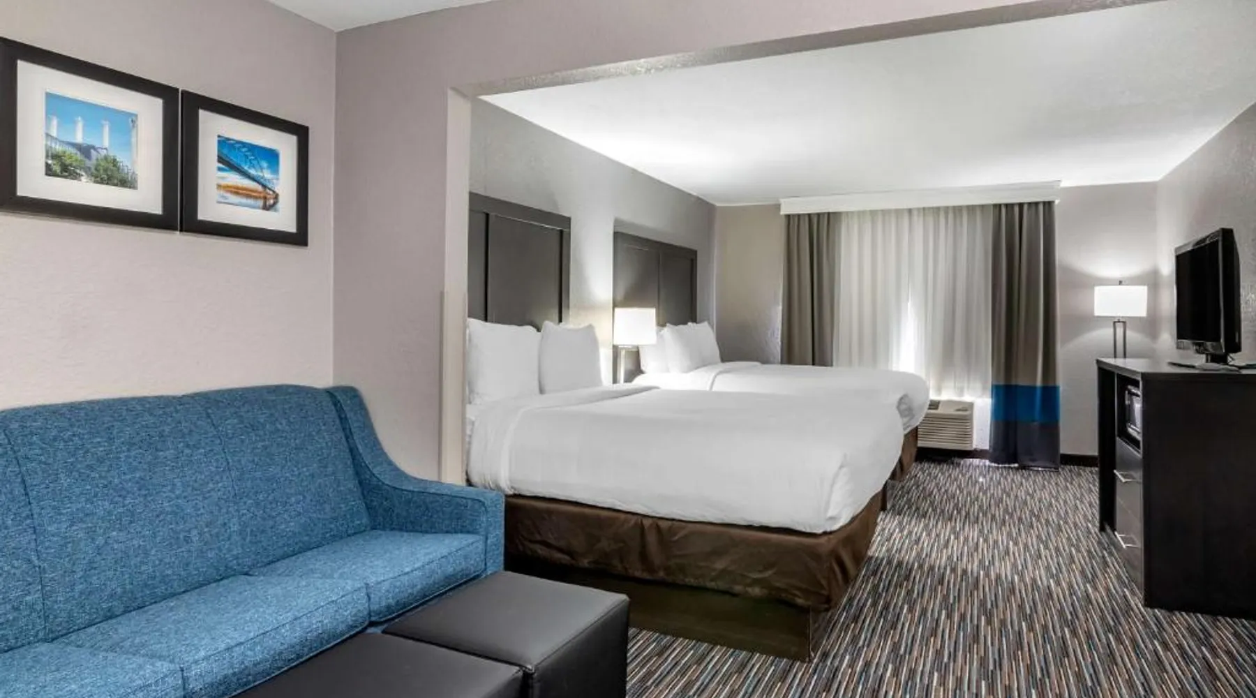 Comfortable Accommodations: Comfort Inn & Suites in Emporia offers clean rooms with private bathrooms, air-conditioning, and free WiFi. Each room includes a work desk, TV, and coffee machine. Leisure Facilities: Guests can relax in the indoor swimming pool or stay active in the fitness center. Free on-site parking is available for convenience. Breakfast and Services: A continental breakfast is served daily, providing a perfect start to the day. The hotel staff speak English and offer excellent service support. Location and Attractions: Located 78 mi from Manhattan Regional Airport, the hotel is near attractions such as the Emporia Arts Center and the Emporia Public Library. The unit has 2 beds.