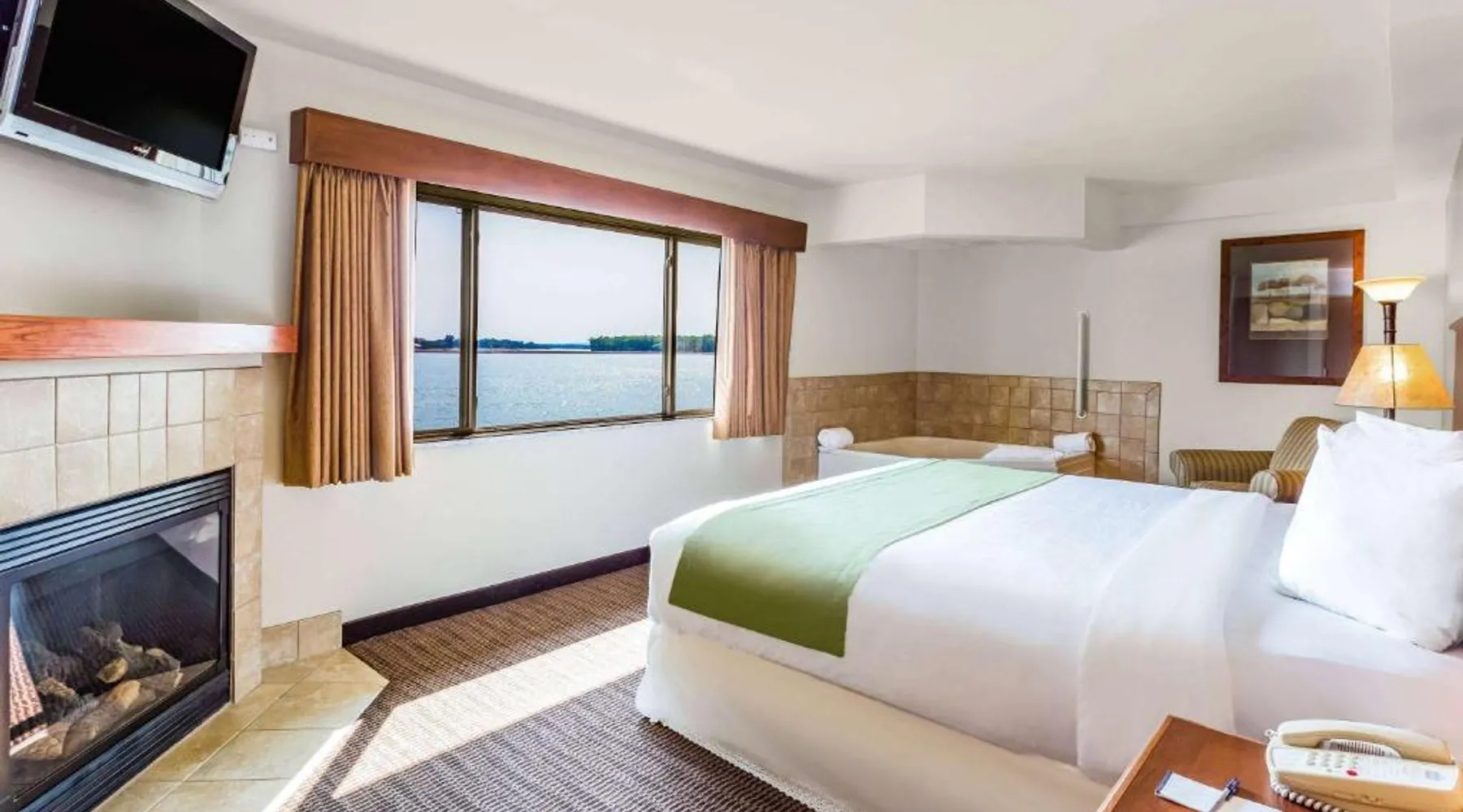 Comfortable Accommodations: Rooms feature air-conditioning, private bathrooms, tea and coffee makers, hairdryers, work desks, free toiletries, bath or showers, and TVs. Guests enjoy river views and wardrobes for added comfort. Exceptional Facilities: The hotel offers a fitness center, indoor swimming pool, free WiFi, and a bar. Additional amenities include a hot tub, 24-hour front desk, business area, and free on-site parking. Delicious Breakfast: A continental buffet breakfast is served daily, including juice, pancakes, and fruits. Guests appreciate the quality and variety of the morning meal. Convenient Location: Located in Fort Pierre, the hotel is 4.3 mi from Pierre Regional Airport and 1.9 mi from the South Dakota State Capitol. Nearby attractions include the Fort Pierre National Grassland and the Fort Pierre Museum. The suite features air conditioning, a tea and coffee maker, as well as a private bathroom boasting a bath or a shower and a hairdryer. This suite offers heating, a TV with cable channels and river views.