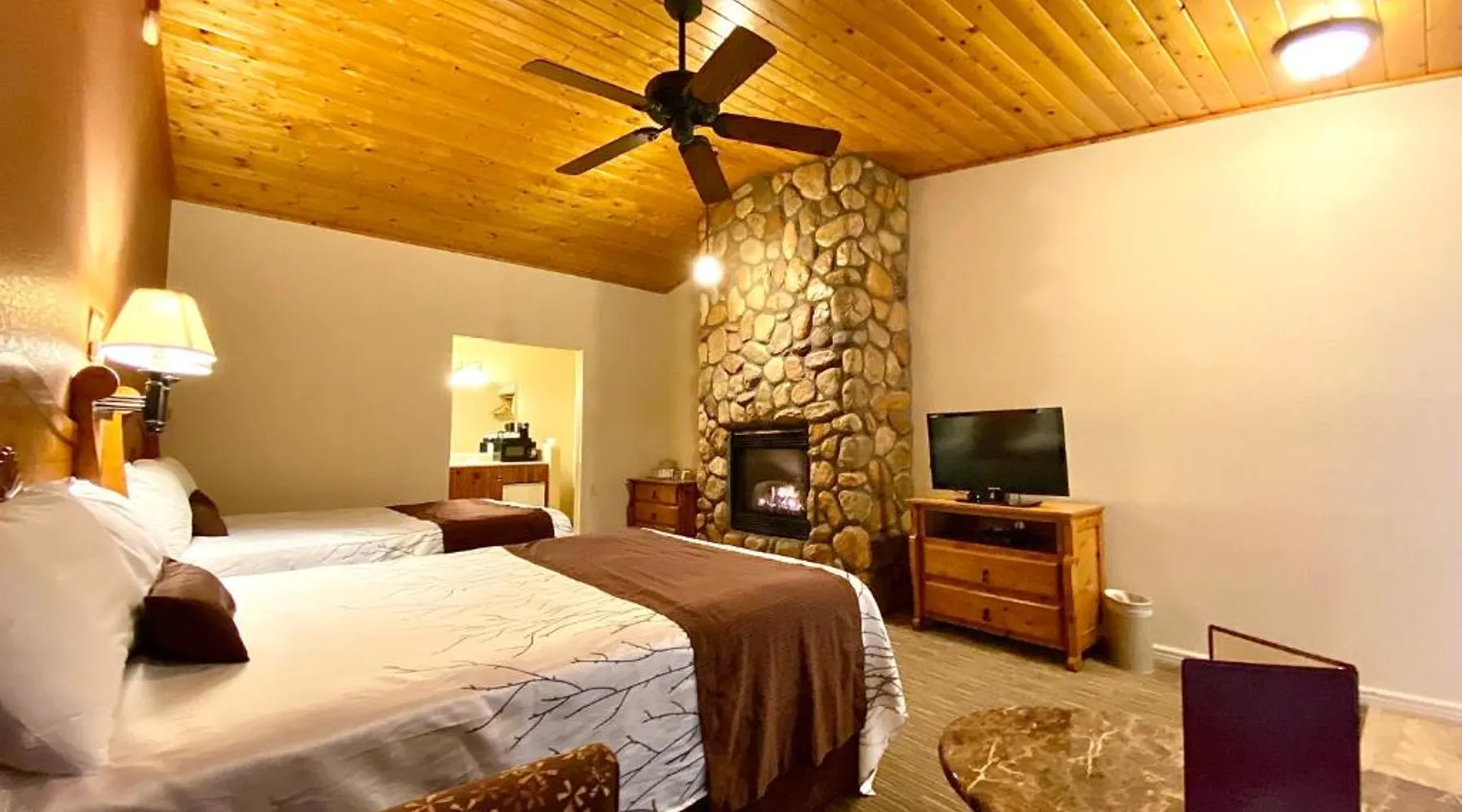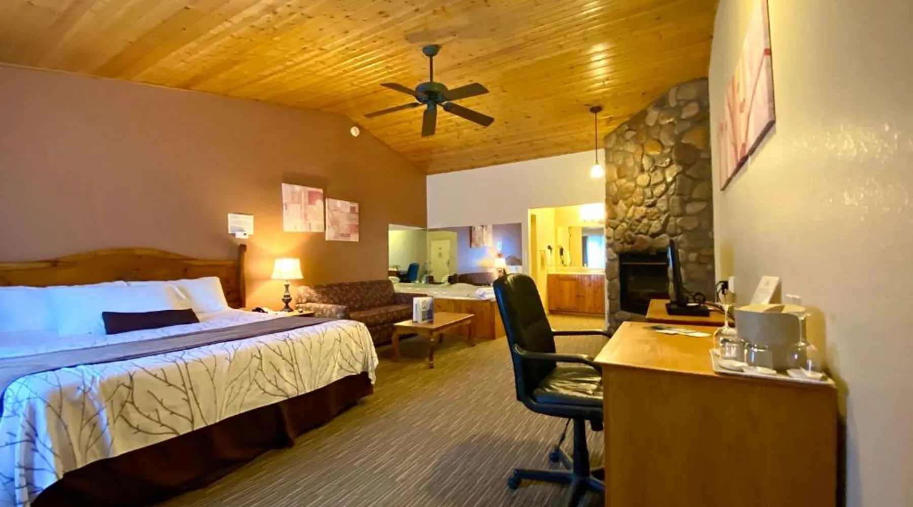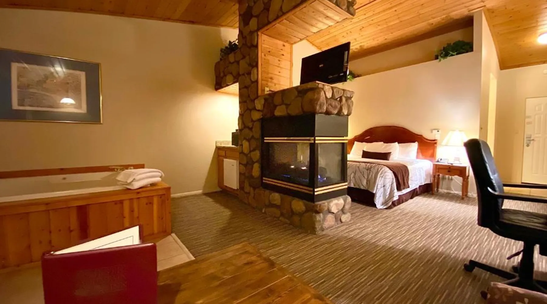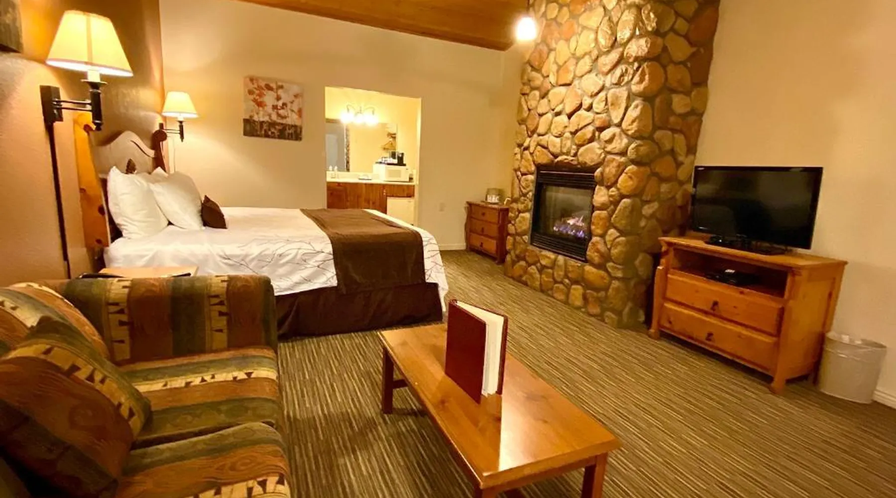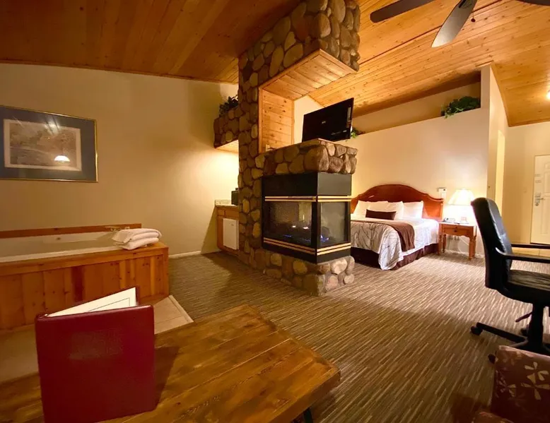 In the Tonto National Forest, this hotel features 100 Ponderosa Pines on site. Free Wi-Fi is available in all rooms. A seasonal outdoor pool is available and a snack bar is also on site. All rooms have a sitting area with a sofa and cable TV with a DVD player at Majestic Mountain Inn. A small fridge and tea and coffee-making facilities are provided. Hiking and fishing can be found from the property and guests can relax in a furnished courtyard. Barbecue facilities are available for guest use. A free continental breakfast is available daily. A free shuttle service to Mazatzal Casino is provided. Downtown Payson is 1 mile from the Inn Majestic Mountain. Mogollon Rim and Sitgreaves National Forest is a 1 hour and 15-minute drive from the property. This room is also known as the king luxury room. It features a fireplace and a spa bath. A small fridge and tea and coffee-making are provided.