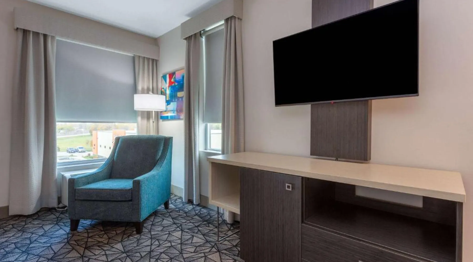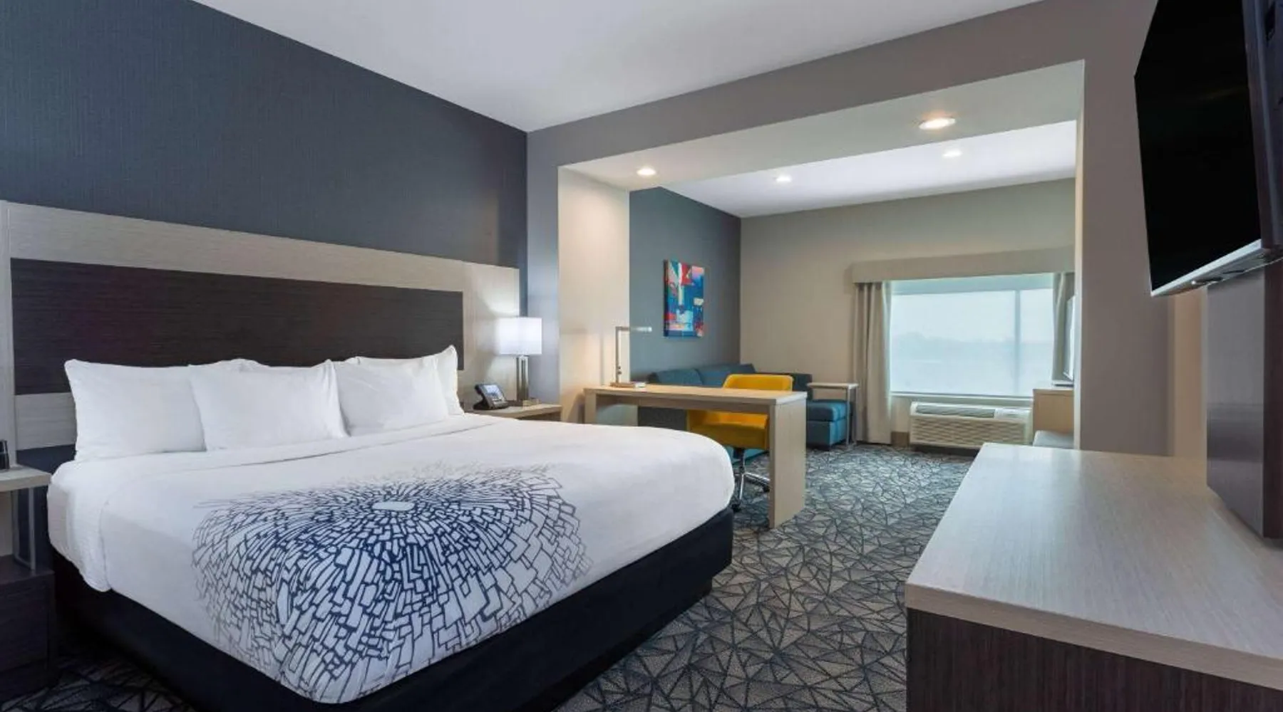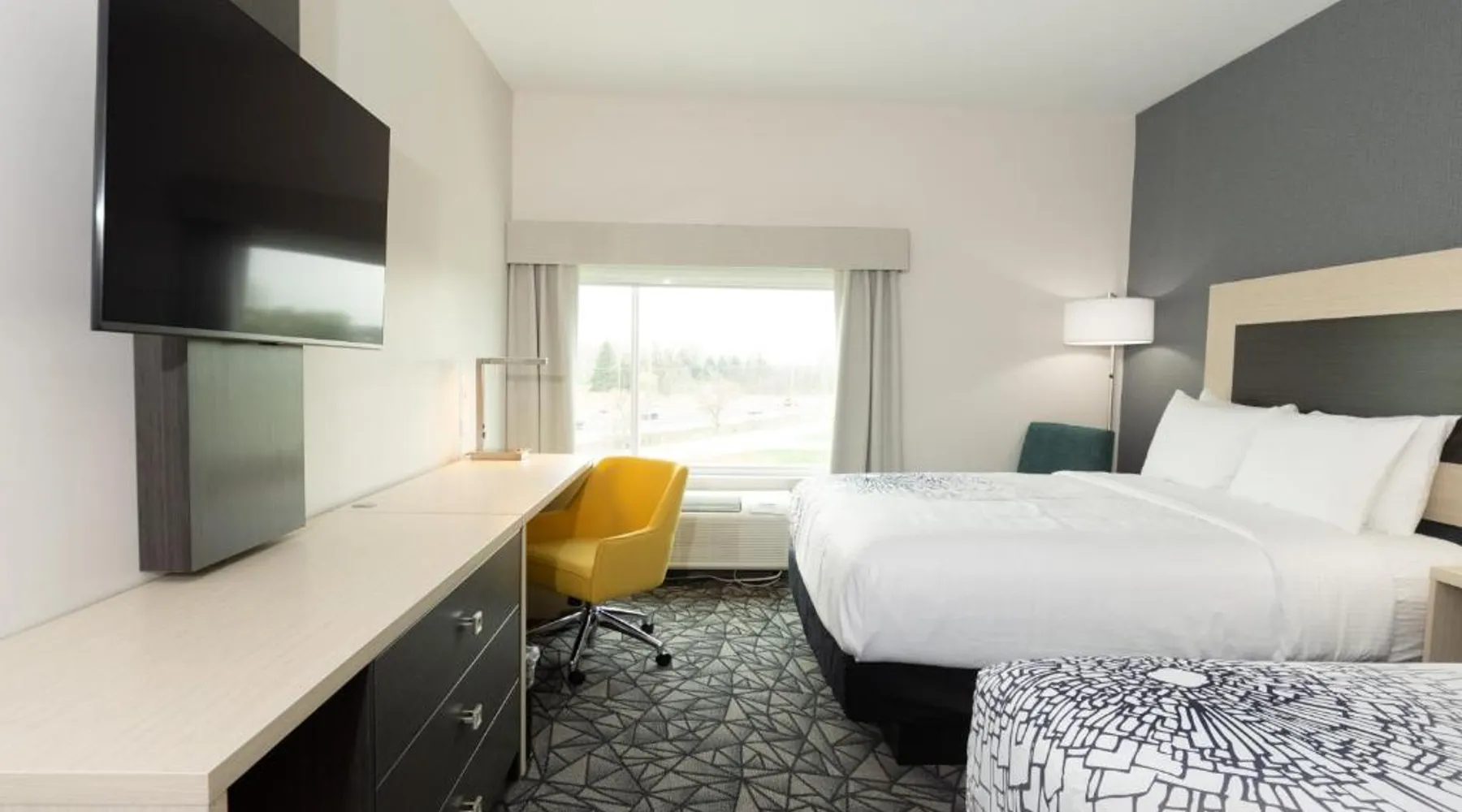 Comfortable Accommodations: La Quinta Inn & Suites by Wyndham Shorewood in Shorewood offers family rooms with air-conditioning, private bathrooms, and free WiFi. Each room includes a work desk, TV, and free toiletries. Exceptional Facilities: Guests can enjoy an indoor swimming pool, fitness center, and electric vehicle charging station. Additional amenities include a elevator, 24-hour front desk, and free on-site private parking. Convenient Location: Located 34 mi from Midway International Airport, the hotel is near attractions such as Joliet Area Historical Museum (6.2 mi) and Chicagoland Speedway (11 mi). Free continental breakfast is available each morning. Guest Satisfaction: Highly rated for room cleanliness, staff support, and comfort, the hotel ensures a pleasant stay for all visitors. The spacious double room features air conditioning, a carpeted floor, as well as a private bathroom boasting a shower and a hairdryer. This double room offers heating and a flat-screen TV. The unit has 1 bed.