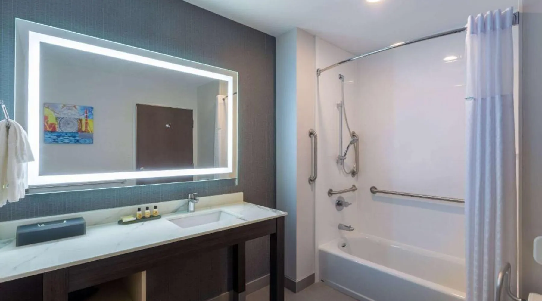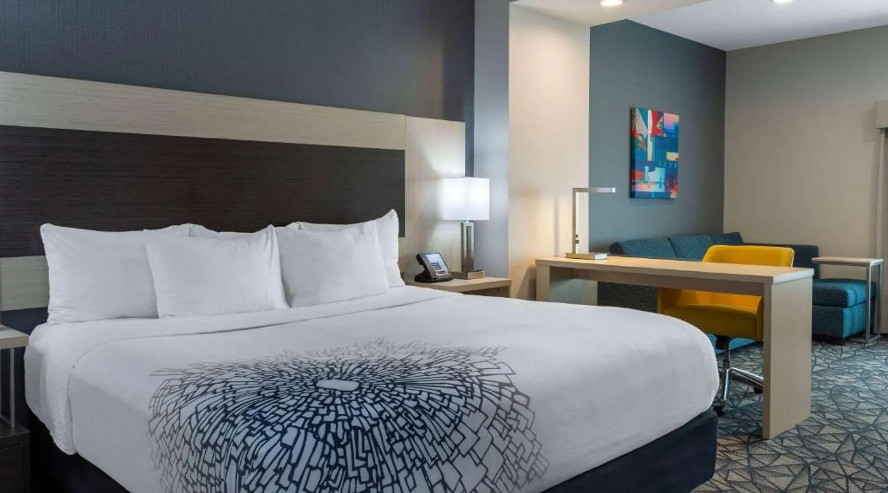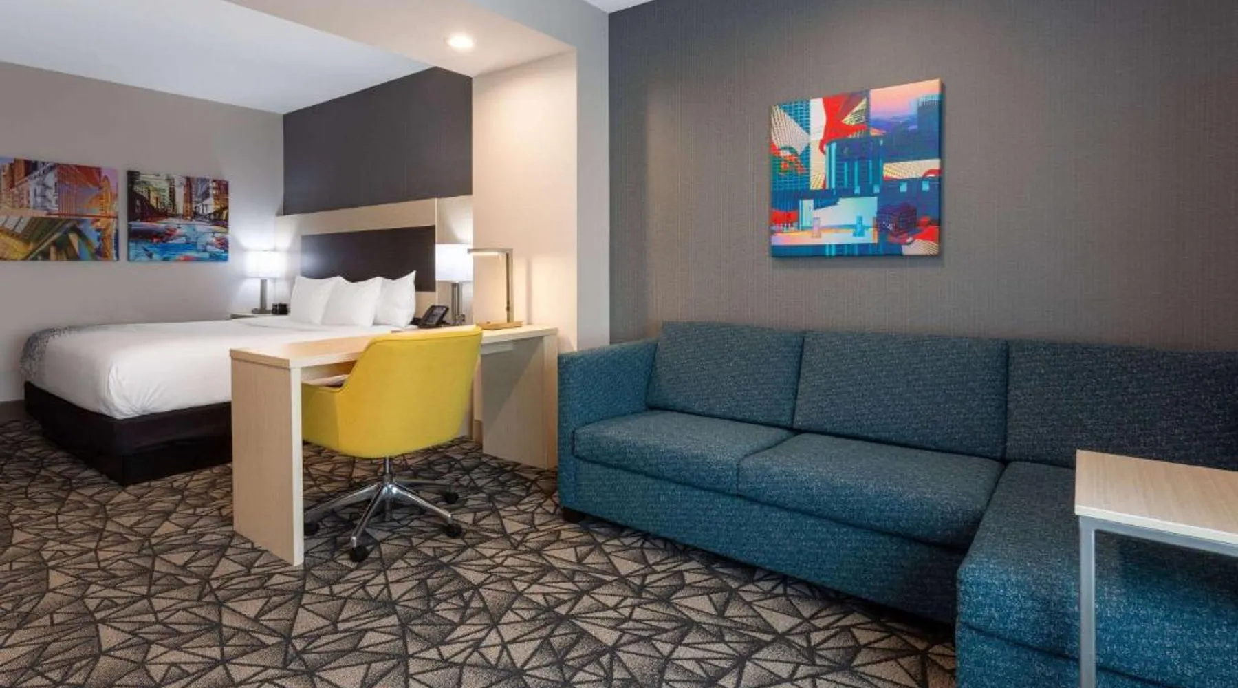 Comfortable Accommodations: La Quinta Inn & Suites by Wyndham Shorewood in Shorewood offers family rooms with air-conditioning, private bathrooms, and free WiFi. Each room includes a work desk, TV, and free toiletries. Exceptional Facilities: Guests can enjoy an indoor swimming pool, fitness center, and electric vehicle charging station. Additional amenities include a elevator, 24-hour front desk, and free on-site private parking. Convenient Location: Located 34 mi from Midway International Airport, the hotel is near attractions such as Joliet Area Historical Museum (6.2 mi) and Chicagoland Speedway (11 mi). Free continental breakfast is available each morning. Guest Satisfaction: Highly rated for room cleanliness, staff support, and comfort, the hotel ensures a pleasant stay for all visitors. The spacious double room features air conditioning, a carpeted floor, as well as a private bathroom boasting a shower and a hairdryer. This double room offers heating and a flat-screen TV. The unit has 1 bed.