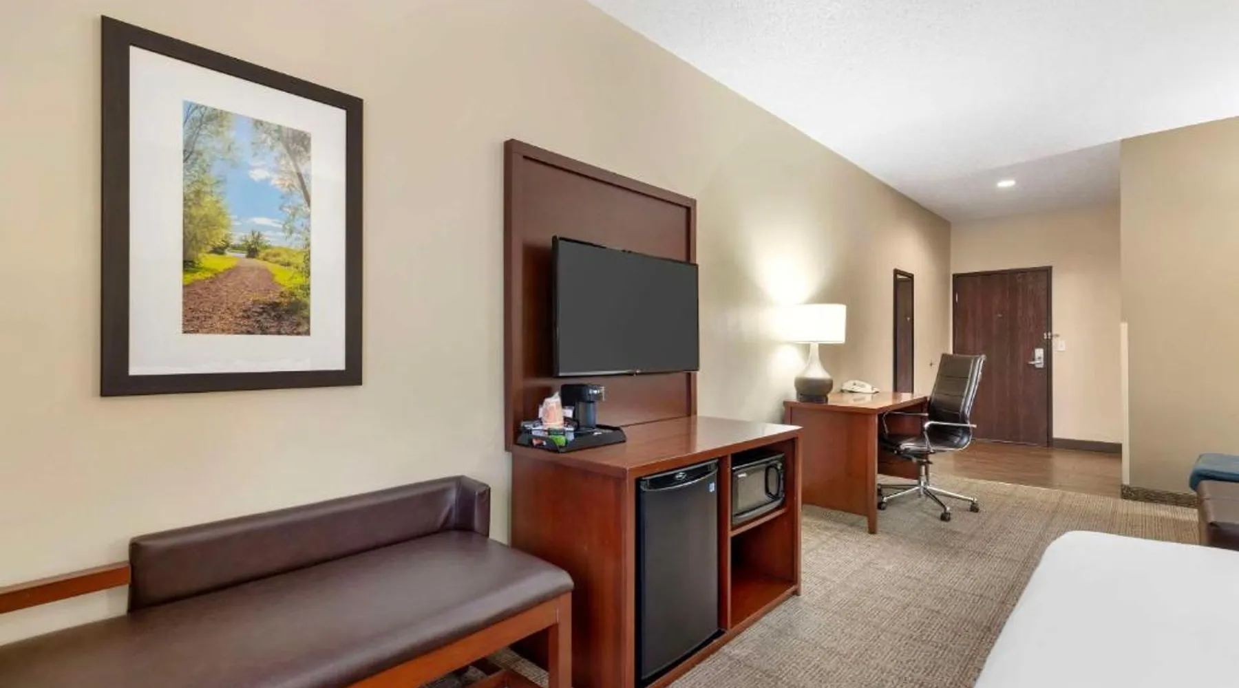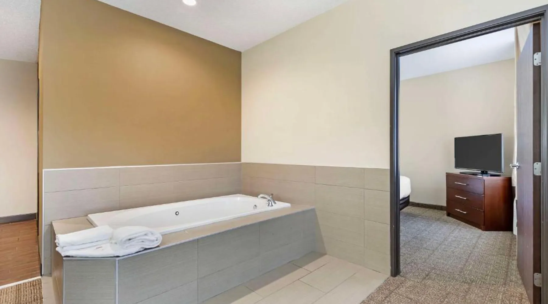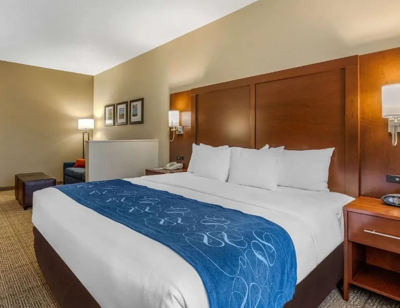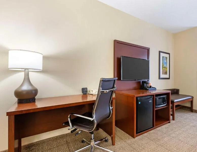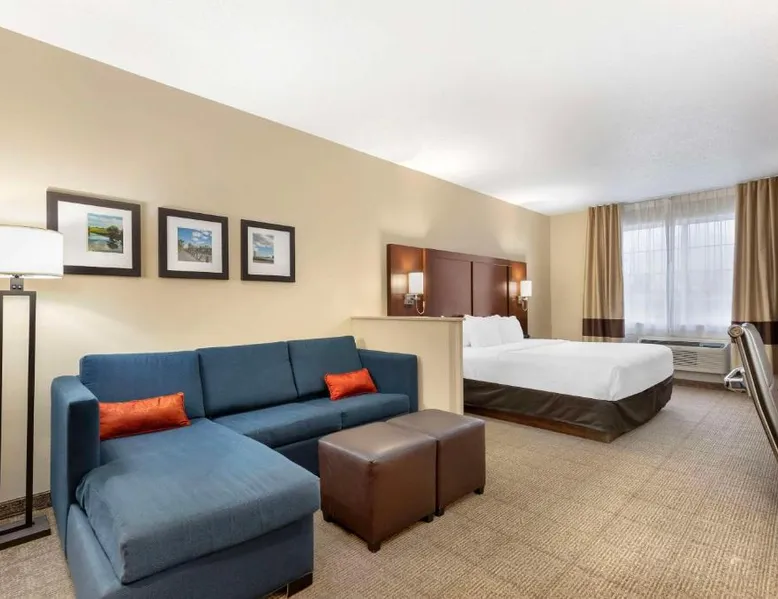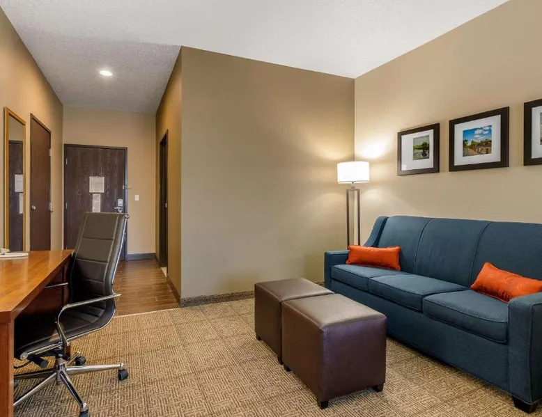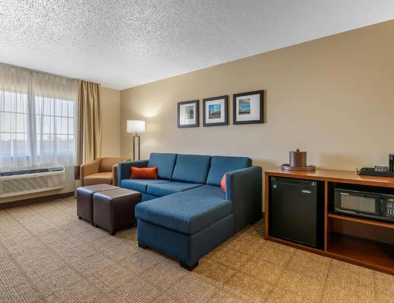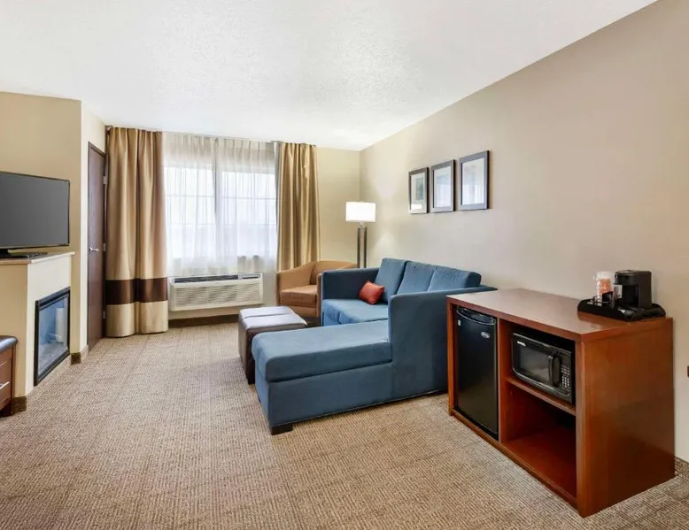 The Comfort Suites hotel is conveniently located off U.S. Highway 20, just one mile from the University of Northern Iowa. This Cedar Falls, IA hotel is minutes from the Isle of Capri Casino, the Lost Island Waterpark, the scenic Cedar Valley Nature Trail, the Ice House Museum and the Hearst Center for the Arts. Cedar Falls is a popular destination for many different reasons, including annual events, performing arts, family-friendly attractions and year-round outdoor recreation. Several great shopping opportunities are near the hotel. A variety of restaurants and cocktail lounges are located in the surrounding area. Hotel amenities and features include: free wireless high-speed Internet access, local calls and it is a pet-friendly hotel, a night fee apply. Enjoy our free hot breakfast featuring eggs, meat, yogurt, fresh fruit, cereal and more, including your choice of hot waffle flavors. If you're leaving early, a Your Suite Success Grab & Go bag is available for the two hours prior to breakfast. Guests of this Cedar Falls, IA hotel will enjoy relaxing in the indoor heated pool and hot tub. Be sure to take advantage of the on-site exercise room. Business travelers will appreciate conveniences like a public computer with Internet access and access to copy and fax services. The meeting room accommodates up to 75 people for most events and business functions. All suites come equipped with microwaves, refrigerators, safes, sofa sleepers, coffee makers, desks, curved shower rods, hair dryers, irons, ironing boards, pillow-top mattresses and cable television. Keep your electronic devices charged with the recharge device including AC and USB outlets provided in all guest rooms. For that special occasion, the hotel features luxury suites with hot tubs and fireplaces. Laundry facilities are located on the property for added guest convenience. Boasting free Wi-Fi and a cable TV, this suite is equipped with tea and coffee-making facilities, a refrigerator and a microwave.