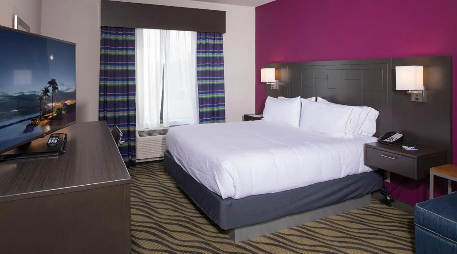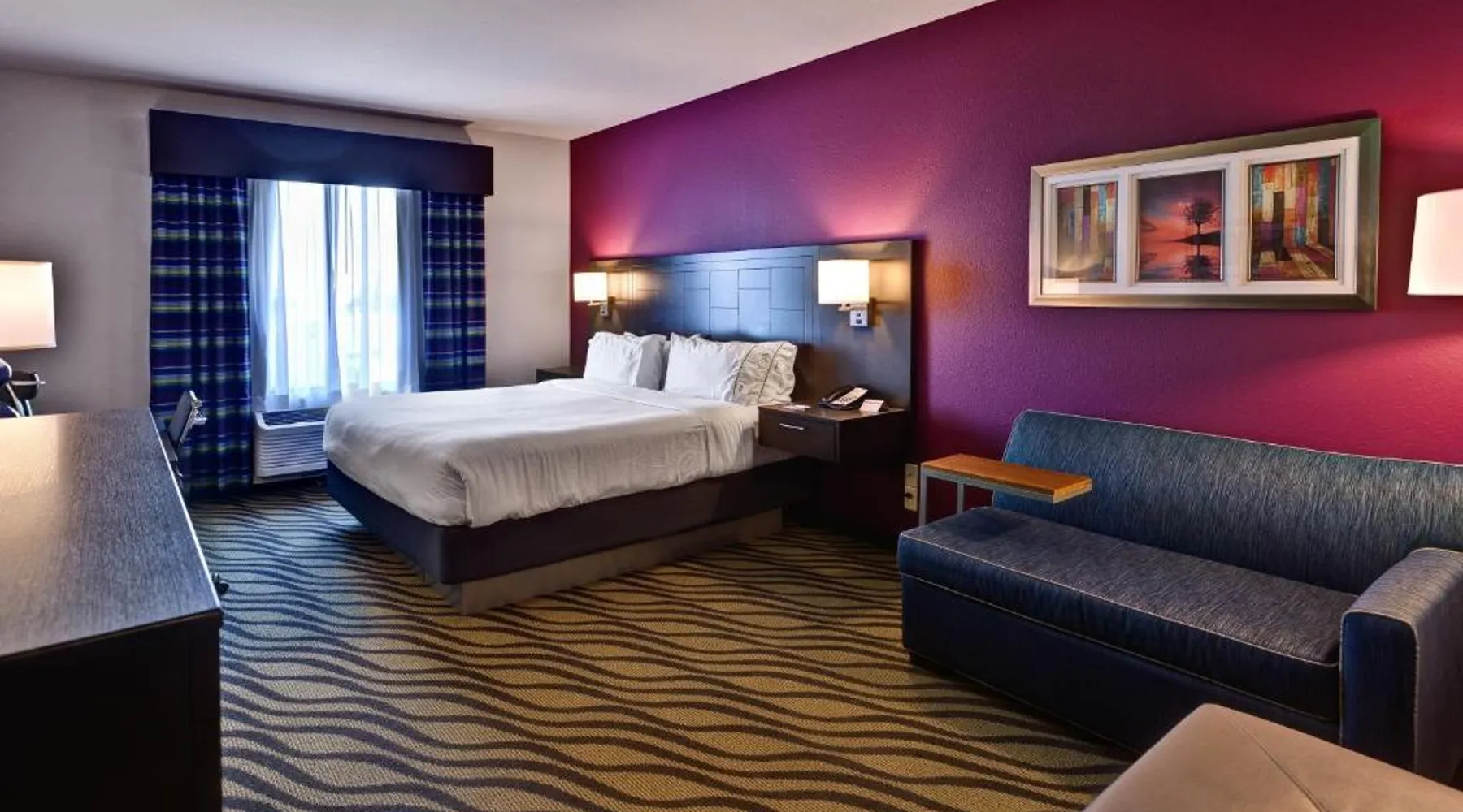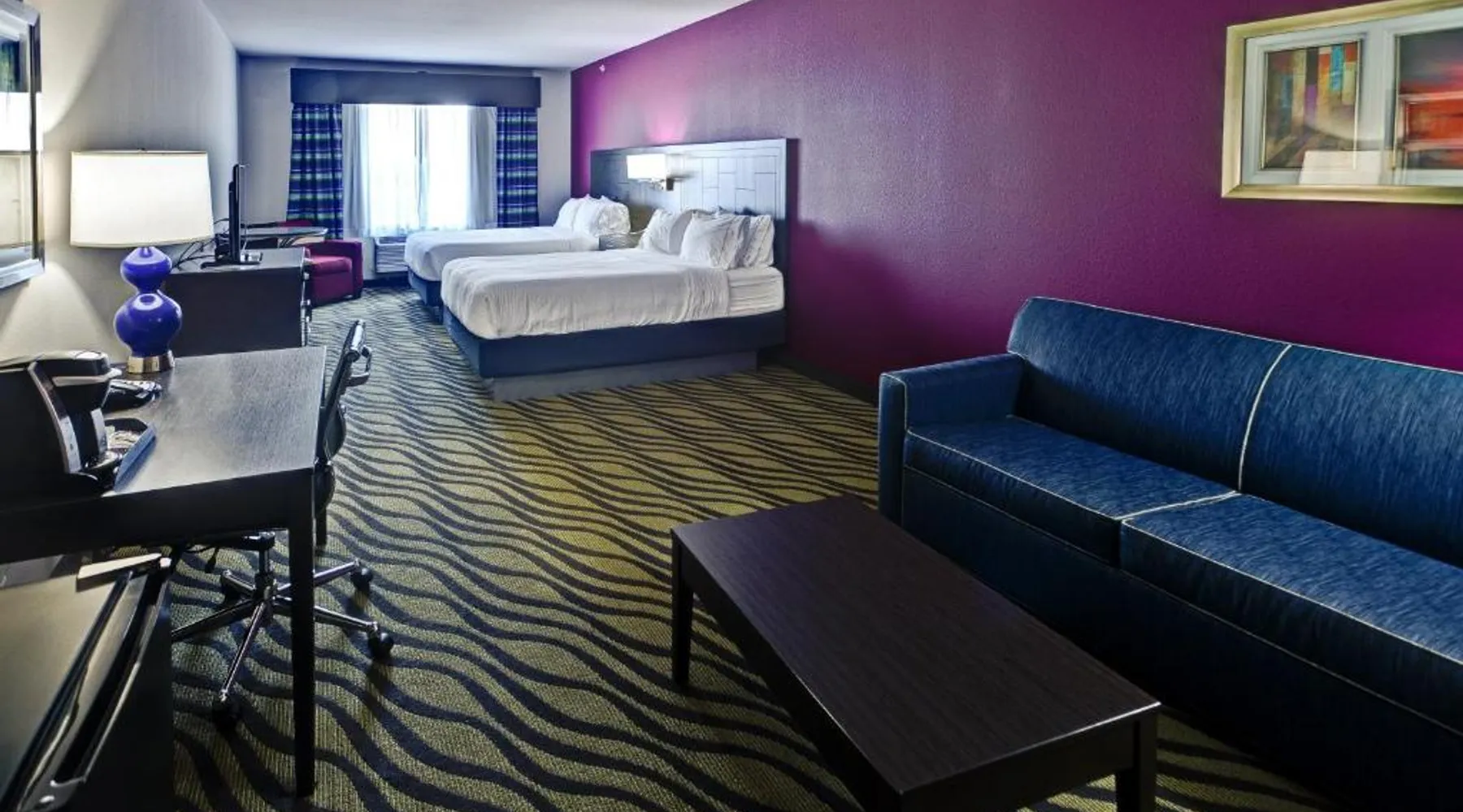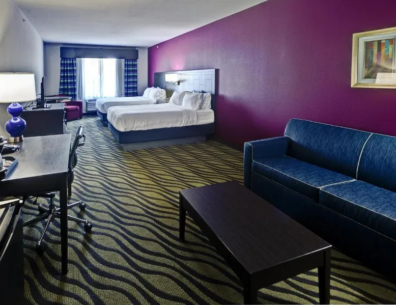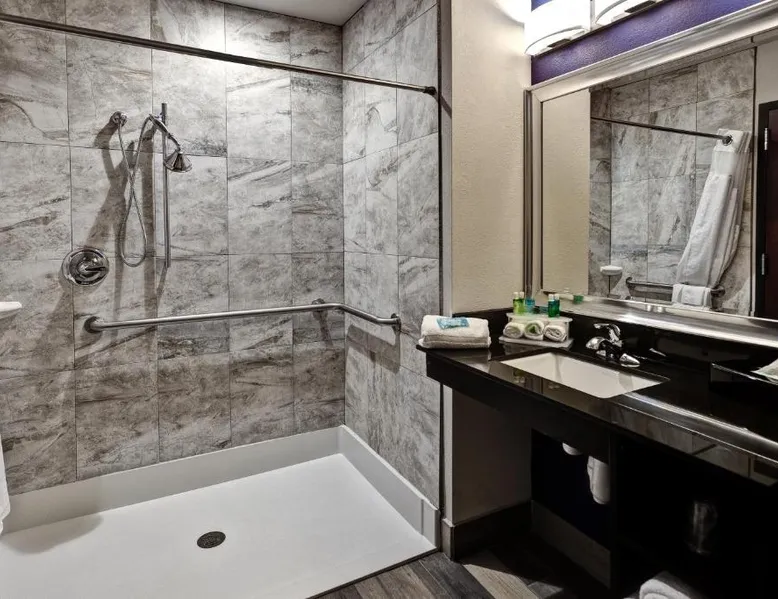 Comfortable Accommodations: Holiday Inn Express Hutchison by IHG in Hutchison offers air-conditioned rooms with private bathrooms, tea and coffee makers, and free WiFi. Each room includes a work desk, TV, and wardrobe. Leisure Facilities: Guests can enjoy a fitness center, indoor swimming pool, and hot tub. The property also features a lounge, minimarket, and barbecue facilities. Convenient Services: The hotel provides a 24-hour front desk, express check-in and check-out, and free on-site private parking. Additional amenities include a business area, child-friendly buffet, and luggage storage. Guest Satisfaction: Highly rated for its attentive staff and excellent service support, the hotel is praised for its swimming pool and breakfast provided by the property. Providing free toiletries, this suite includes a private bathroom with a bath or a shower and a hairdryer. This wheelchair accessible suite features air conditioning, a seating area with a flat-screen TV and a toilet with grab rails. The unit offers 1 bed.