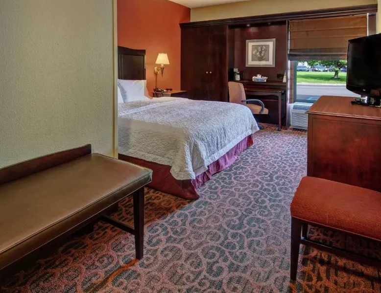 Comfortable Accommodations: Hampton Inn Ashland in Ashland offers comfortable rooms with free WiFi, ensuring a pleasant stay. Guests enjoy amenities such as a fitness center, lounge, and outdoor seating area. Convenient Facilities: The hotel provides a business area, elevator, and 24-hour front desk. Additional features include a daily housekeeping service, free on-site parking, and a buffet breakfast. Prime Location: Located 12 mi from Tri-State Airport, the hotel is near attractions like Highlands Museum and Discovery Center (8.7 mi) and Marshall University (19 mi). Guests appreciate the room comfort and cleanliness. This triple room provides a tea and coffee maker and a TV. The unit offers 1 bed.