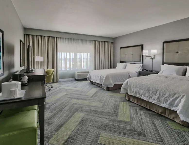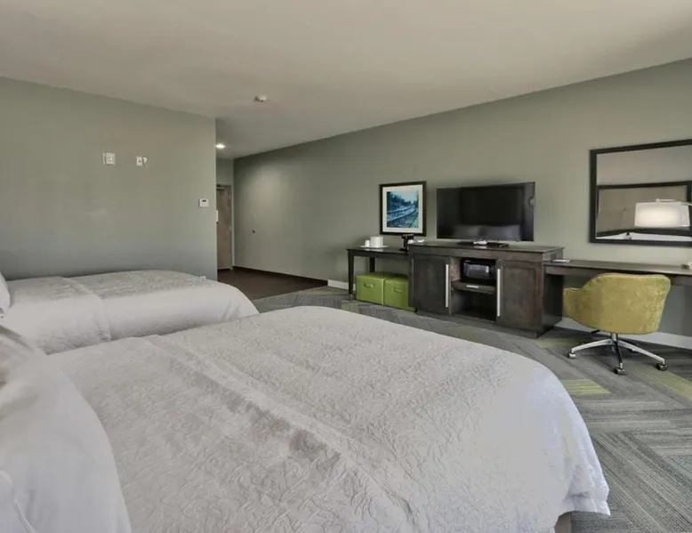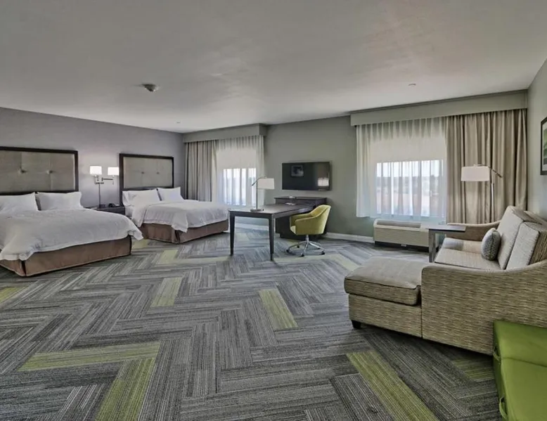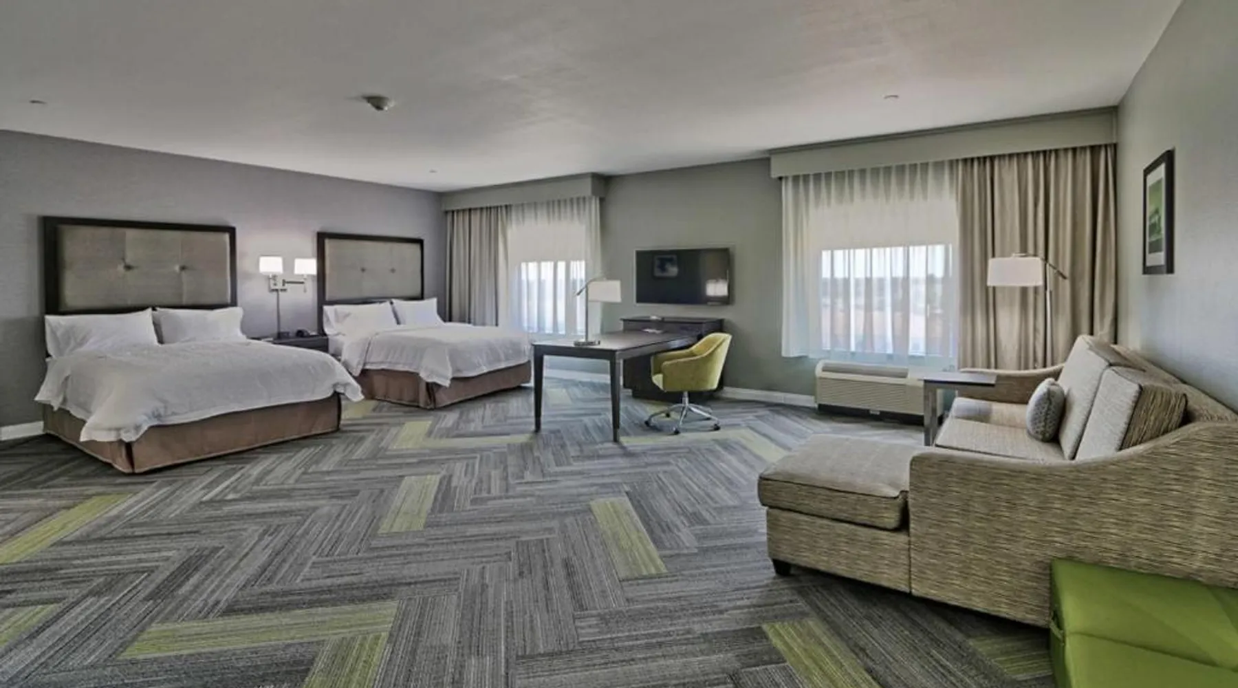 Comfortable Accommodations: Hampton Inn & Suites Guthrie offers family rooms with air-conditioning, free WiFi, and modern amenities. Each room includes a work desk, refrigerator, microwave, and TV. Leisure Facilities: Guests can enjoy an indoor swimming pool, fitness room, and free off-site private parking. Additional amenities include a sofa bed, seating area, and a 24-hour front desk. Dining Options: A continental buffet breakfast is served daily, featuring warm dishes, fresh pastries, fruits, and juice. The property also provides free WiFi in public areas. Convenient Location: Located 34 mi from Stillwater Regional Airport, the hotel is near attractions such as Frontier City (22 mi) and Oklahoma City Zoo (27 mi). Guests appreciate the convenient location and excellent service. This quadruple room is air-conditioned and has a flat-screen TV with cable channels, a tea and coffee maker and heating. The unit has 2 beds.