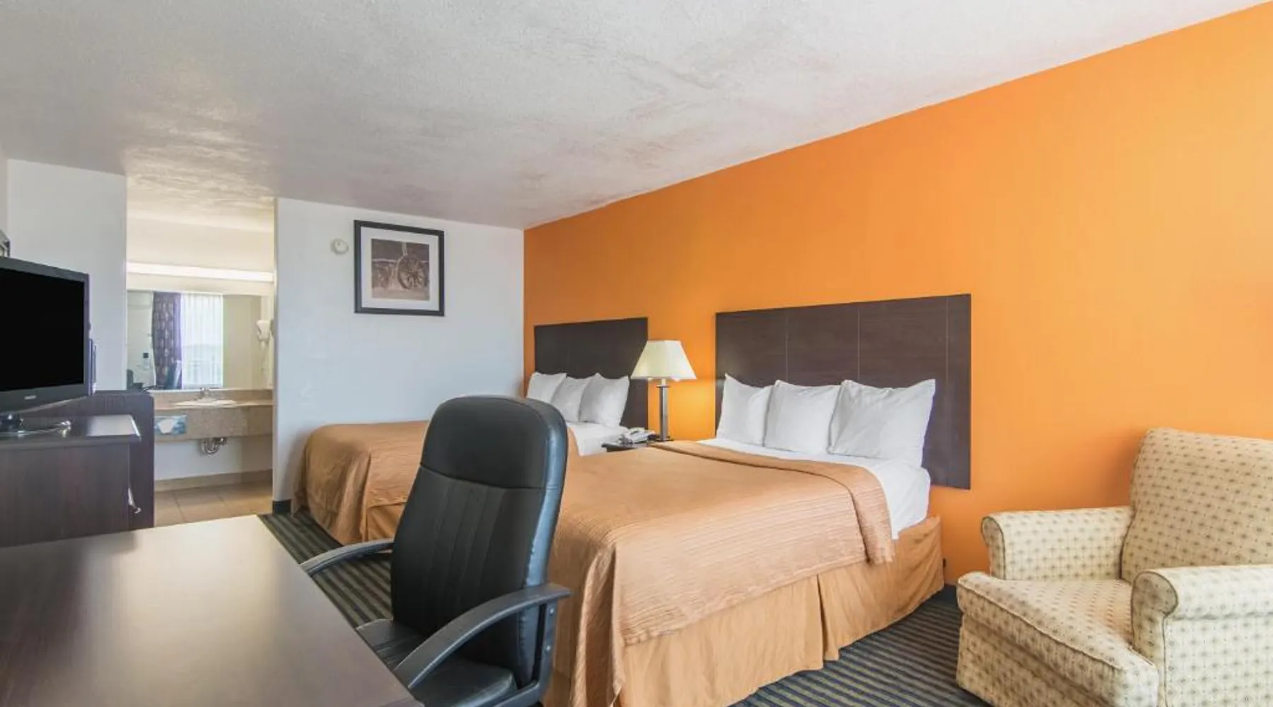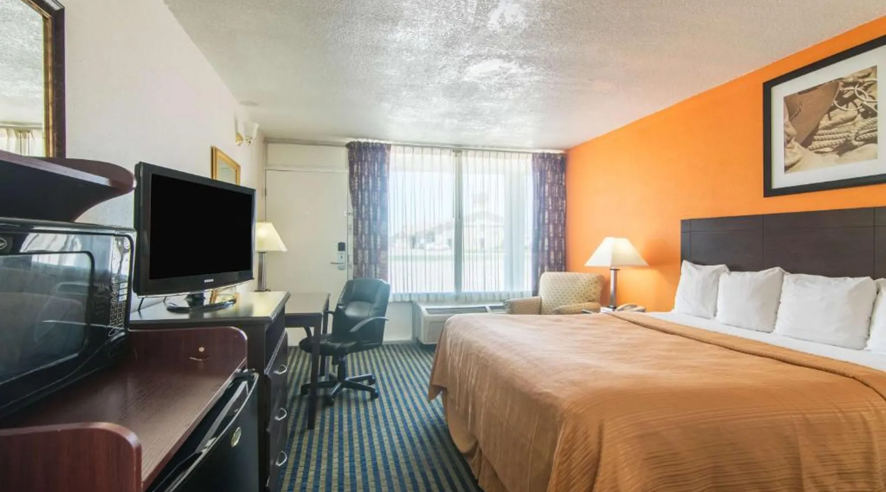 Comfortable Accommodations: Motel 6-Liberal in Liberal offers 3-star rooms with air-conditioning, private bathrooms, refrigerators, microwaves, and televisions. Each room includes a bath or shower for added convenience. Convenient Facilities: Guests benefit from a 24-hour front desk and a pet-friendly environment. The hotel provides free WiFi throughout the property, ensuring connectivity during the stay. Accessible Location: Located 2.5 mi from Liberal Mid-America Regional Airport, the hotel offers easy access to local attractions. Reception staff speak English, assisting guests with their needs. This air-conditioned double room is consisted of of a TV with cable channels and a private bathroom. The unit has 1 bed.