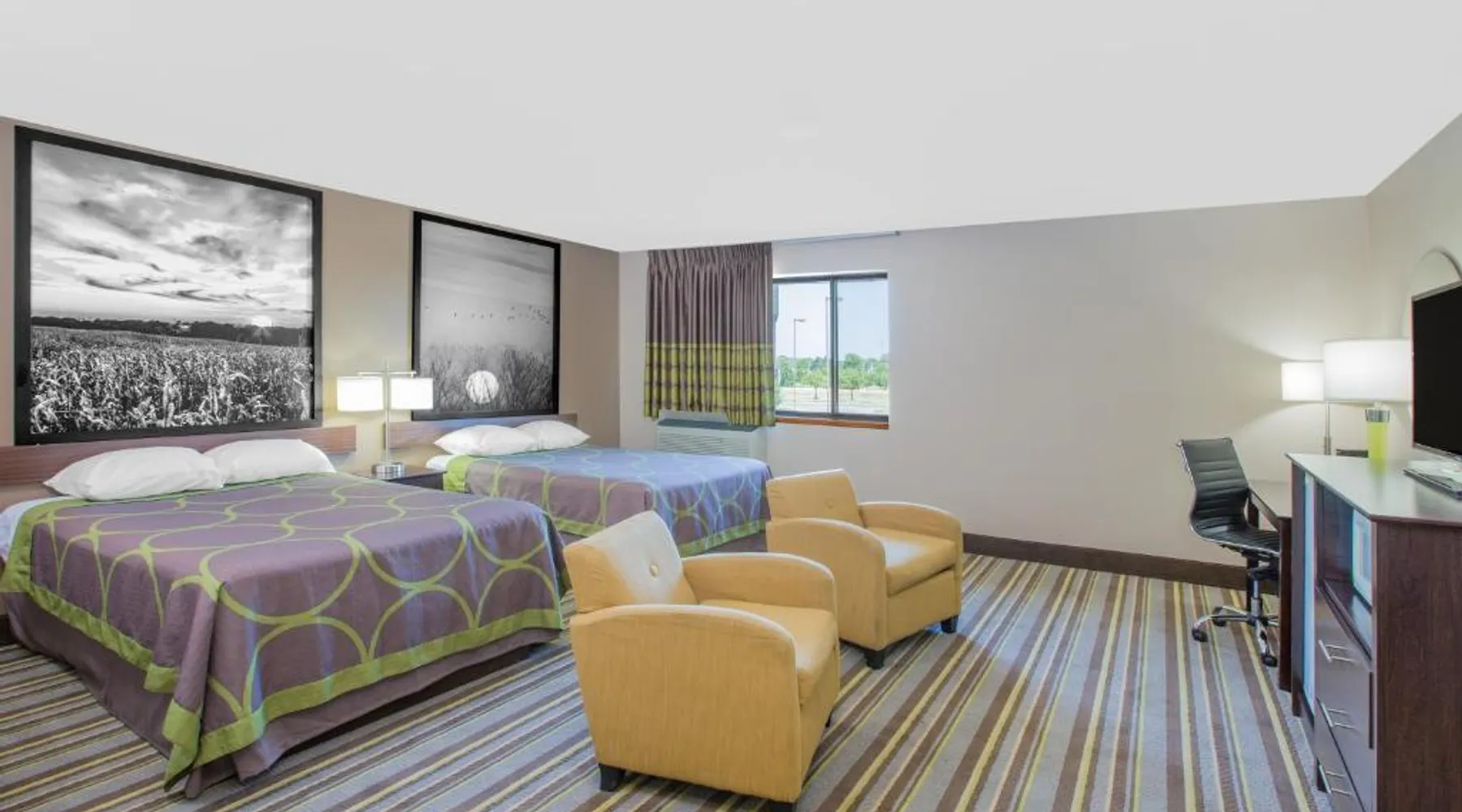 Comfortable Accommodations: Super 8 by Wyndham Hastings in Hastings offers family rooms with air-conditioning, private bathrooms, and free WiFi. Each room includes a TV, hairdryer, and free toiletries. Convenient Facilities: Guests can enjoy a garden, lounge, coffee shop, and 24-hour front desk. Additional amenities include a spa bath, tea and coffee maker, refrigerator, work desk, and seating area. Breakfast and Parking: A complimentary breakfast is provided by the property. Free on-site private parking is available for guests. Location and Airport: Central Nebraska Regional Airport is 26 mi away. The convenient location and comfortable bathrooms are highly appreciated by guests. This air-conditioned double room includes a TV with cable channels and a private bathroom.