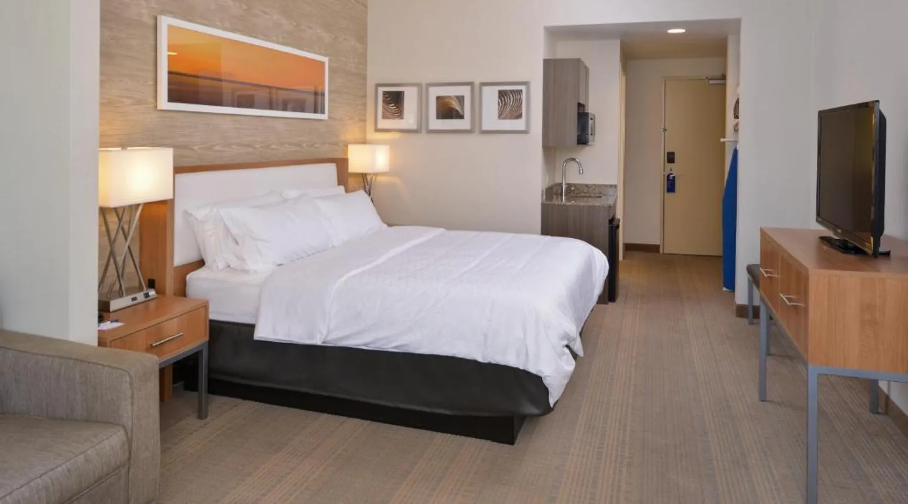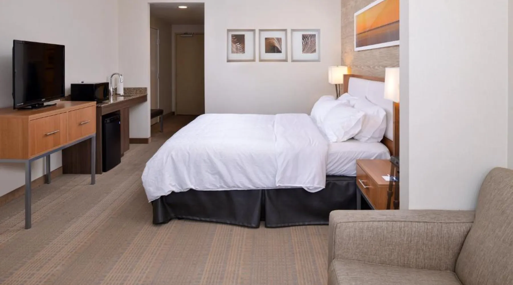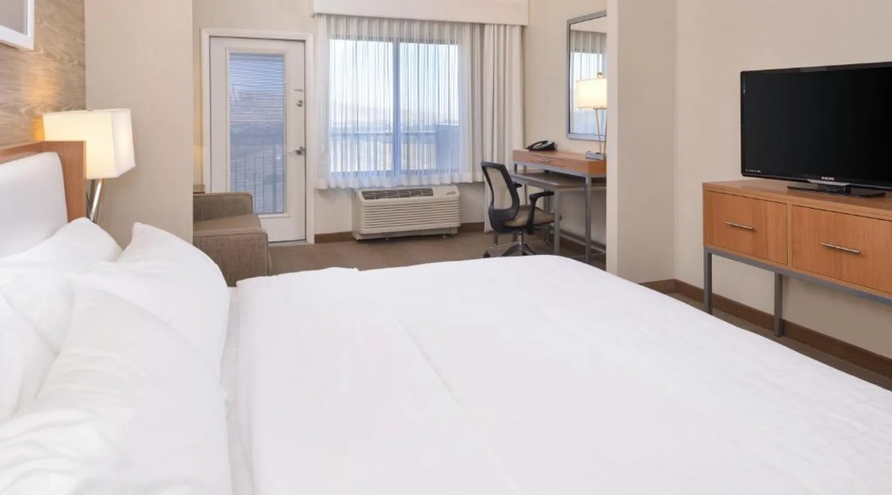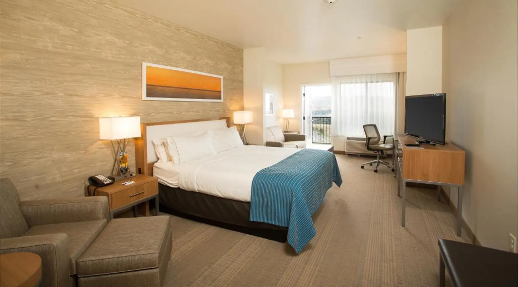 Comfortable Accommodations: Holiday Inn Express Pocatello by IHG in Pocatello offers family rooms with air-conditioning, kitchenettes, balconies, and private bathrooms. Each room includes a refrigerator, microwave, TV, and free toiletries. Exceptional Facilities: Guests enjoy a fitness center, indoor swimming pool, and free airport shuttle service. Additional amenities include a hot tub, lounge, business area, and outdoor seating. Free on-site parking is available. Delicious Breakfast: A complimentary American buffet breakfast is served daily, highly praised by guests. Prime Location: Located 12 mi from Pocatello Regional Airport and 2.5 mi from L.E. and Thelma E. Stephens Performing Arts Center. Activities such as fishing, skiing, hiking, and cycling are nearby. This double room has a cable flat-screen TV, a coffee machine, and ironing facilities.