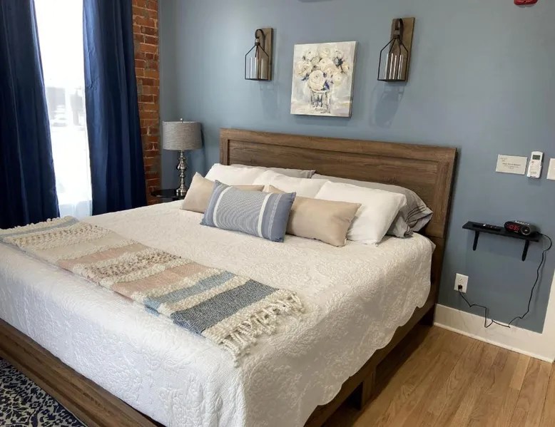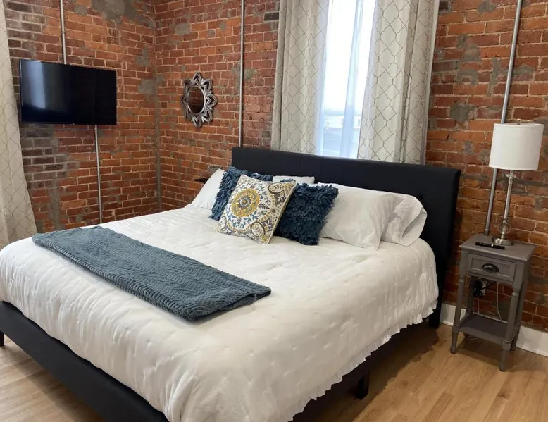 Comfortable Accommodations: Brickhouse Loft in Martinsville offers family rooms with private bathrooms, air-conditioning, and city views. Each room includes a tea and coffee maker, mini-bar, and free toiletries. Modern Amenities: Guests enjoy free WiFi, streaming services, and a work desk. Additional facilities include a lounge, outdoor seating area, and free on-site private parking. Convenient Location: Located 25 mi from Indianapolis International Airport, the hotel is near attractions such as Lucas Oil Stadium (30 mi) and Indiana University (21 mi). Guests appreciate the room cleanliness, location, and bed comfort. This spacious suite is consisted of of 1 living room, 1 separate bedroom and 1 bathroom with a walk-in shower and free toiletries. The air-conditioned suite offers a flat-screen TV with streaming services, a mini-bar, a tea and coffee maker, a seating area as well as city views. The unit offers 1 bed.