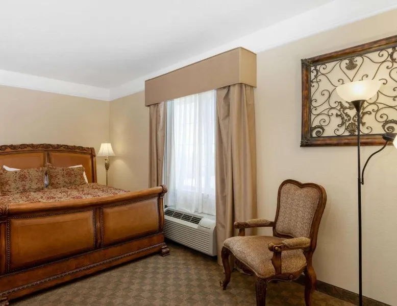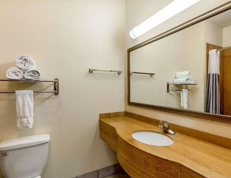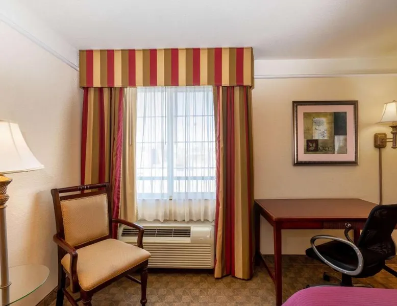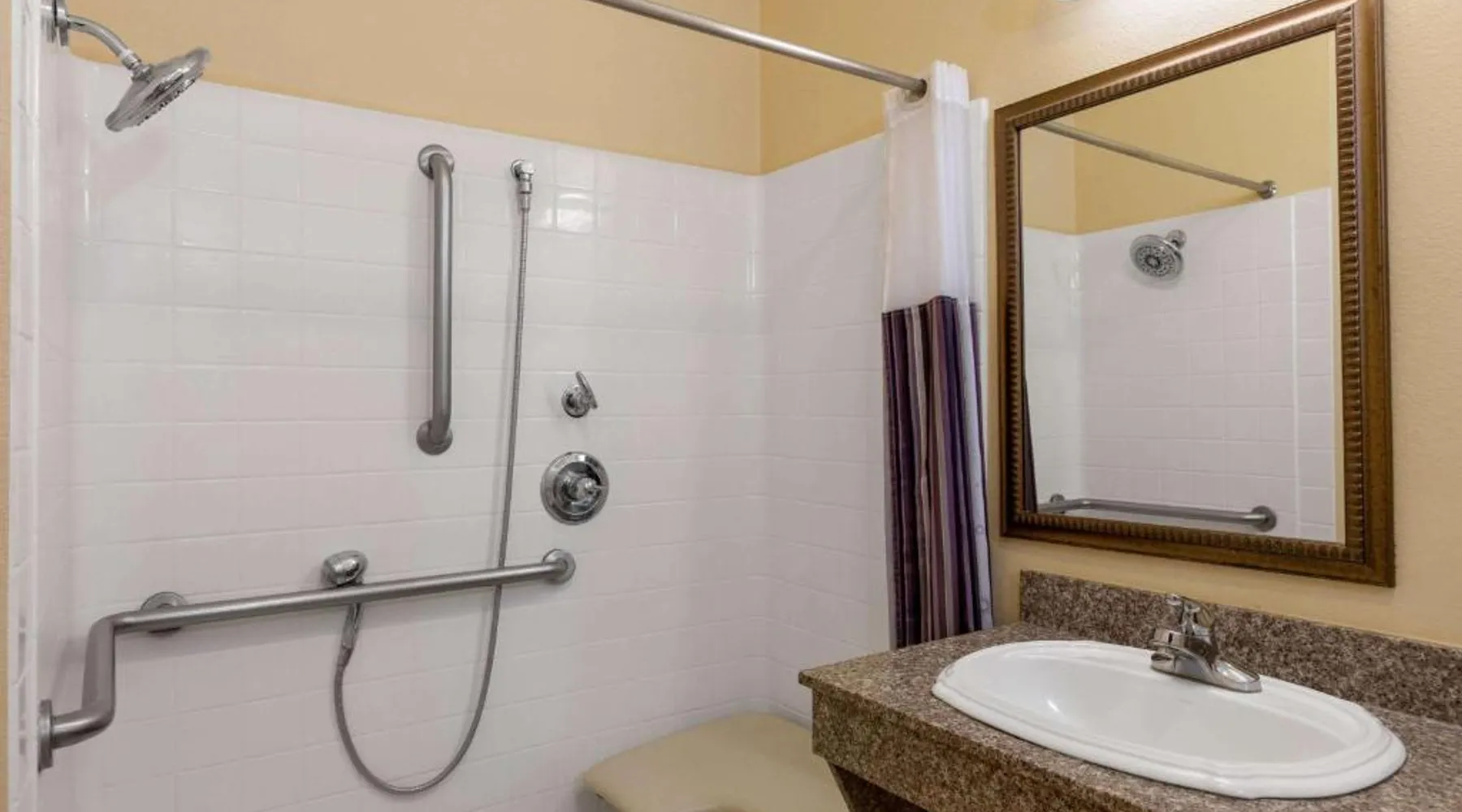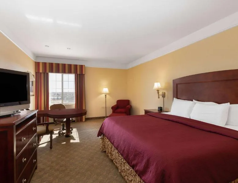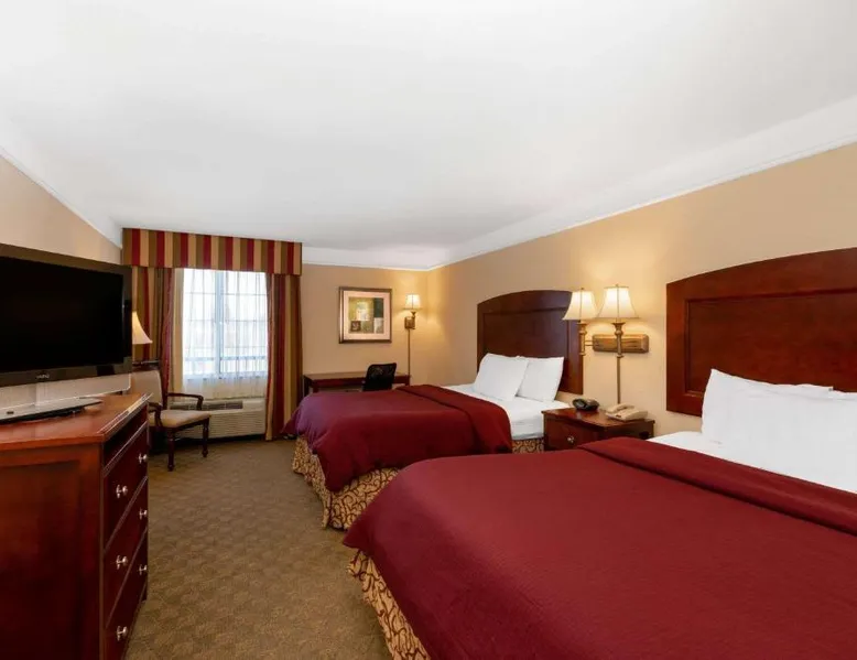 Comfortable Accommodations: La Quinta by Wyndham Dodge City in Dodge City offers family rooms with air-conditioning, private bathrooms, and free WiFi. Each room includes a work desk, TV, and free toiletries. Convenient Facilities: Guests enjoy a public bath, elevator, 24-hour front desk, business area, coffee shop, outdoor seating, picnic area, and luggage storage. Free on-site parking is available. Delicious Breakfast: A continental buffet breakfast with juice, fresh pastries, and fruits is served daily. Guests appreciate the quality and variety. Prime Location: Located 5.6 mi from Dodge City Regional Airport, the hotel is near attractions such as Boot Hill Museum and Fort Dodge. This air-conditioned quadruple room is consisted of of a flat-screen TV with cable channels and a private bathroom. The unit has 2 beds.