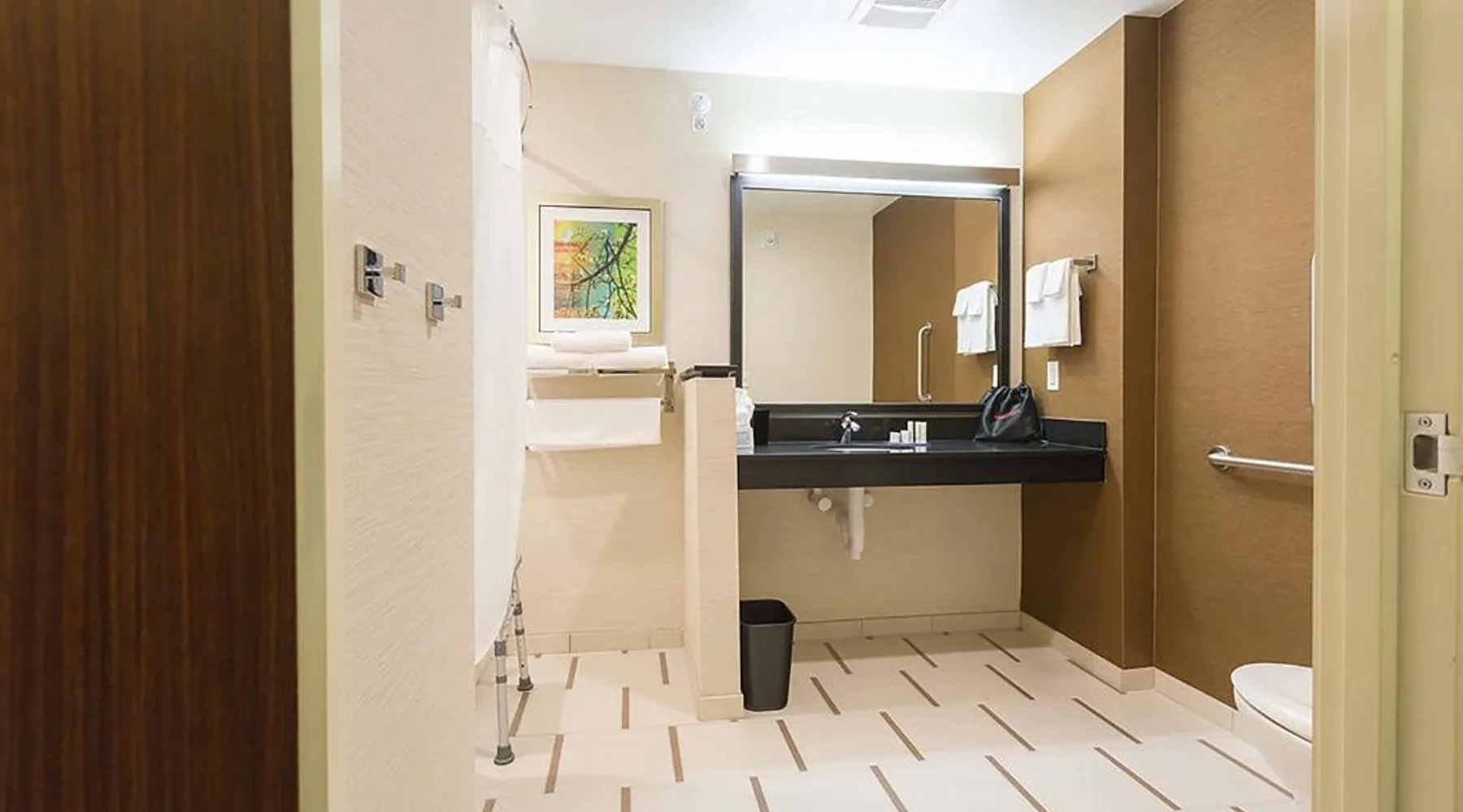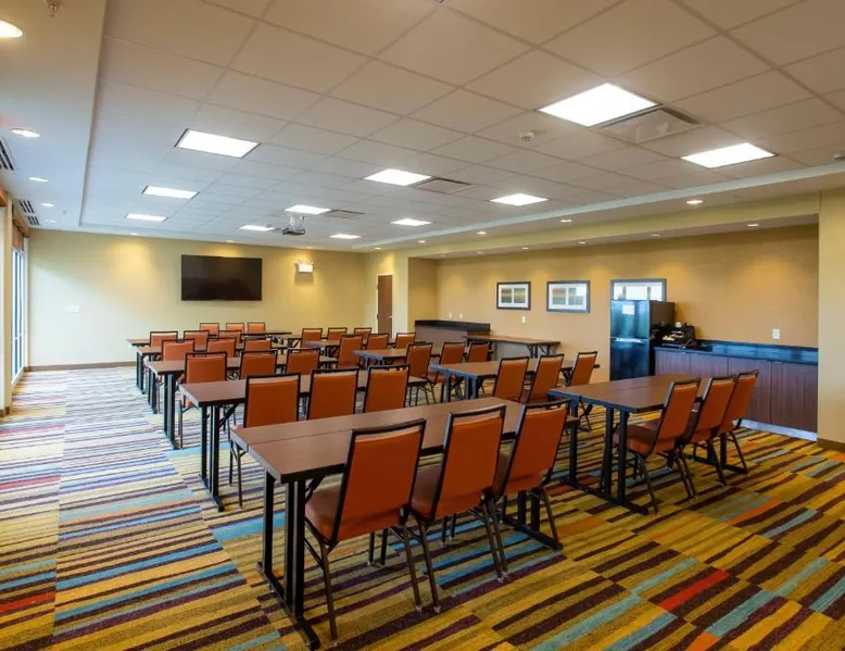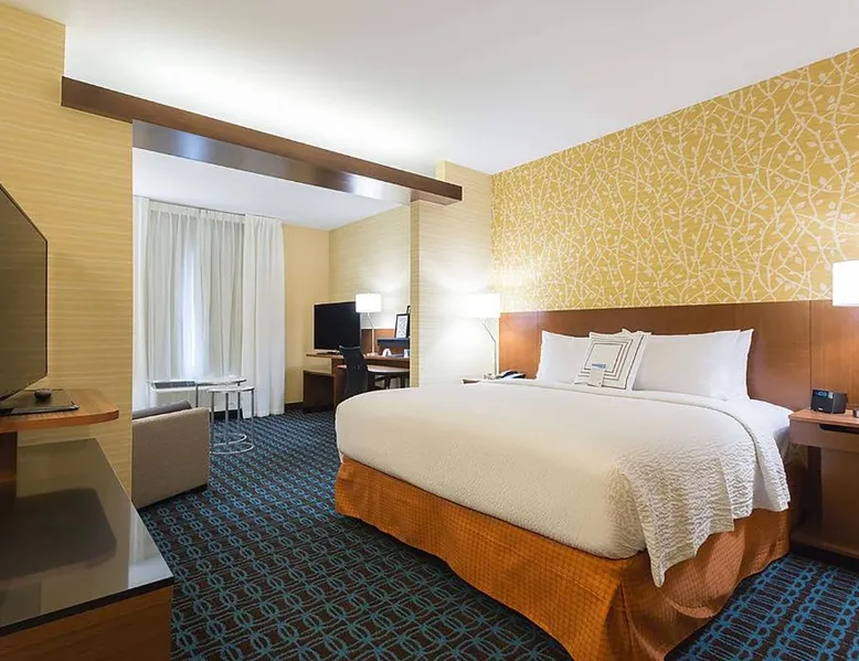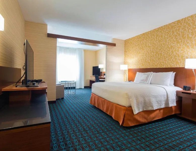Comfortable Accommodations: Fairfield Inn & Suites by Marriott Jamestown in Jamestown offers spacious rooms with air-conditioning, private bathrooms, and free WiFi. Guests appreciate the room cleanliness, size, and comfort. Leisure Facilities: The hotel features a fitness center, indoor swimming pool, and free bicycles. Additional amenities include an outdoor fireplace, hot tub, and kids' pool. Convenient Services: Free on-site parking, a 24-hour front desk, and express check-in and check-out services ensure a smooth stay. Nearby Attractions: Jamestown Regional Airport is 4.3 mi away, and the hotel provides access to local attractions. A 47" flat-screen cable TV and an private bathroom are featured in this room. A microwave, a small refrigerator and coffee machine are also included.