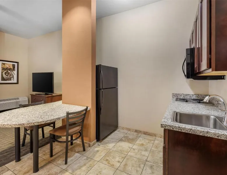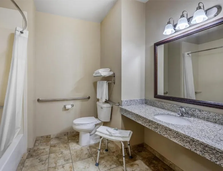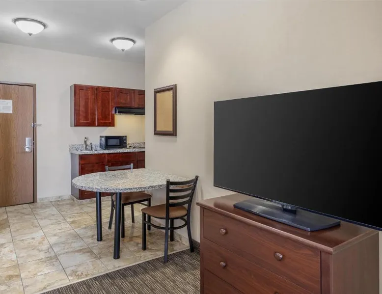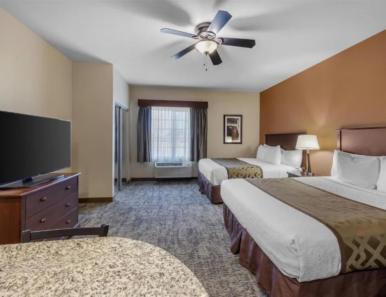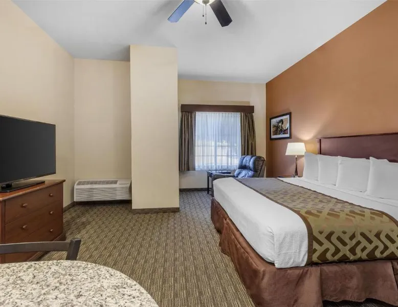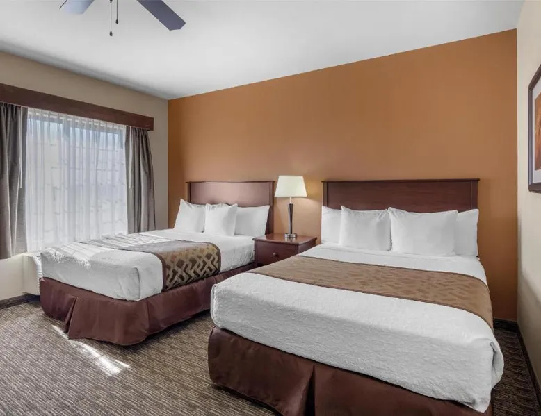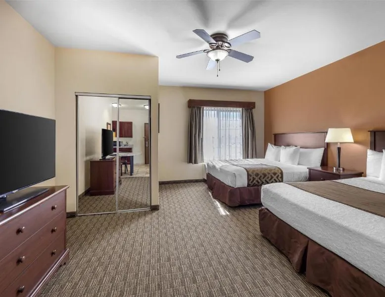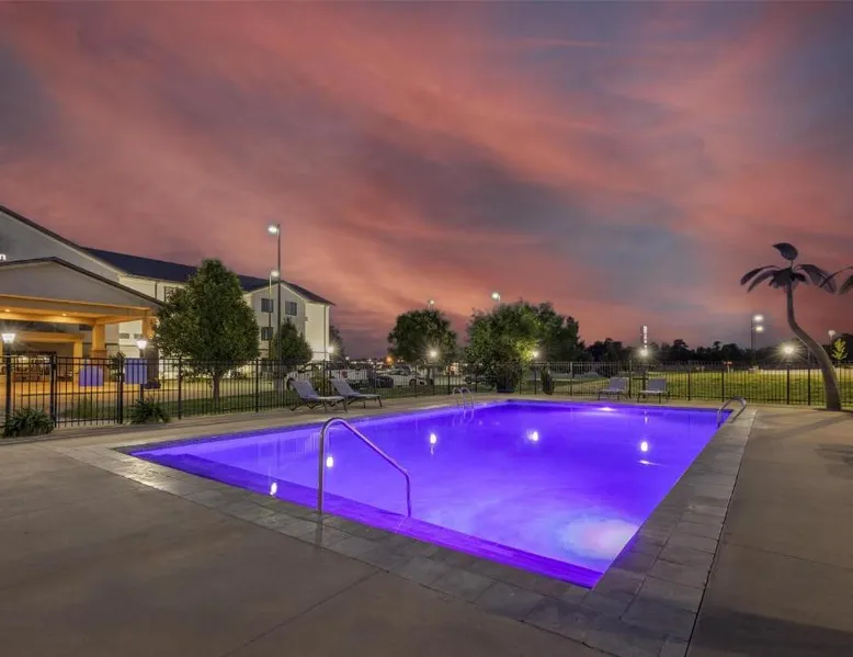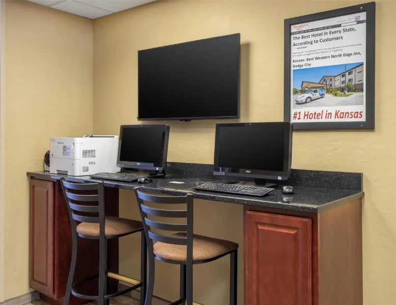 Comfortable Accommodations: Best Western North Edge Inn in Dodge City offers spacious rooms with air-conditioning, private bathrooms, and free WiFi. Each room includes a kitchenette, work desk, and TV, ensuring a pleasant stay. Leisure Facilities: Guests can enjoy a seasonal outdoor swimming pool, hot tub, and fitness room. The property also features a lounge, outdoor seating area, and family rooms, catering to all preferences. Dining Options: A continental, American, and buffet breakfast is served daily, including juice, fresh pastries, pancakes, and fruits. Free on-site private parking is available for convenience. Convenient Location: Located 2.5 mi from Dodge City Regional Airport, the hotel provides easy access to local attractions. Guests appreciate the attentive staff, room cleanliness, and spacious accommodations. The spacious double room offers air conditioning, a seating area, as well as a private bathroom featuring a bath or a shower and a hairdryer. The well-equipped kitchenette features a stovetop, a refrigerator and a microwave. The double room features a flat-screen TV with cable channels, a wardrobe, a carpeted floor and heating. The unit offers 2 beds.