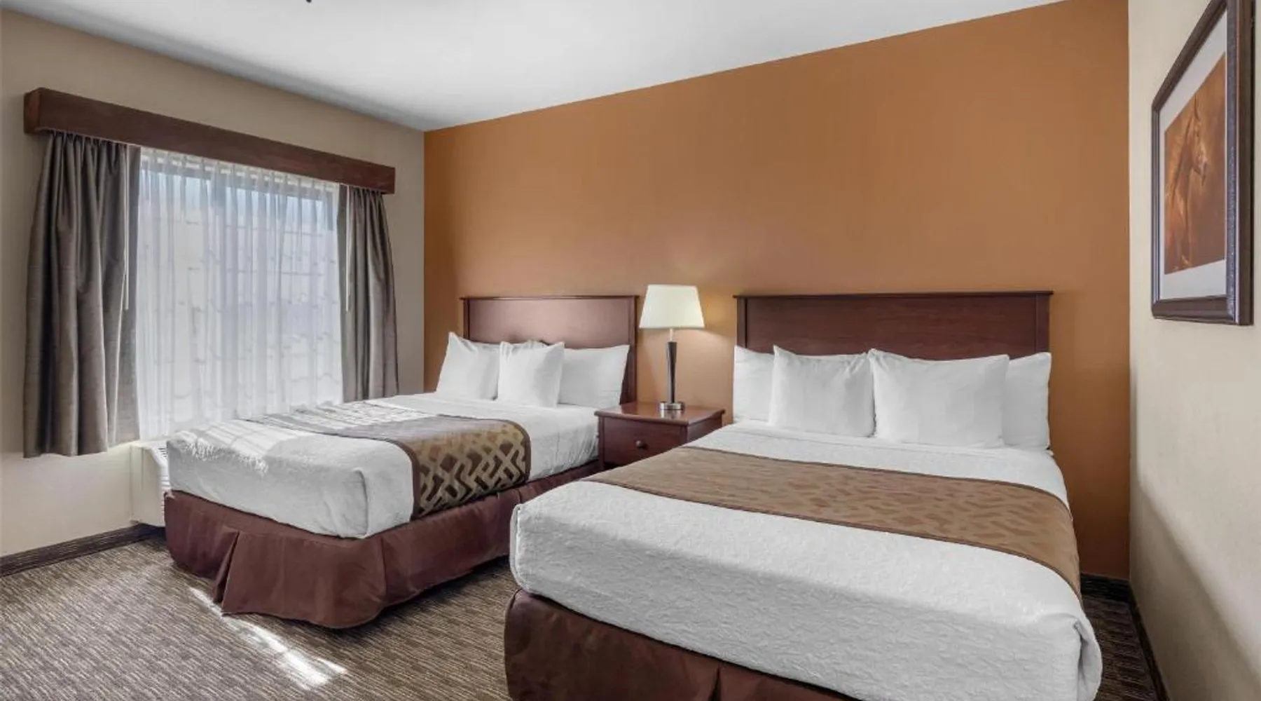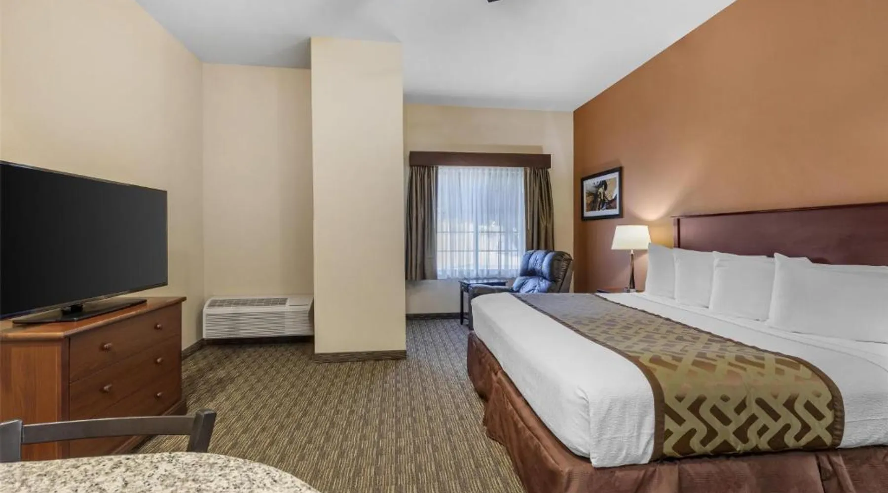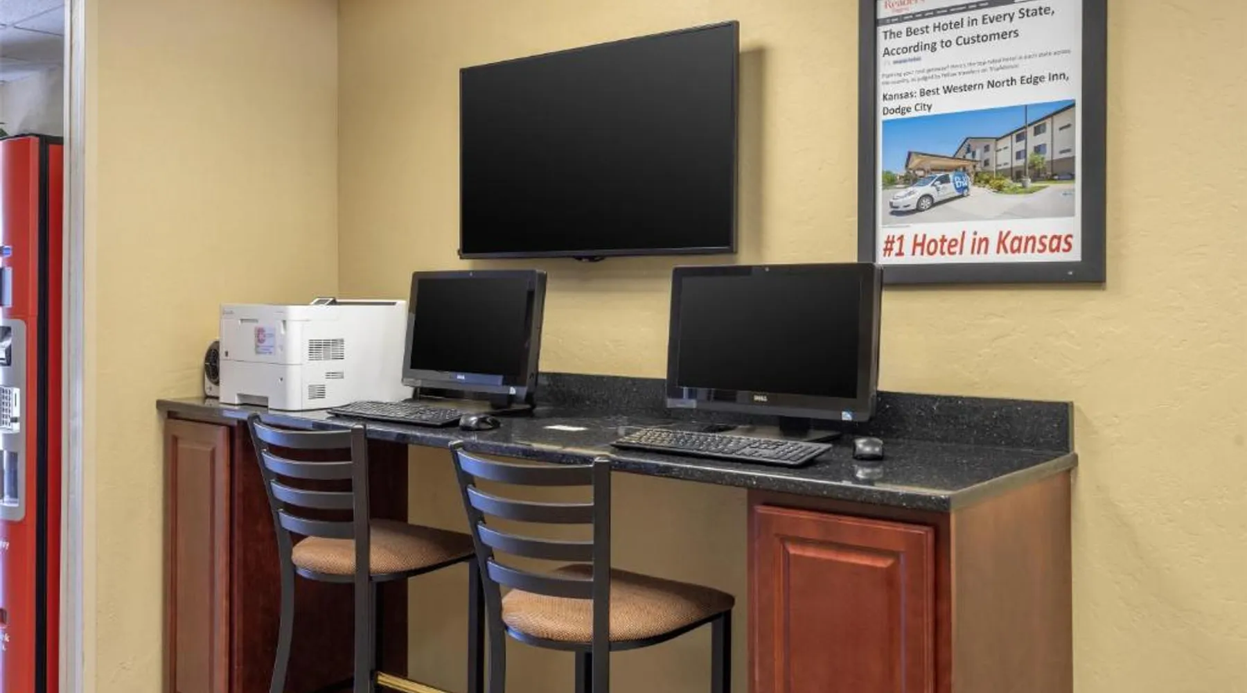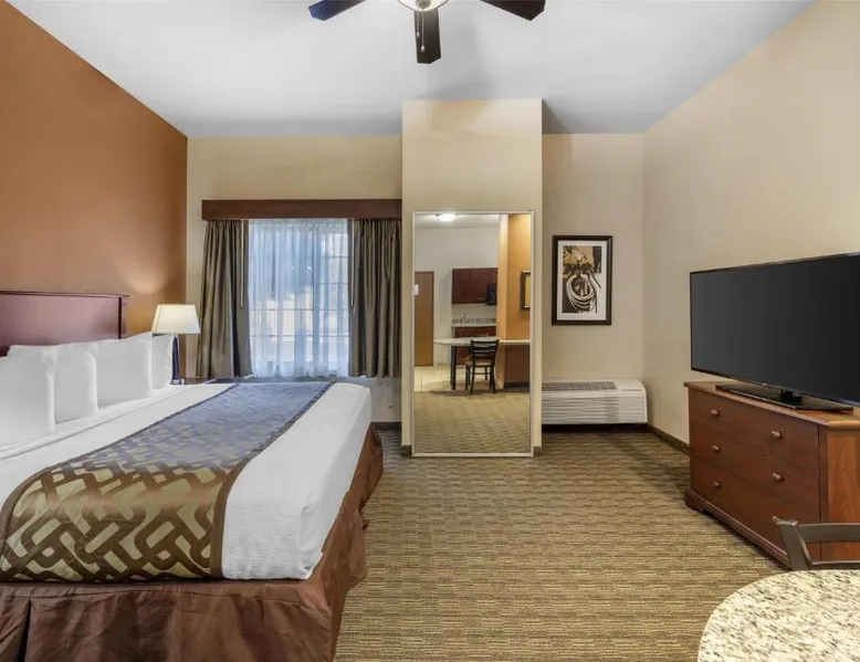 Comfortable Accommodations: Best Western North Edge Inn in Dodge City offers spacious rooms with air-conditioning, private bathrooms, and free WiFi. Each room includes a kitchenette, work desk, and TV, ensuring a pleasant stay. Leisure Facilities: Guests can enjoy a seasonal outdoor swimming pool, hot tub, and fitness room. The property also features a lounge, outdoor seating area, and family rooms, catering to all preferences. Dining Options: A continental, American, and buffet breakfast is served daily, including juice, fresh pastries, pancakes, and fruits. Free on-site private parking is available for convenience. Convenient Location: Located 2.5 mi from Dodge City Regional Airport, the hotel provides easy access to local attractions. Guests appreciate the attentive staff, room cleanliness, and spacious accommodations. The spacious double room offers air conditioning, a seating area, as well as a private bathroom featuring a bath or a shower and a hairdryer. The well-equipped kitchenette features a stovetop, a refrigerator and a microwave. The double room features a flat-screen TV with cable channels, a wardrobe, a carpeted floor and heating. The unit offers 2 beds.