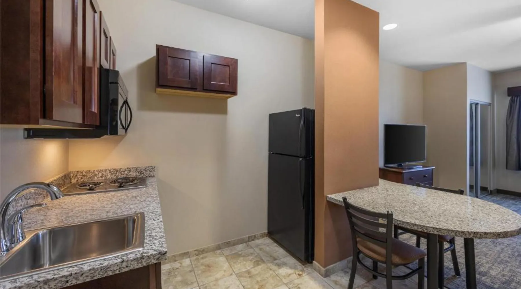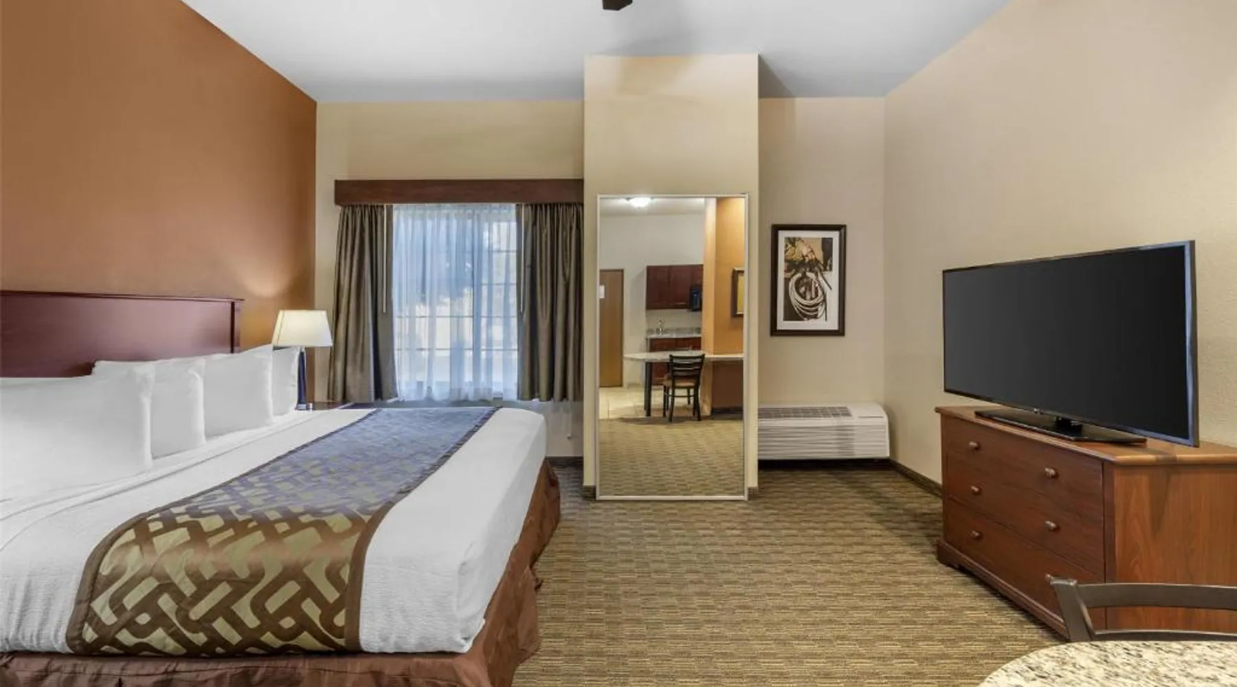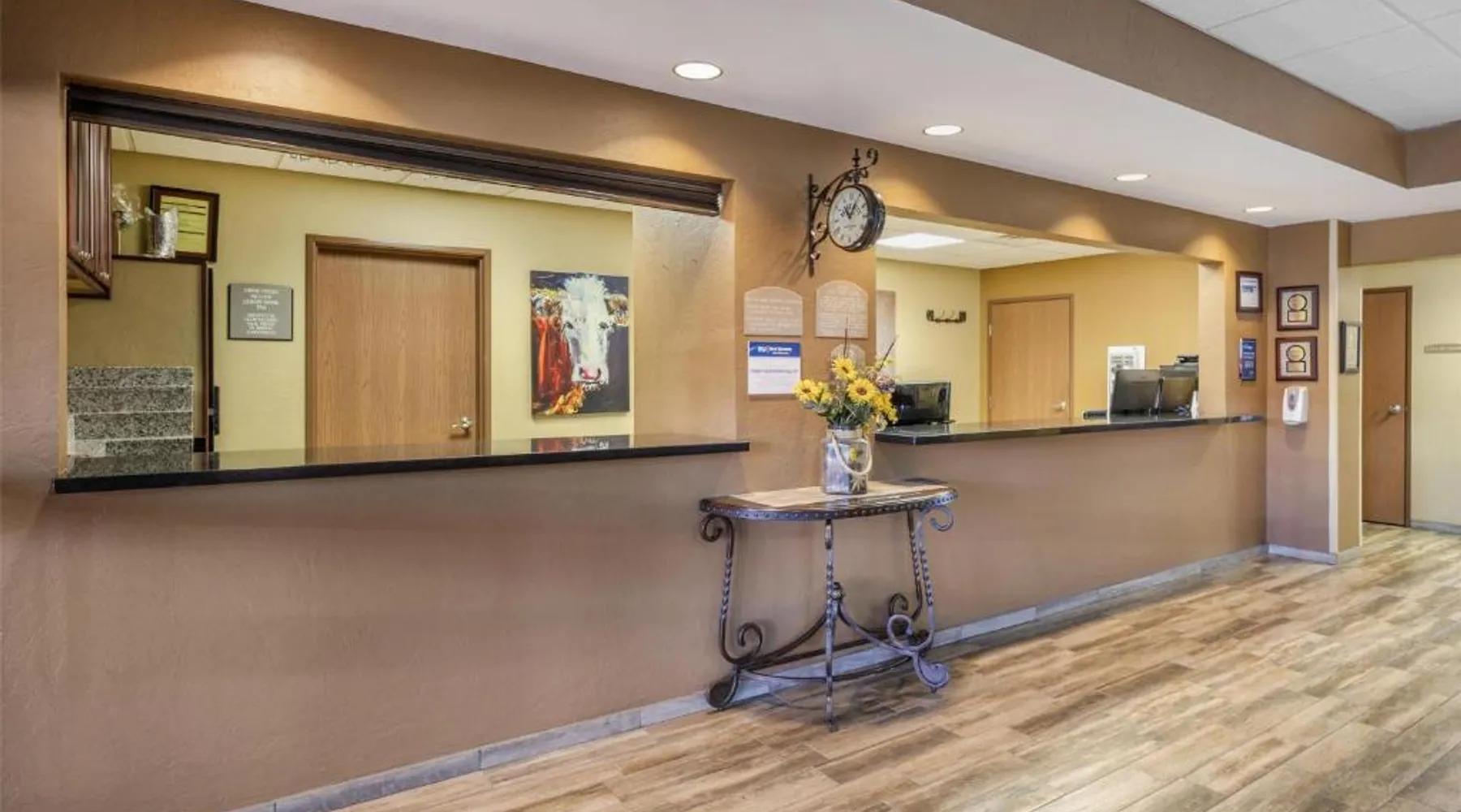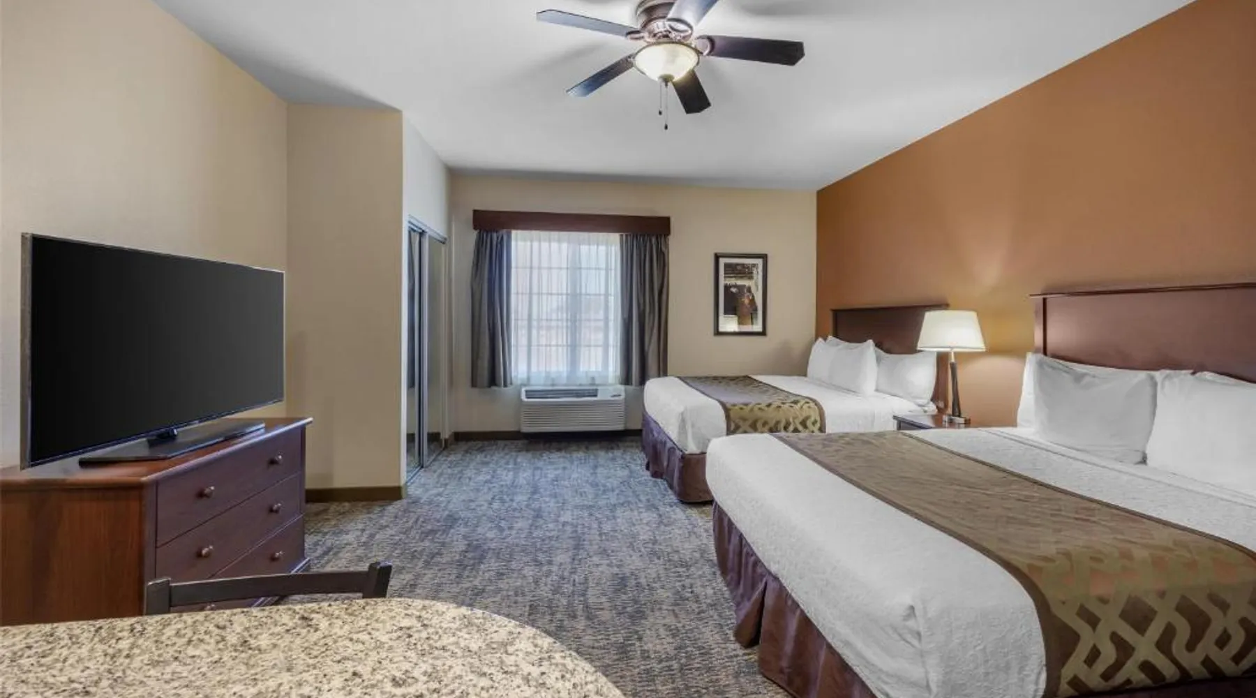 Comfortable Accommodations: Best Western North Edge Inn in Dodge City offers spacious rooms with air-conditioning, private bathrooms, and free WiFi. Each room includes a kitchenette, work desk, and TV, ensuring a pleasant stay. Leisure Facilities: Guests can enjoy a seasonal outdoor swimming pool, hot tub, and fitness room. The property also features a lounge, outdoor seating area, and family rooms, catering to all preferences. Dining Options: A continental, American, and buffet breakfast is served daily, including juice, fresh pastries, pancakes, and fruits. Free on-site private parking is available for convenience. Convenient Location: Located 2.5 mi from Dodge City Regional Airport, the hotel provides easy access to local attractions. Guests appreciate the attentive staff, room cleanliness, and spacious accommodations. The spacious double room offers air conditioning, a seating area, as well as a private bathroom featuring a bath or a shower and a hairdryer. The well-equipped kitchenette features a stovetop, a refrigerator and a microwave. The double room features a flat-screen TV with cable channels, a wardrobe, a carpeted floor and heating. The unit offers 2 beds.