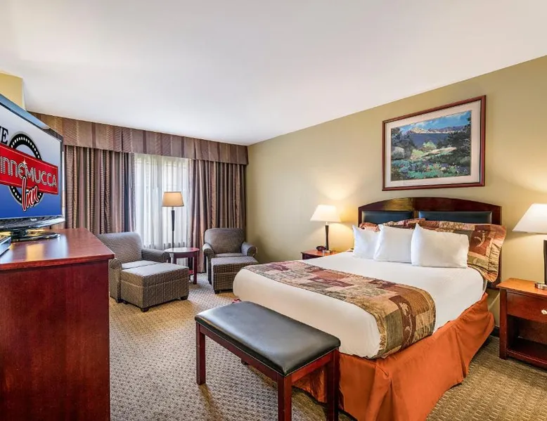 Located 1 mile from Pioneer Park, this Nevada hotel features an on-site casino, video arcade and outdoor pool. All guest rooms include free Wi-Fi. The property features a restaurant. The restaurant hours are 6 am to 10 pm. Food is served in our Sports Lounge until 11 pm. The air-conditioned rooms as the Winnemucca Inn feature a flat-screen TV with cable. A fridge, microwave and tea and coffee-making facilities are provided. The guest rooms are decorated in rich wood and modern accents. The Nevada Winnemucca Inn offers a 24-hour reception. Check-in is at 4 pm. Meeting facilities are located on-site for added convenience. A free airport transport service is available. Humboldt Museum is 1 mile from this hotel. Valley View Shopping Center is a 10-minute walk away. Deluxe Family Suite room is spacious and include two rooms in one. The first room includes two Queen Size beds and a comfortable seating area. Attached is a separate room with a King Size bed. Our Deluxe Family Suite rooms are spacious and include two rooms in one. The first room includes two Queen Size beds and a comfortable seating area. Attached is a separate room with a King Size bed. A large bathroom with bath/shower combo is shared in the room. These rooms are thoroughly deep cleaned after each stay. Room includes two 37'' flat screen with Direct TV, hairdryer, cosmetic mirrors, dual vanity sinks, an iron and ironing board, in-room coffee maker with Starbucks coffee, two microwave/ mini fridge, free local calls, and free, secure, high speed WIFI. These rooms are located in main building adjacent to casino/restaurant. Rooms are located in our exterior building adjacent to pool area.