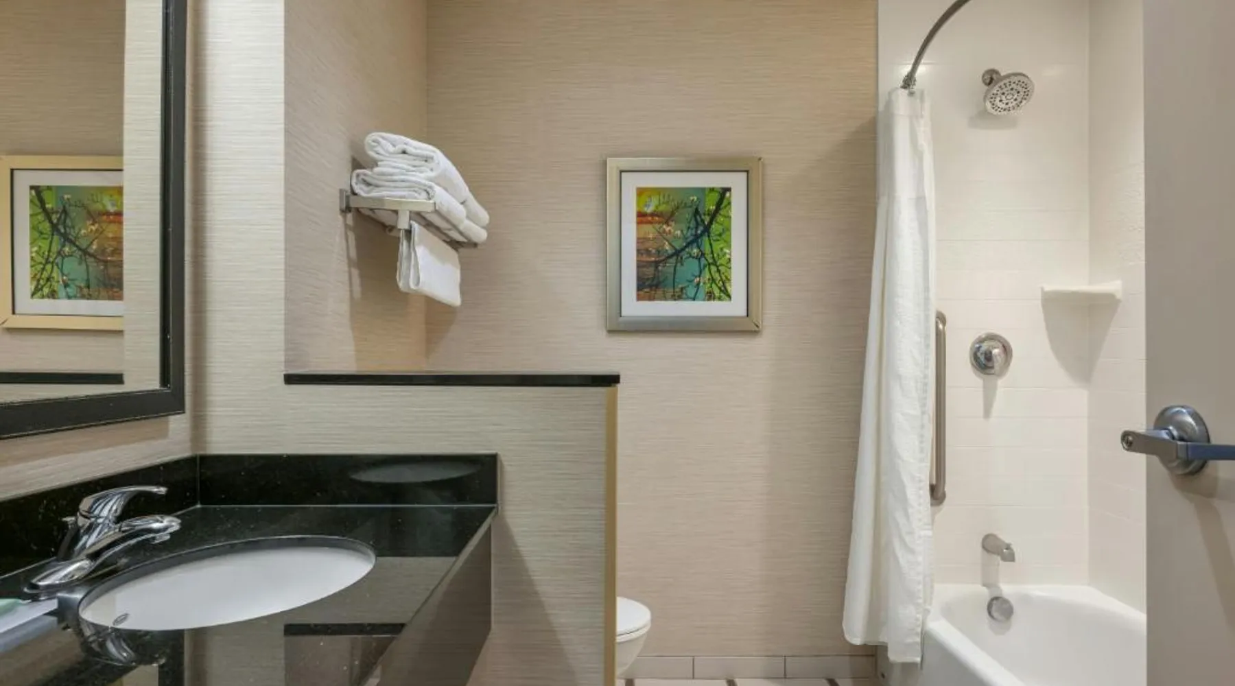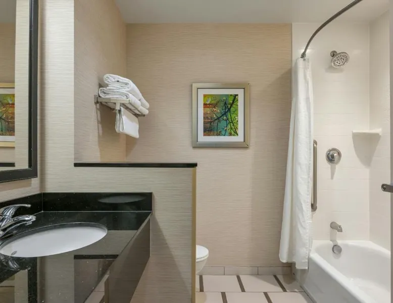 Comfortable Accommodations: Fairfield Inn & Suites by Marriott Twin Falls in Twin Falls offers comfortable rooms with air-conditioning, private bathrooms, and modern amenities. Guests enjoy free WiFi, flat-screen TVs, and work desks. Leisure Facilities: The hotel features a fitness center, sun terrace, indoor swimming pool, and free use of bicycles. Additional facilities include a hot tub, 24-hour front desk, and free on-site parking. Convenient Location: Located 8.1 mi from Magic Valley Regional Airport and 1.2 mi from College Of Southern Idaho, the hotel provides easy access to local attractions. Guests appreciate the convenient location, room comfort, and cleanliness. This air-conditioned room features a cable flat-screen TV, a seating area, a desk, and a private bathroom with a bath or shower and free toiletries. A microwave, refrigerator, and coffee machine are included.