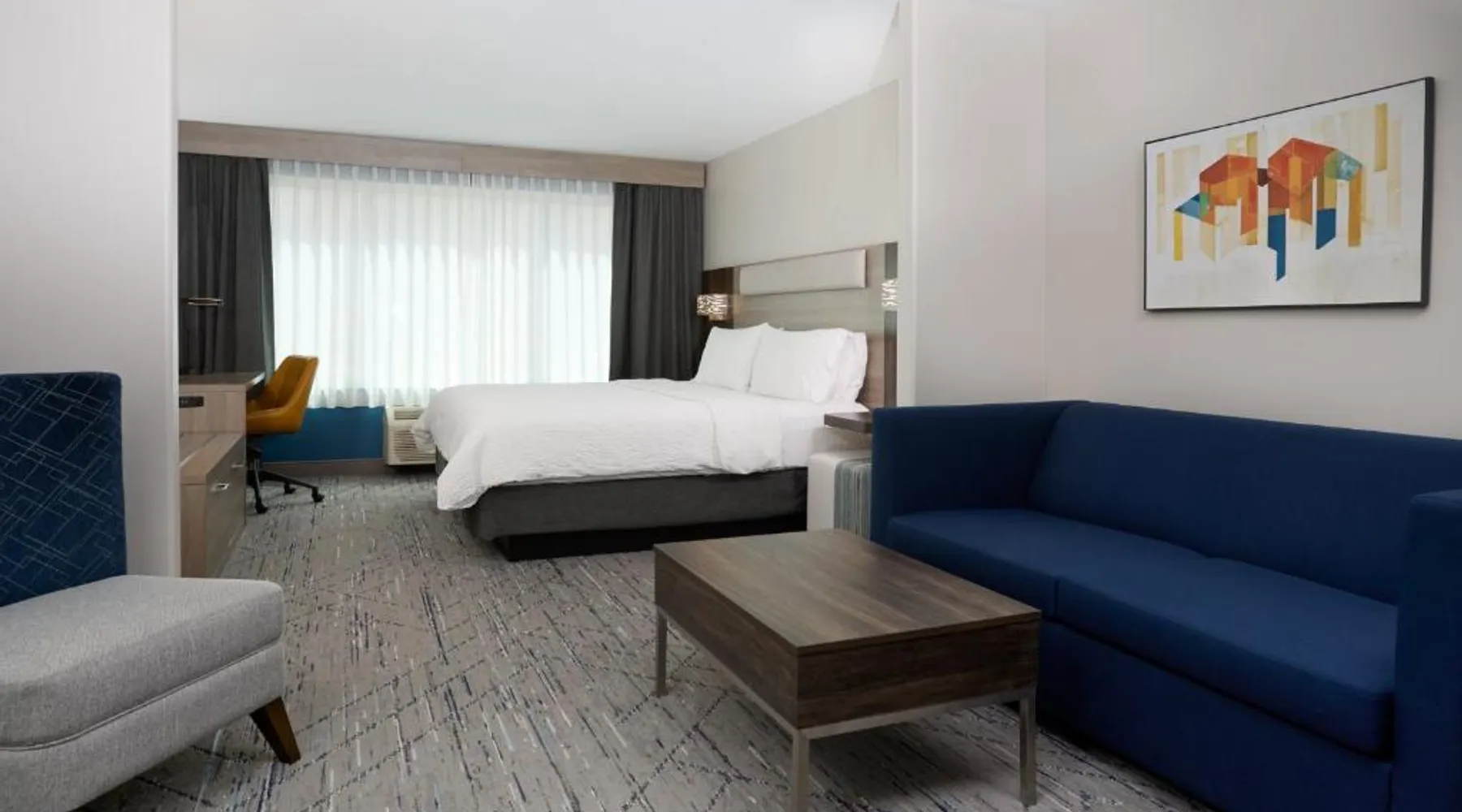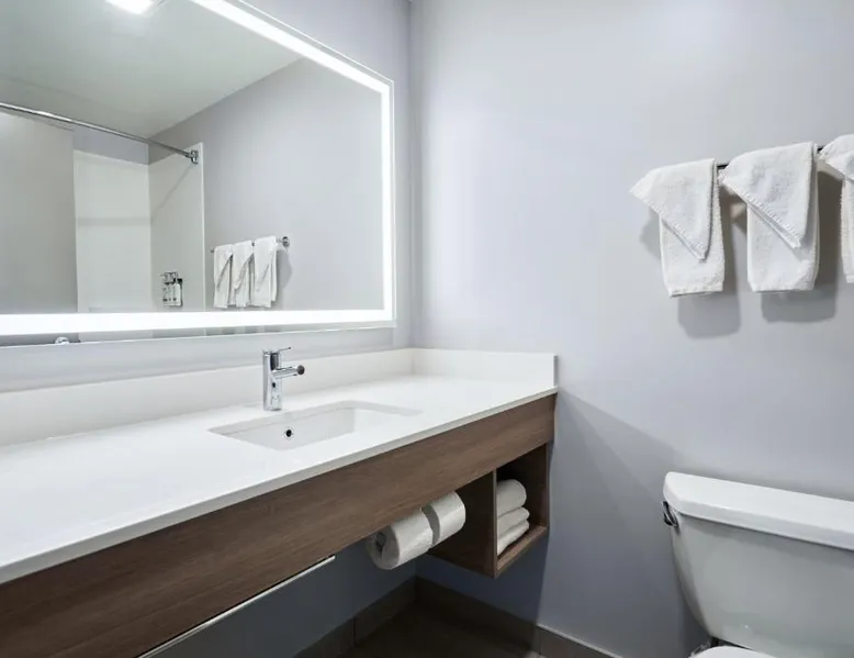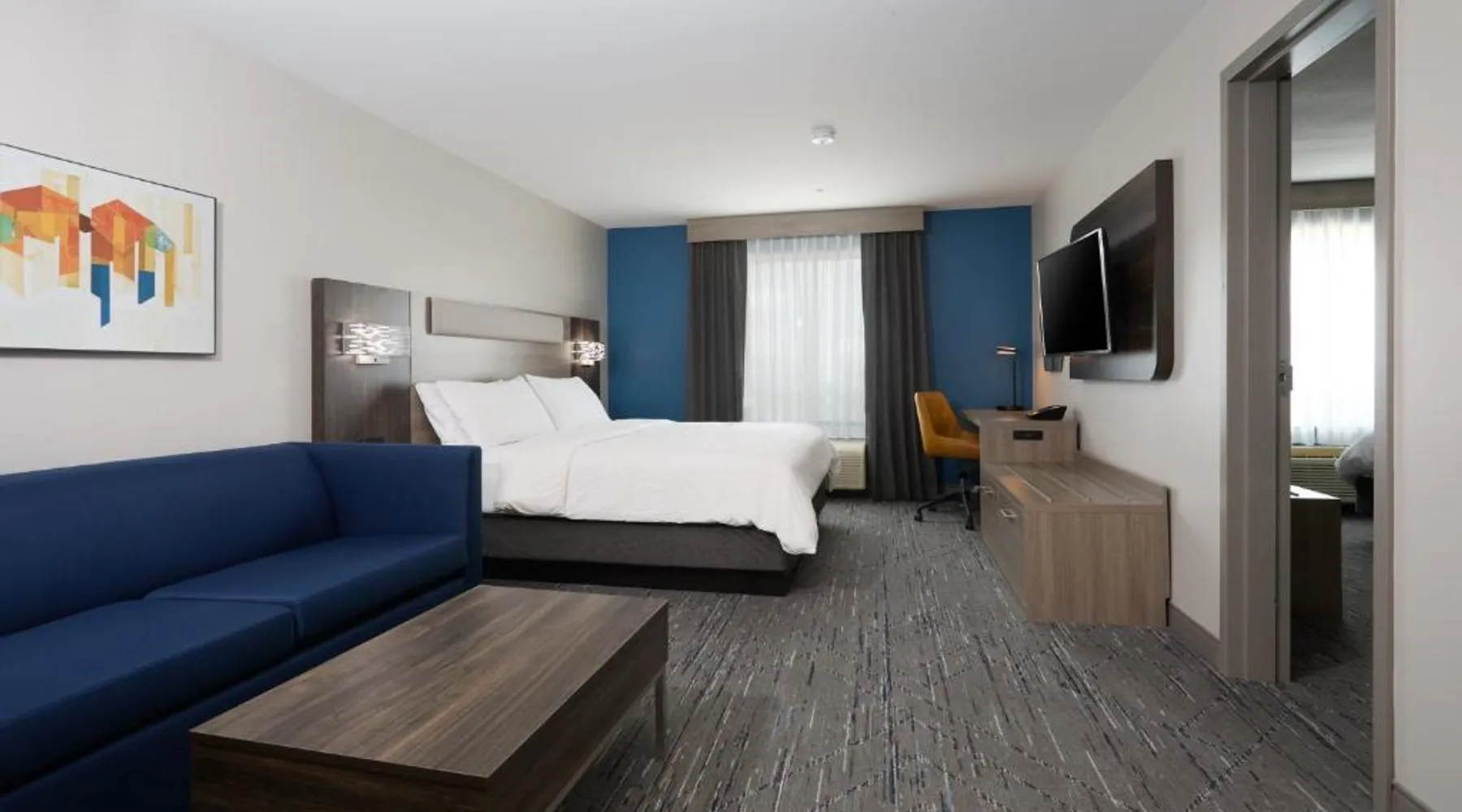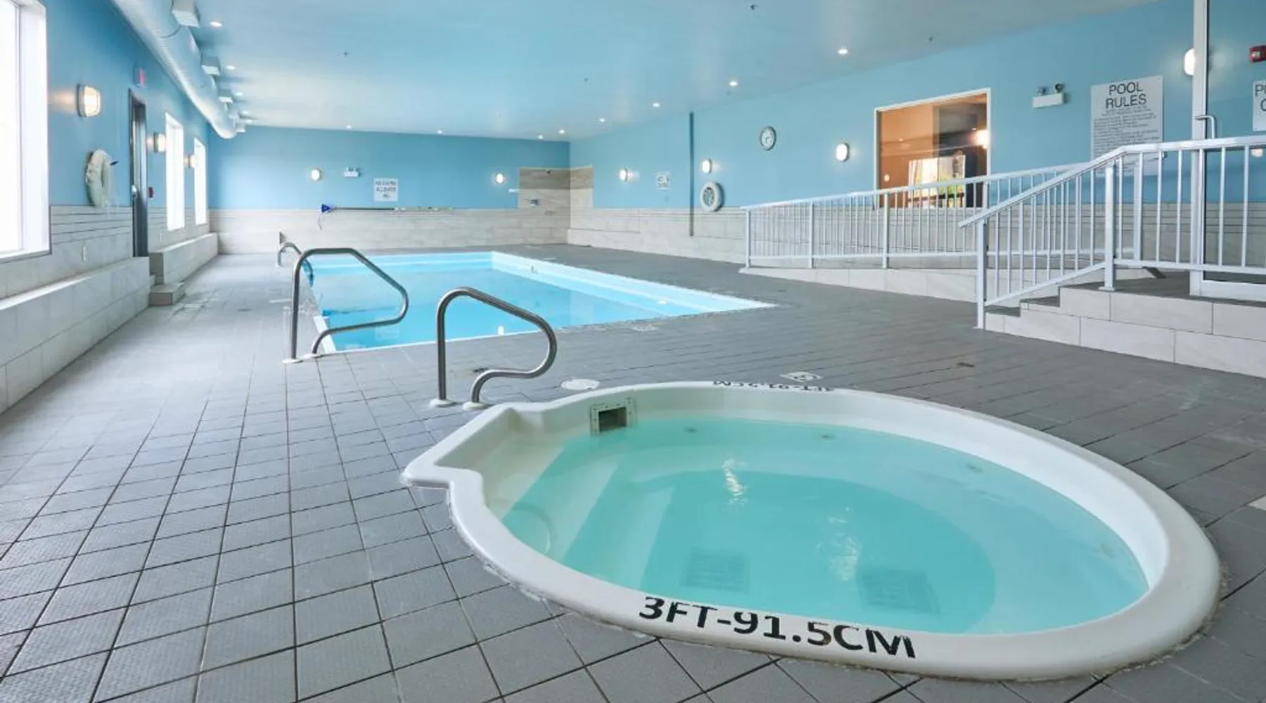 Comfortable Accommodations: Holiday Inn Express Hotel & Suites Swift Current by IHG in Swift Current offers air-conditioned rooms with private bathrooms, tea and coffee makers, and free WiFi. Each room includes a work desk, TV, and free toiletries. Leisure Facilities: Guests can enjoy a saltwater swimming pool, indoor pool, and fitness center. Additional amenities include a hot tub, lounge, and 24-hour front desk. Free on-site parking is available. Dining and Services: A complimentary breakfast is provided by the property. The hotel staff speak English and offer excellent service support. Offering disability access, this suite offers a bathtub with grab bars. A spacious desk, a 32-inch flat-screen satellite TV, coffee maker, a microwave and a refrigerator are also featured. Wi-Fi is free.