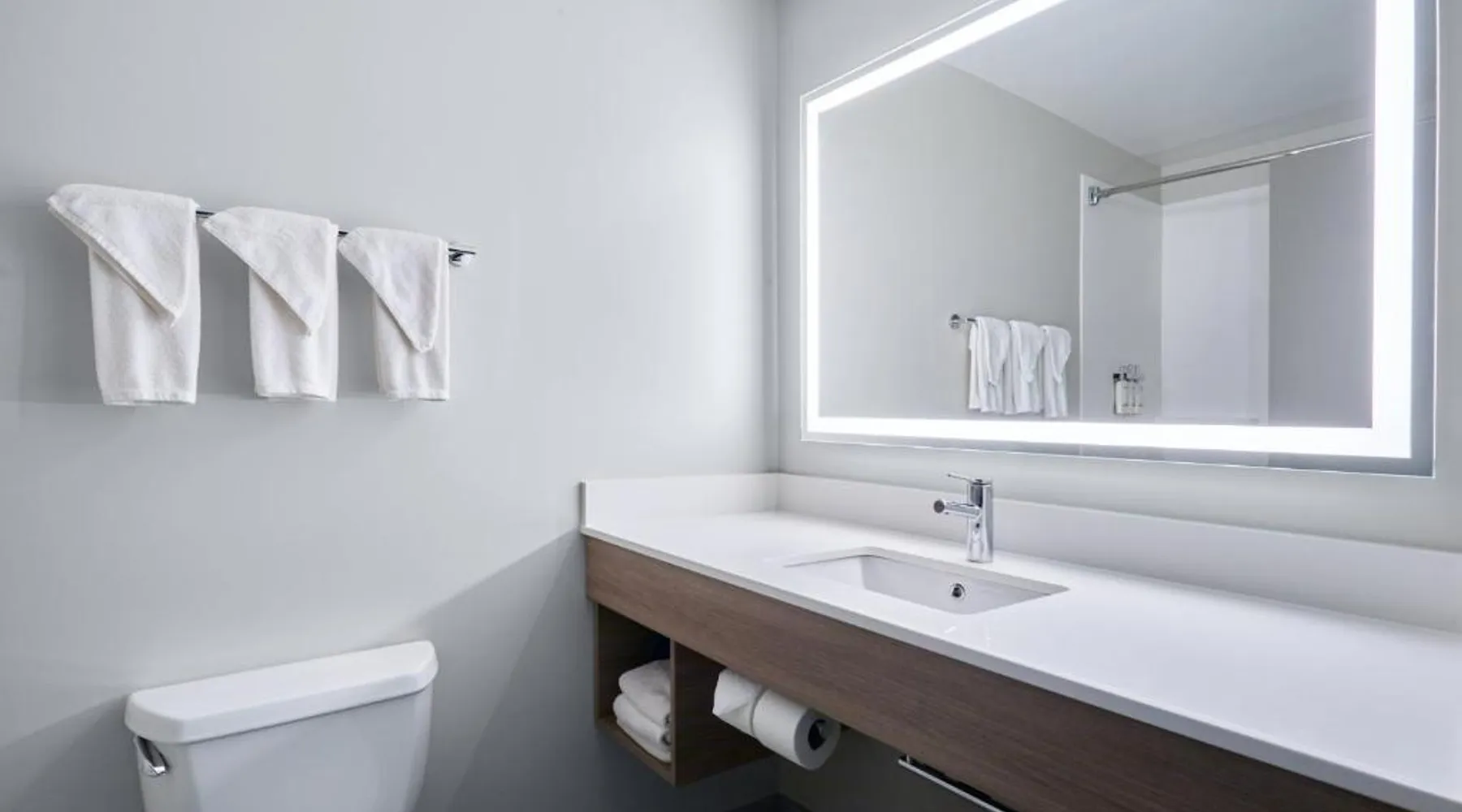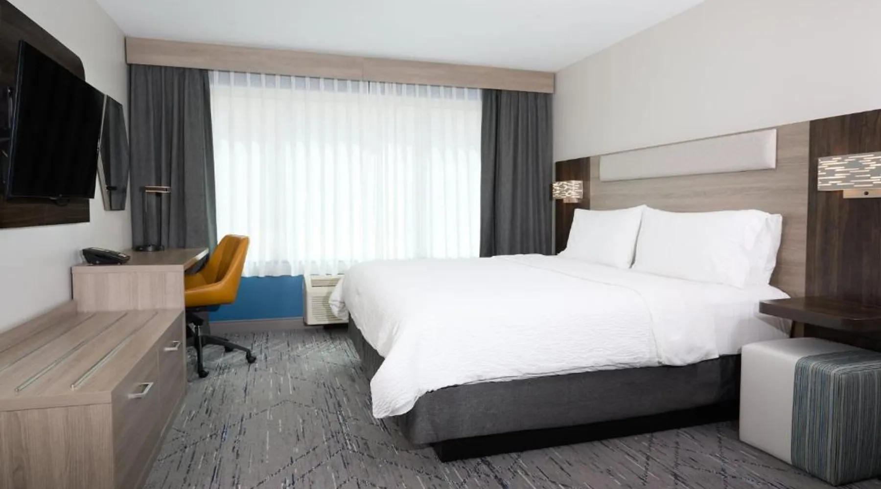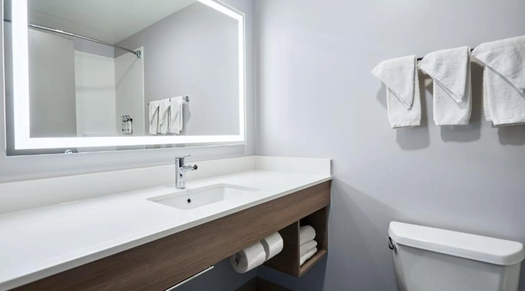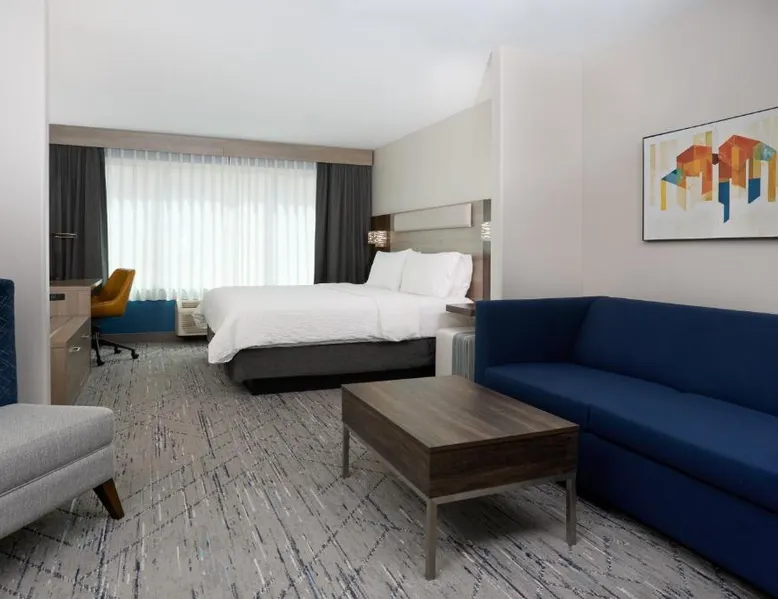 Comfortable Accommodations: Holiday Inn Express Hotel & Suites Swift Current by IHG in Swift Current offers air-conditioned rooms with private bathrooms, tea and coffee makers, and free WiFi. Each room includes a work desk, TV, and free toiletries. Leisure Facilities: Guests can enjoy a saltwater swimming pool, indoor pool, and fitness center. Additional amenities include a hot tub, lounge, and 24-hour front desk. Free on-site parking is available. Dining and Services: A complimentary breakfast is provided by the property. The hotel staff speak English and offer excellent service support. Offering disability access, this suite offers a bathtub with grab bars. A spacious desk, a 32-inch flat-screen satellite TV, coffee maker, a microwave and a refrigerator are also featured. Wi-Fi is free.