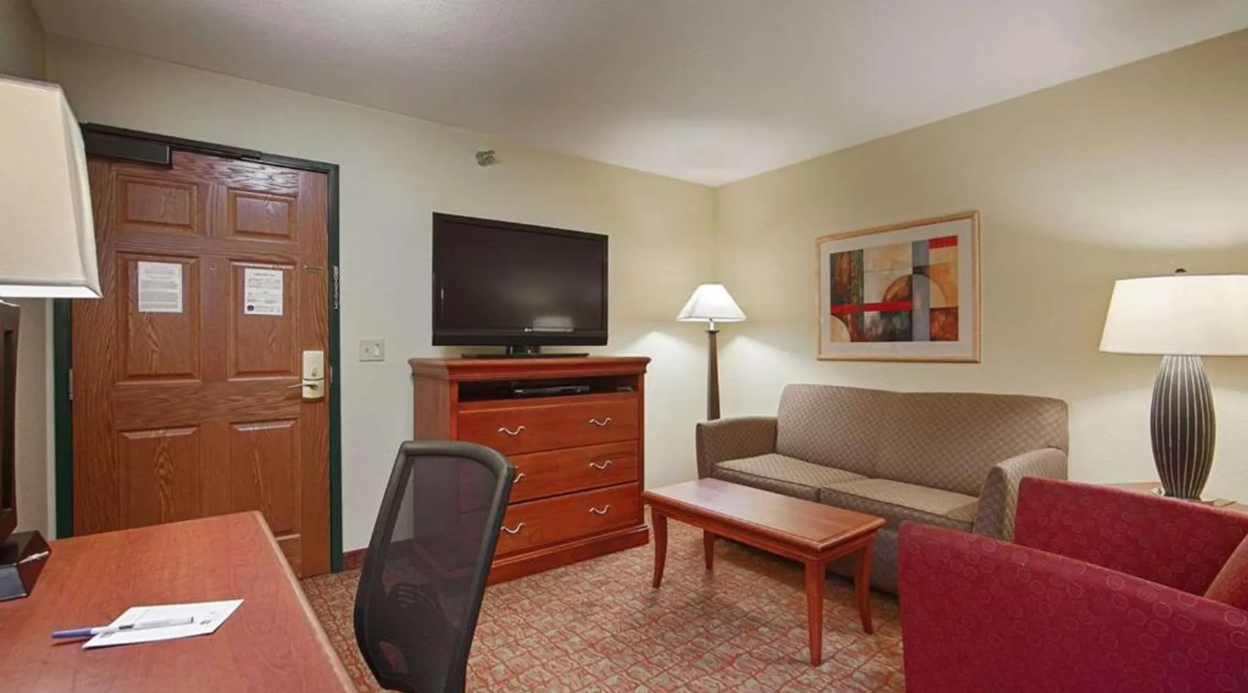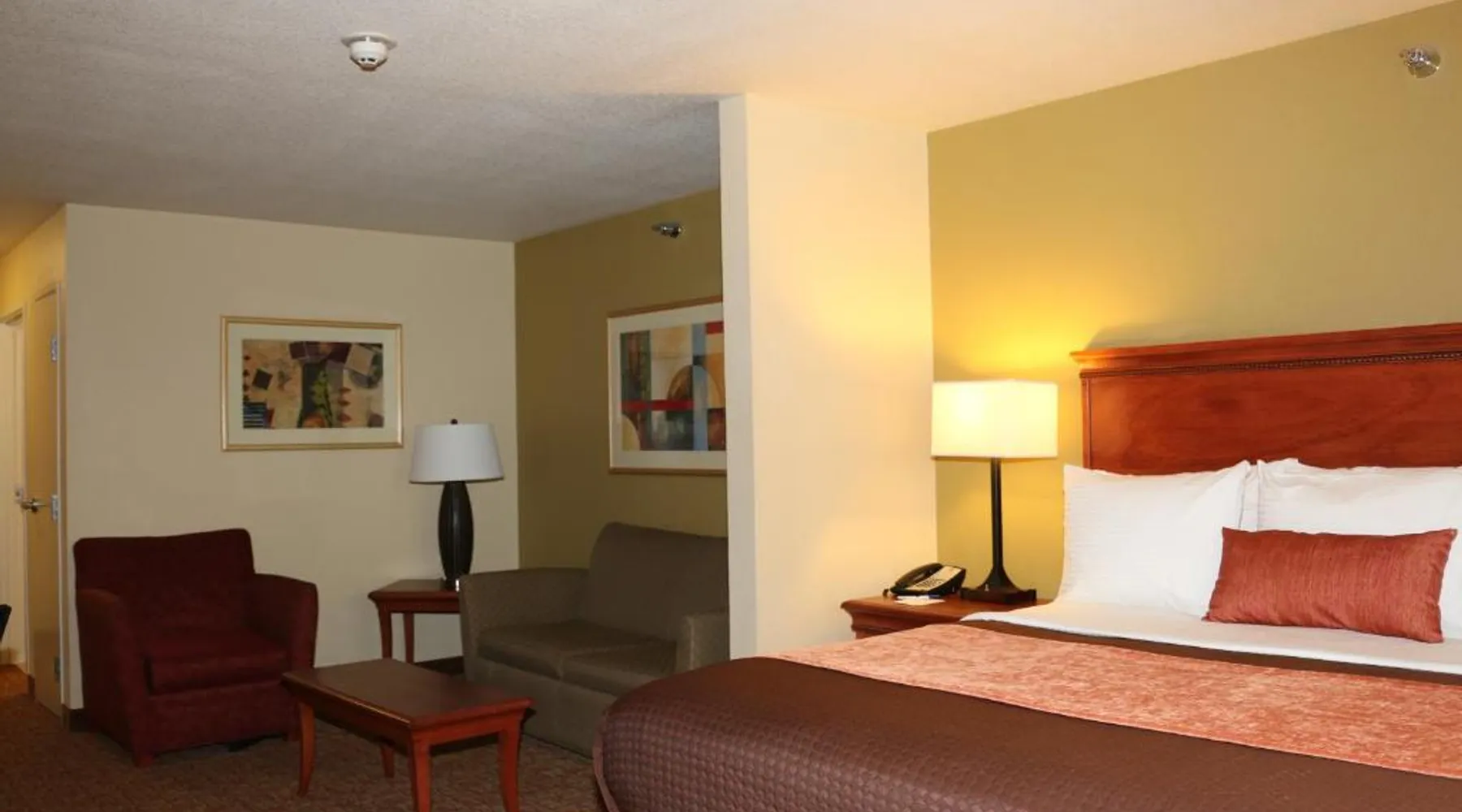 Comfortable Accommodations: Heritage Hotel and Suites in Dickinson offers comfortable rooms with air-conditioning, private bathrooms, and modern amenities. Guests appreciate the room cleanliness and comfort. Facilities and Services: The hotel features a fitness center, indoor swimming pool, and free WiFi. Additional services include a lounge, hot tub, 24-hour front desk, housekeeping, electric vehicle charging, laundry, and express check-in and check-out. Convenient Location: Located 6.8 mi from Dickinson Theodore Roosevelt Regional Airport, the hotel is near a restaurant. Guests enjoy streaming services and free on-site private parking. Boasting a private entrance, this air-conditioned suite features 1 living room, 1 separate bedroom and 1 bathroom with a bath and a shower. The suite has carpeted floors, a seating area with a flat-screen TV with streaming services, soundproof walls, a tea and coffee maker, as well as a wardrobe. The unit has 1 bed.