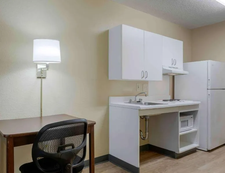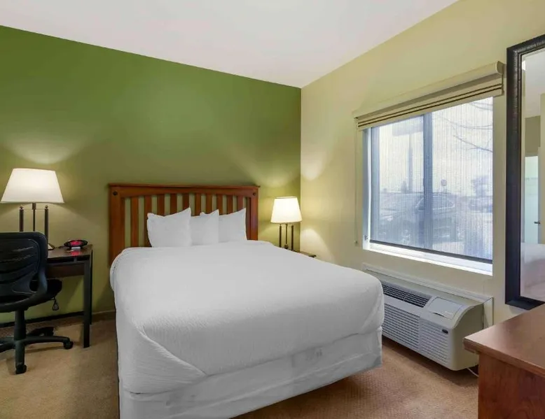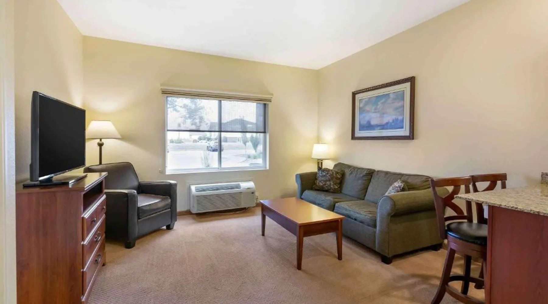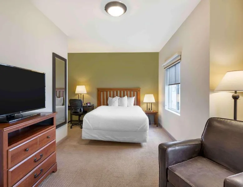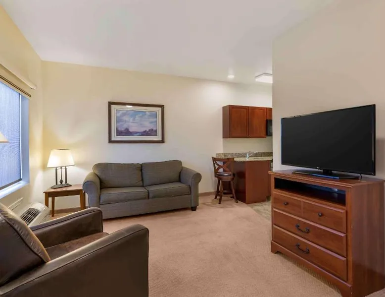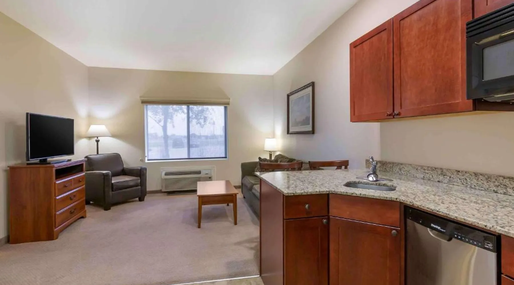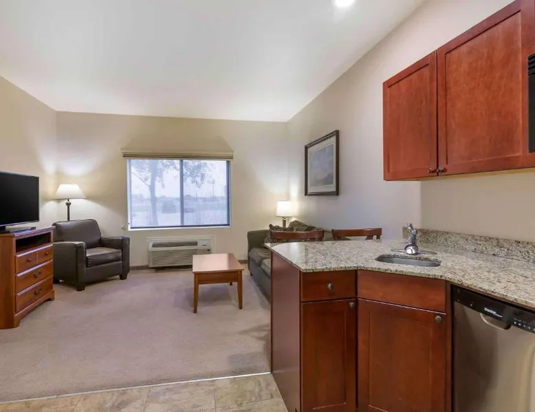 Comfortable Accommodations: Extended Stay Americas Suites - Minot in Minot offers spacious rooms with air-conditioning, private bathrooms, and fully equipped kitchens. Guests enjoy free WiFi, a fitness center, sun terrace, and bar. Convenient Facilities: The hotel features a lounge, outdoor fireplace, fitness room, elevator, 24-hour front desk, minimarket, outdoor seating area, picnic area, family rooms, barbecue facilities, and luggage storage. Dining Options: A fresh pastries breakfast is served daily. Additional amenities include a work desk, TV, and dining area. Location and Services: Located 3.1 mi from Minot International Airport, the property offers room size, comfort, and excellent service support. Offering free Wi-Fi and a flat-screen TV with cable channels, this suite includes a full kitchen and a living area with a sofa bed.