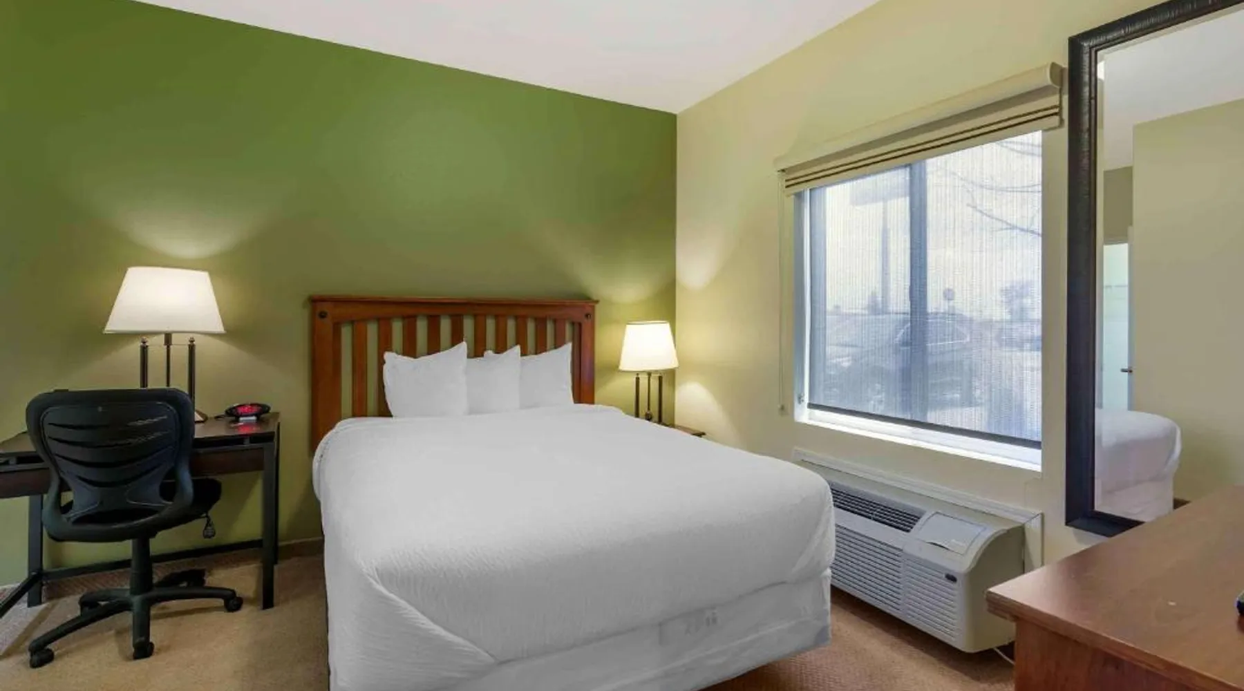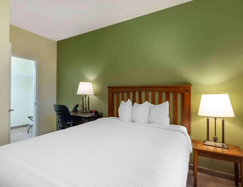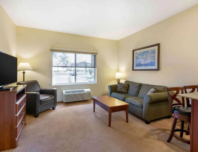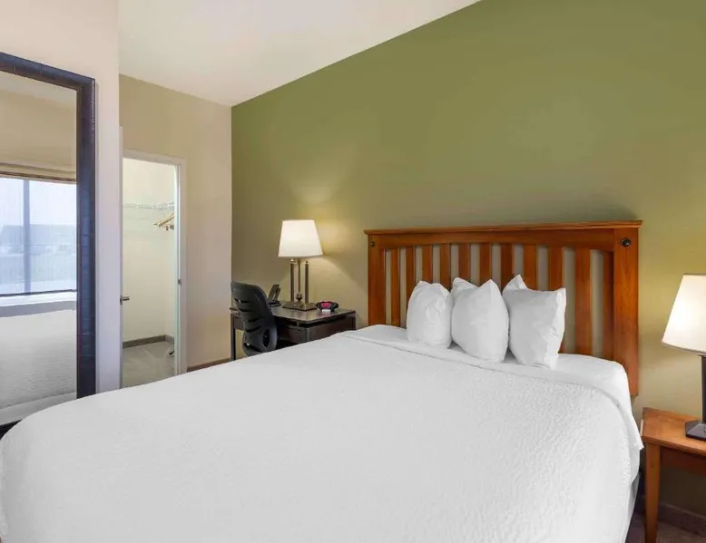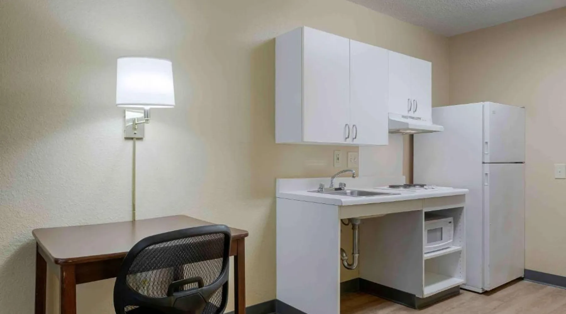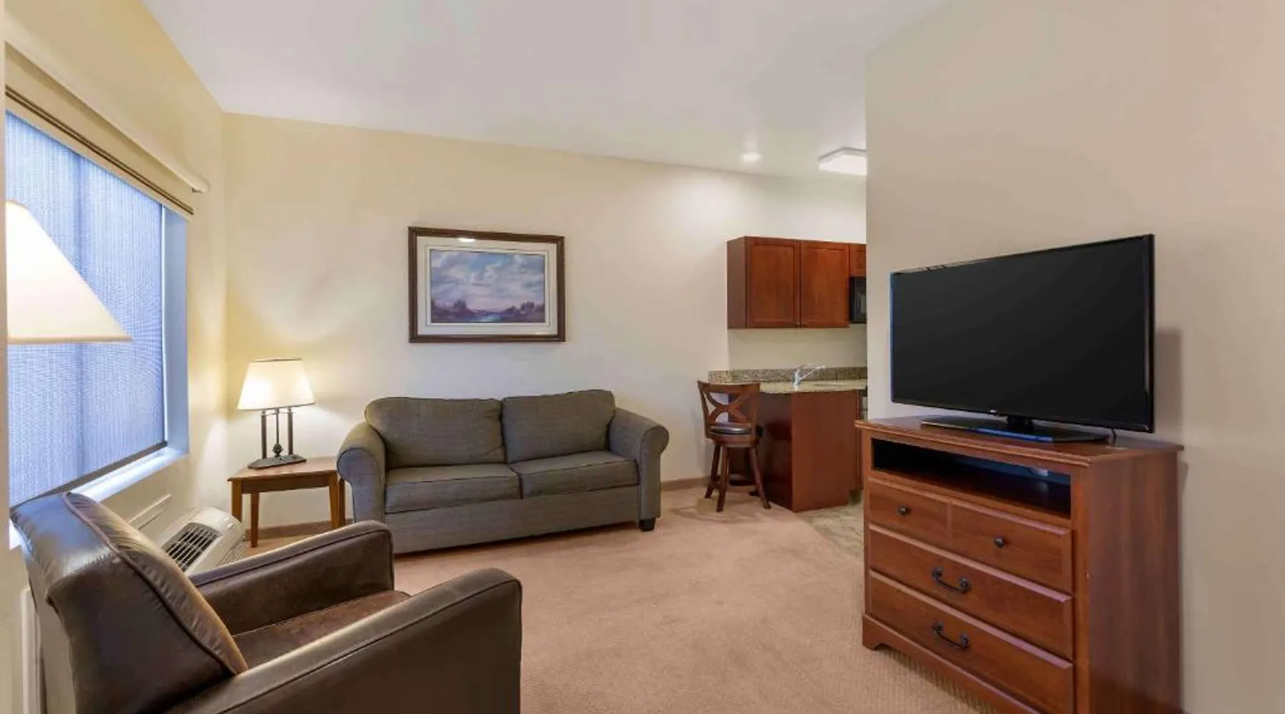 Comfortable Accommodations: Extended Stay Americas Suites - Minot in Minot offers spacious rooms with air-conditioning, private bathrooms, and fully equipped kitchens. Guests enjoy free WiFi, a fitness center, sun terrace, and bar. Convenient Facilities: The hotel features a lounge, outdoor fireplace, fitness room, elevator, 24-hour front desk, minimarket, outdoor seating area, picnic area, family rooms, barbecue facilities, and luggage storage. Dining Options: A fresh pastries breakfast is served daily. Additional amenities include a work desk, TV, and dining area. Location and Services: Located 3.1 mi from Minot International Airport, the property offers room size, comfort, and excellent service support. Offering free Wi-Fi and a flat-screen TV with cable channels, this suite includes a full kitchen and a living area with a sofa bed.
