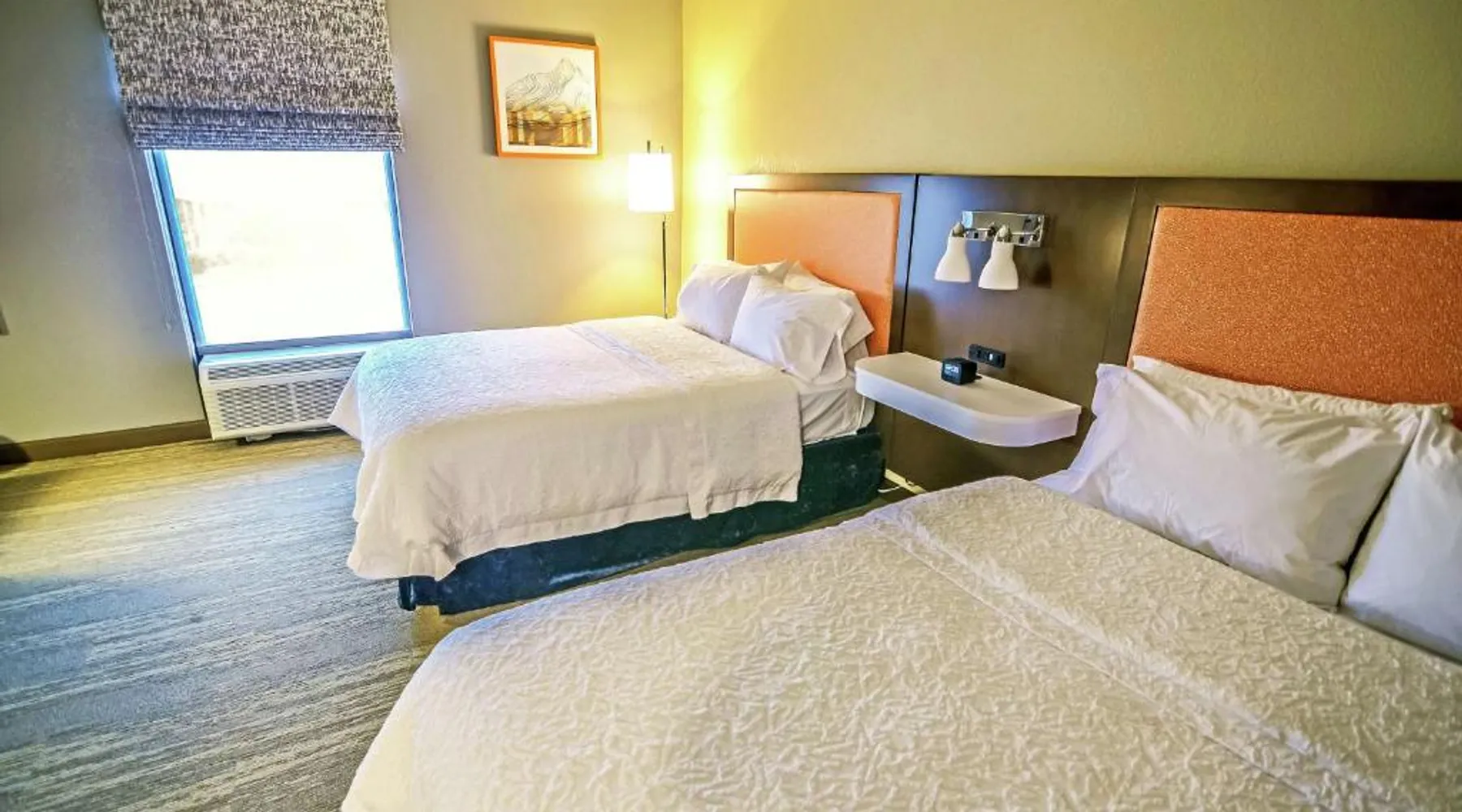 Comfortable Accommodations: Hampton Inn Fort Payne in Fort Payne offers family rooms with air-conditioning, free WiFi, and amenities such as a tea and coffee maker, hairdryer, refrigerator, work desk, and TV. Facilities and Services: Guests can enjoy a fitness center, lounge, fitness room, elevator, 24-hour front desk, electric vehicle charging station, business area, outdoor seating area, and luggage storage. Leisure and Dining: The hotel features a children's pool and indoor swimming pool, providing entertainment for all ages. Location and Access: Located 62 mi from Chattanooga Metropolitan Airport, the property offers paid on-site parking and is praised for its convenient location. The family room provides air conditioning, a tea and coffee maker, a safe deposit box, heating and a flat-screen TV. The unit offers 2 beds.