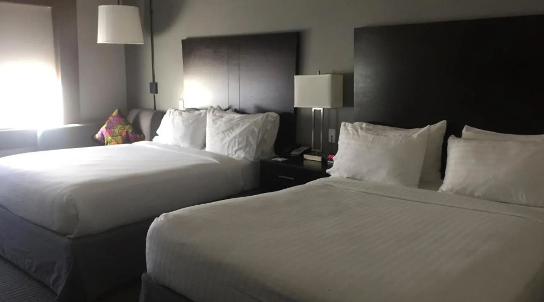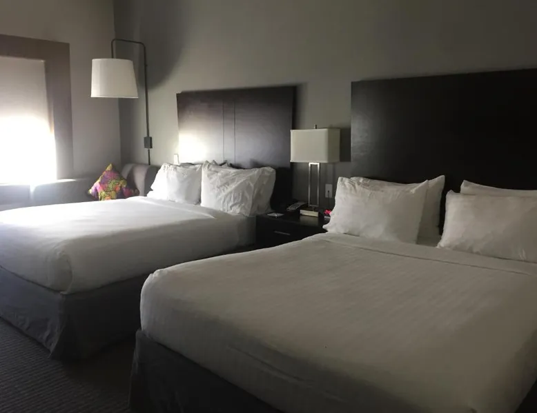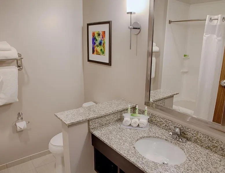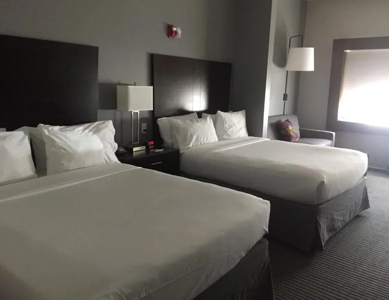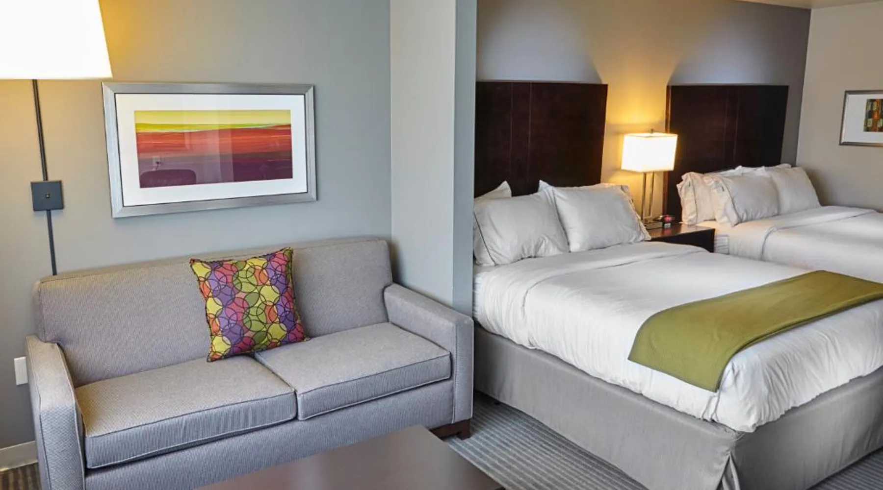 Comfortable Accommodations: Holiday Inn Express and Suites Tahlequah by IHG in Tahlequah offers comfortable rooms with air-conditioning, private bathrooms, and free WiFi. Each room includes a work desk, TV, and complimentary toiletries. Facilities and Services: Guests can enjoy a fitness center, lounge, casino, and outdoor seating area. Additional amenities include a business area, child-friendly buffet, and free on-site parking. The hotel provides a 24-hour front desk, daily housekeeping, and express check-in and check-out services. Dining Options: A continental breakfast is served with vegetarian options, including juice, fresh pastries, pancakes, cheese, and fruits. The property also offers a child-friendly buffet. Location and Activities: Located 64 mi from Northwest Arkansas Regional Airport, the hotel is near attractions such as fishing, hiking, and cycling. Guests appreciate the breakfast provided by the property, room cleanliness, and attentive staff. Featuring free toiletries, this suite includes a private bathroom with a walk-in shower, a bath and a hairdryer. The suite has tiled floors, a seating area with a flat-screen TV with cable channels, air conditioning, a tea and coffee maker, as well as a wardrobe. The unit has 2 beds.
