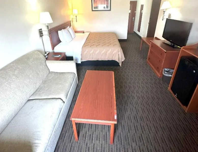 Comfortable Accommodations: Sunflower Inn & Suites in Salina offers family rooms with air-conditioning, private bathrooms, and free WiFi. Each room includes a work desk, TV, and complimentary toiletries. Dining and Leisure: Guests can enjoy a restaurant serving Indian, American, Mexican, Thai, and Asian cuisines, alongside a bar. The hotel features an indoor swimming pool, hot tub, and games room. Convenient Services: The property provides free on-site parking, a 24-hour front desk, and express check-in and check-out. Additional amenities include a lounge, outdoor seating area, and picnic spots. Breakfast and Dining: A variety of breakfast options are available, including continental, American, buffet, and vegetarian. The restaurant offers local specialties, fresh pastries, and warm dishes. Offering free Wi-Fi and a flat-screen TV with HBO film channels, this room includes a refrigerator and tea and coffee-making facilities. A sofa bed is also provided.