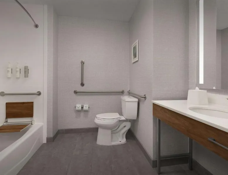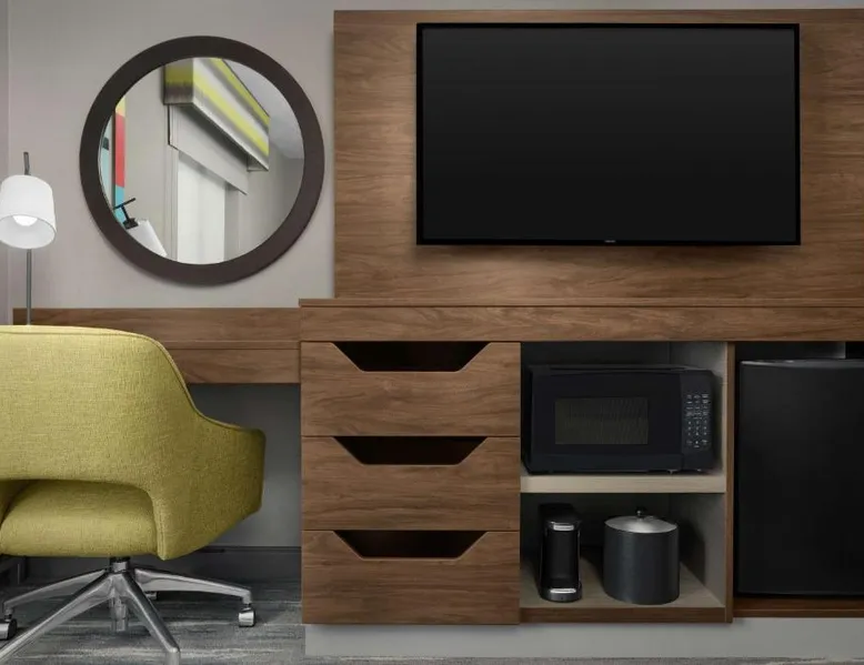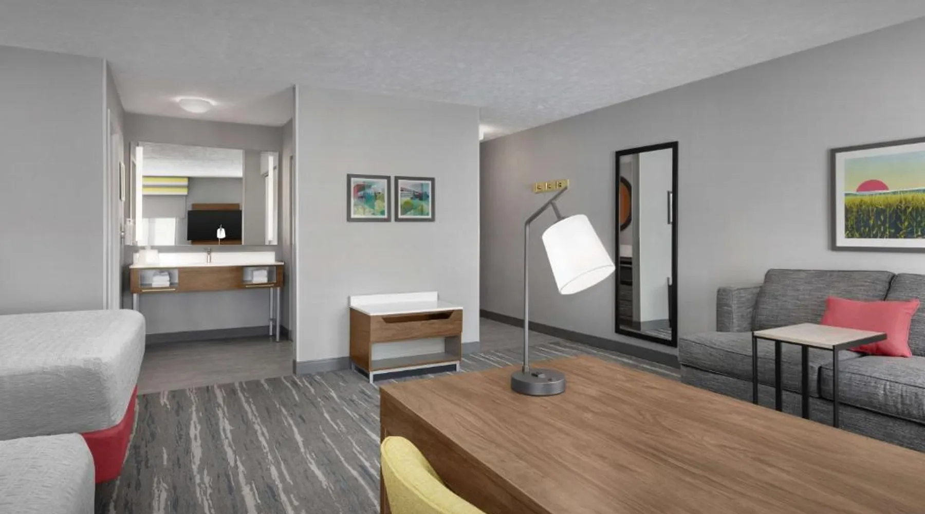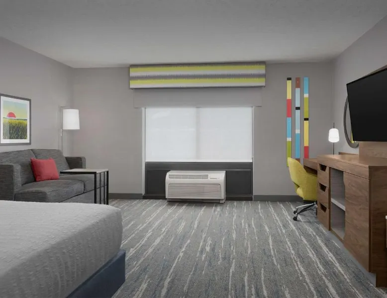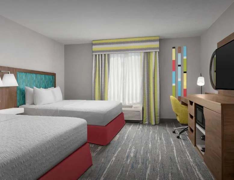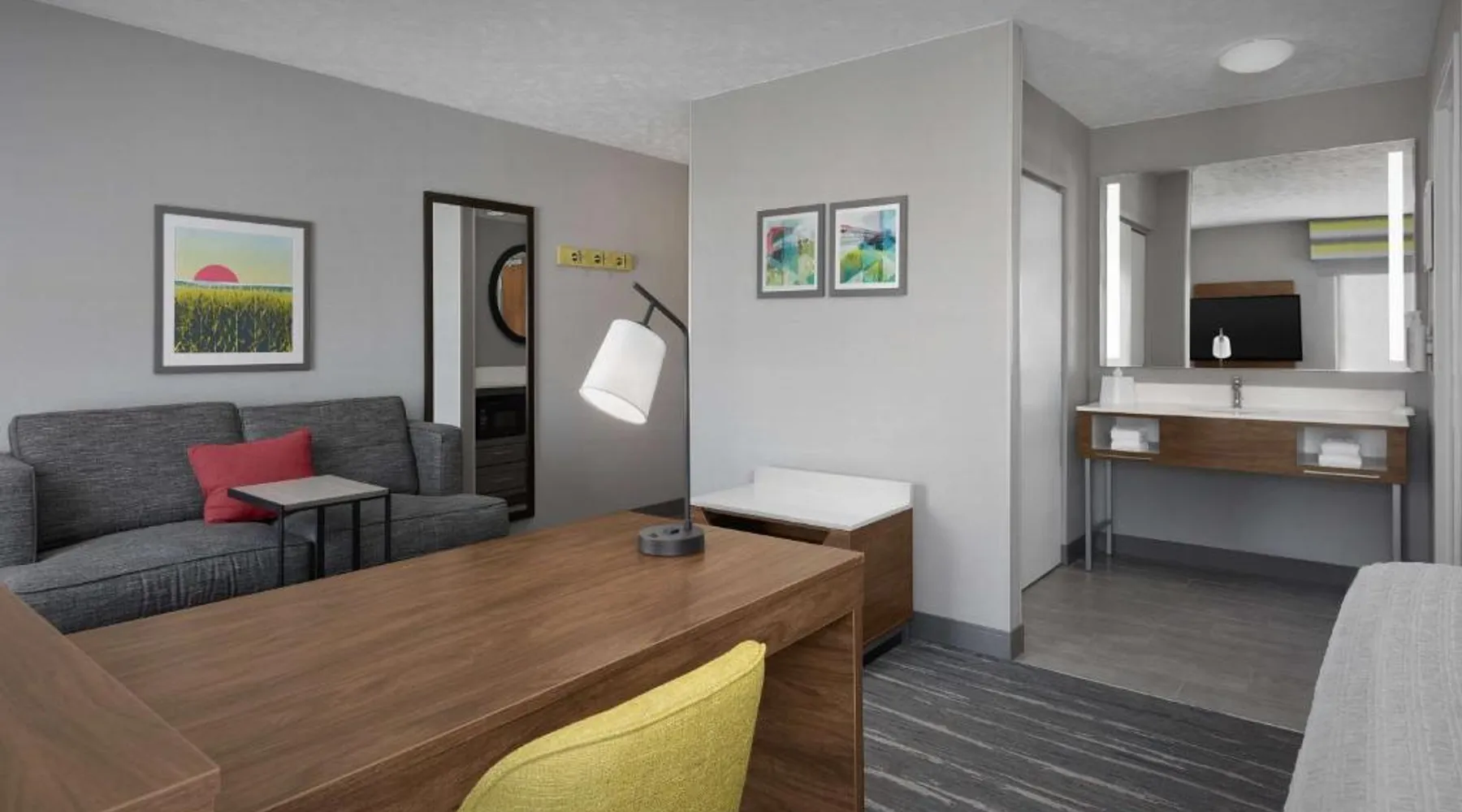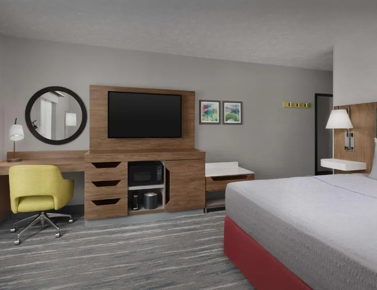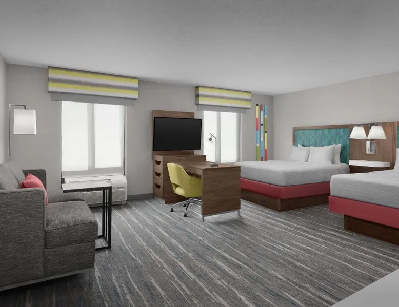 Comfortable Accommodations: Hampton Inn Waterloo in Waterloo offers rooms with free WiFi, air-conditioning, and modern amenities. Guests appreciate the room cleanliness and comfort. Facilities and Services: The hotel features a fitness room, elevator, 24-hour front desk, minimarket, daily housekeeping, electric vehicle charging, and luggage storage. Free on-site parking is available. Breakfast and Dining: A continental buffet breakfast with warm dishes, fresh pastries, cheese, and fruits is served daily. Additional amenities include a sofa bed, free toiletries, shower, and TV. Location and Attractions: Located 7.5 mi from Waterloo Regional Airport and 9.3 mi from Gallagher Bluedorn Performing Arts Center. Guests enjoy easy access to local attractions. This room features WiFi, a 55-inch flat-screen TV, a microwave and a small refrigerator. A desk is provided as well.