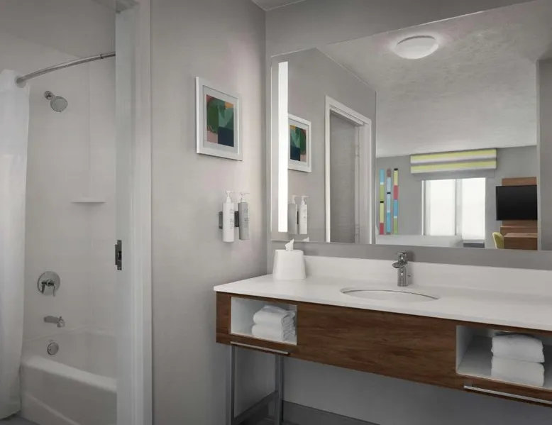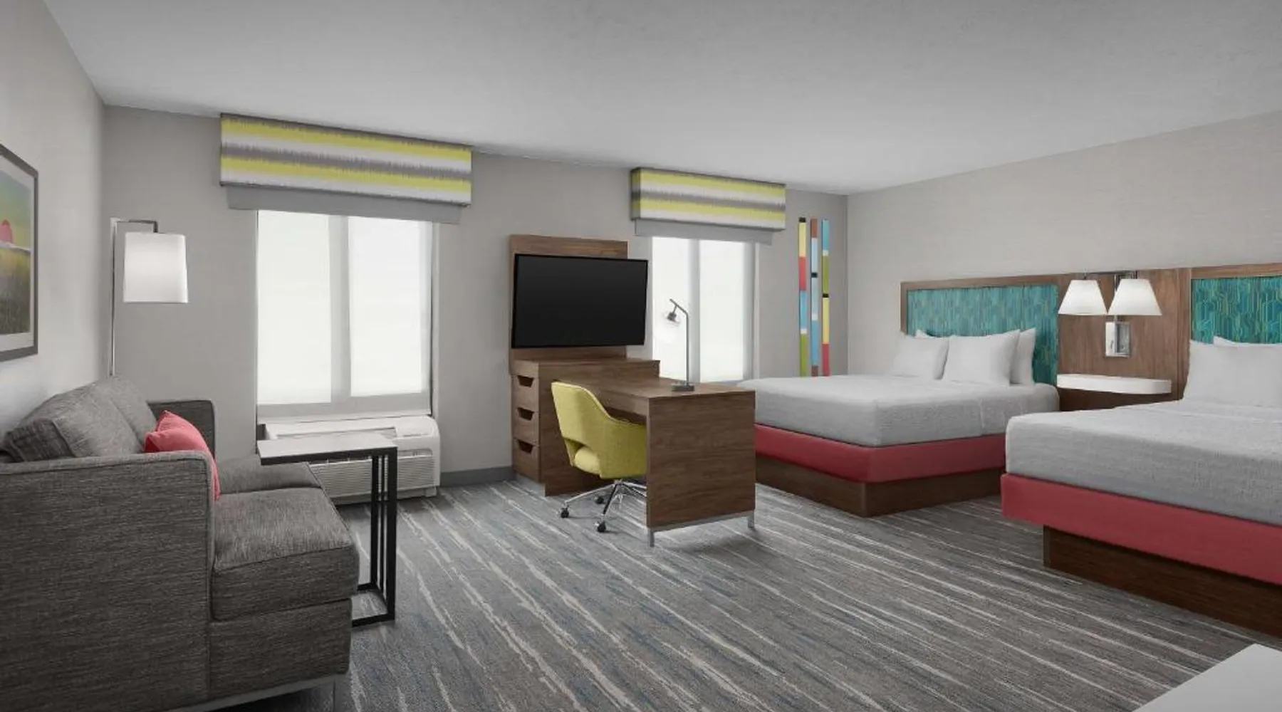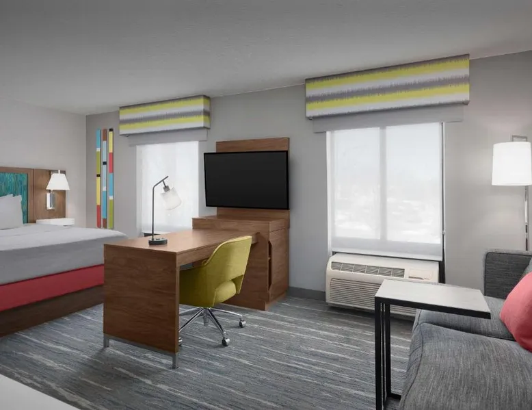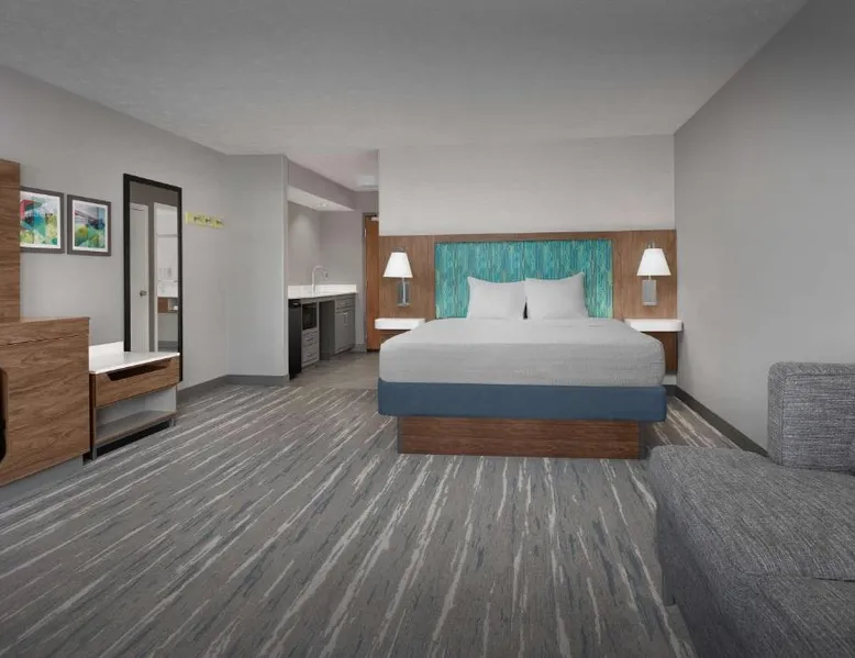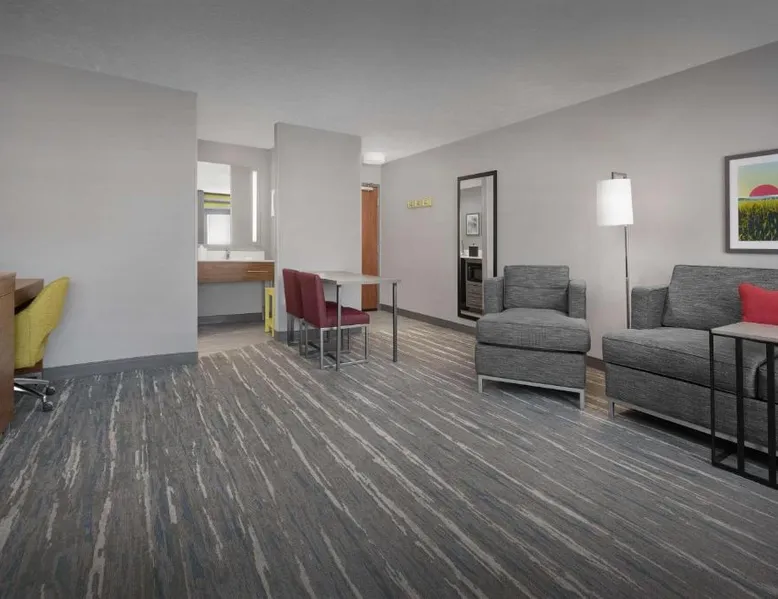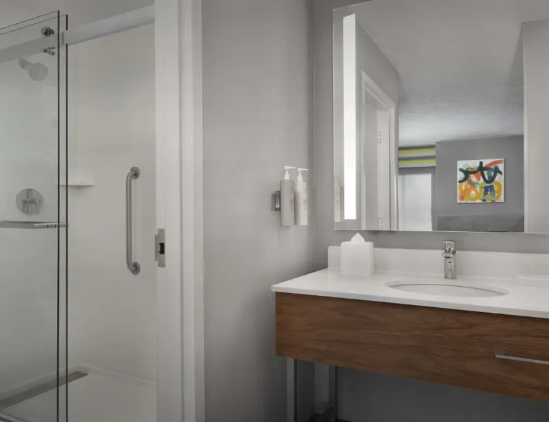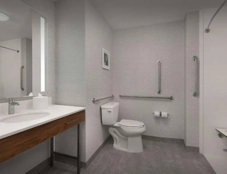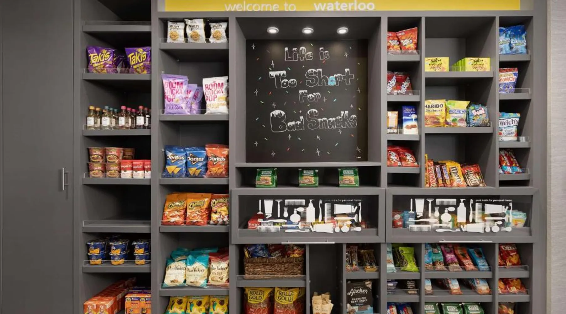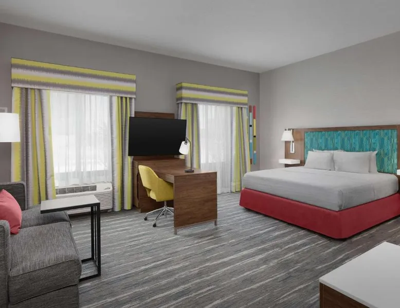 Comfortable Accommodations: Hampton Inn Waterloo in Waterloo offers rooms with free WiFi, air-conditioning, and modern amenities. Guests appreciate the room cleanliness and comfort. Facilities and Services: The hotel features a fitness room, elevator, 24-hour front desk, minimarket, daily housekeeping, electric vehicle charging, and luggage storage. Free on-site parking is available. Breakfast and Dining: A continental buffet breakfast with warm dishes, fresh pastries, cheese, and fruits is served daily. Additional amenities include a sofa bed, free toiletries, shower, and TV. Location and Attractions: Located 7.5 mi from Waterloo Regional Airport and 9.3 mi from Gallagher Bluedorn Performing Arts Center. Guests enjoy easy access to local attractions. This room features WiFi, a 55-inch flat-screen TV, a microwave and a small refrigerator. A desk is provided as well.