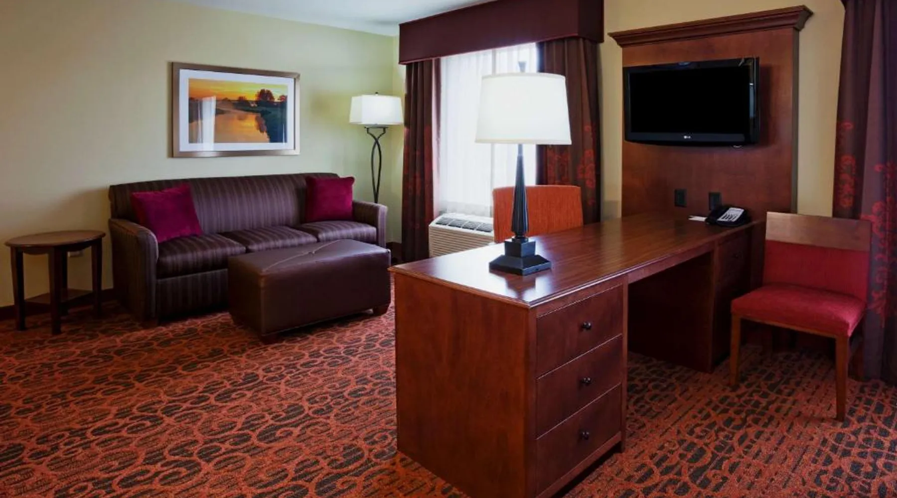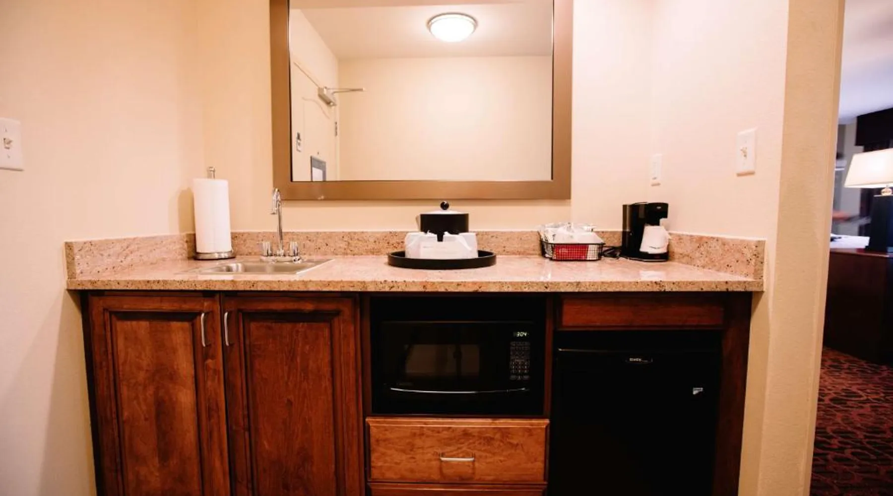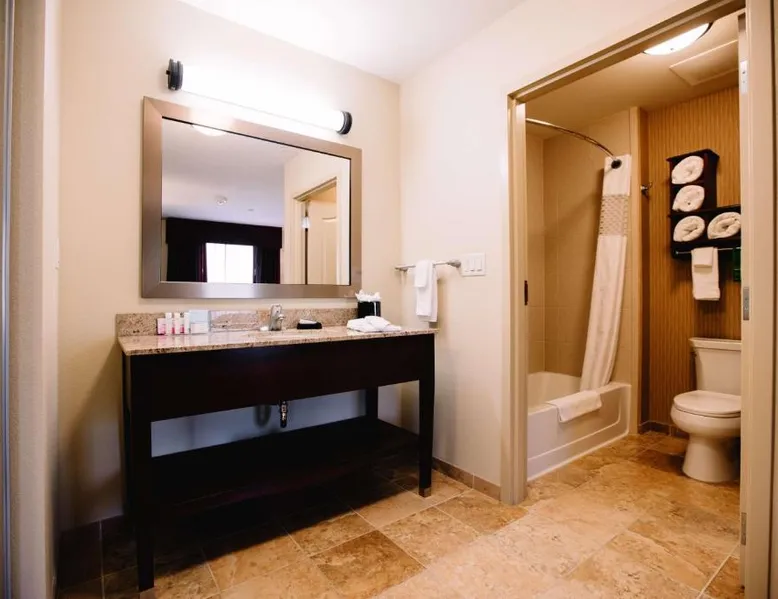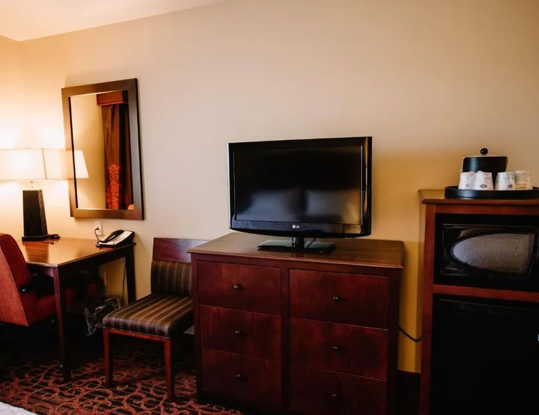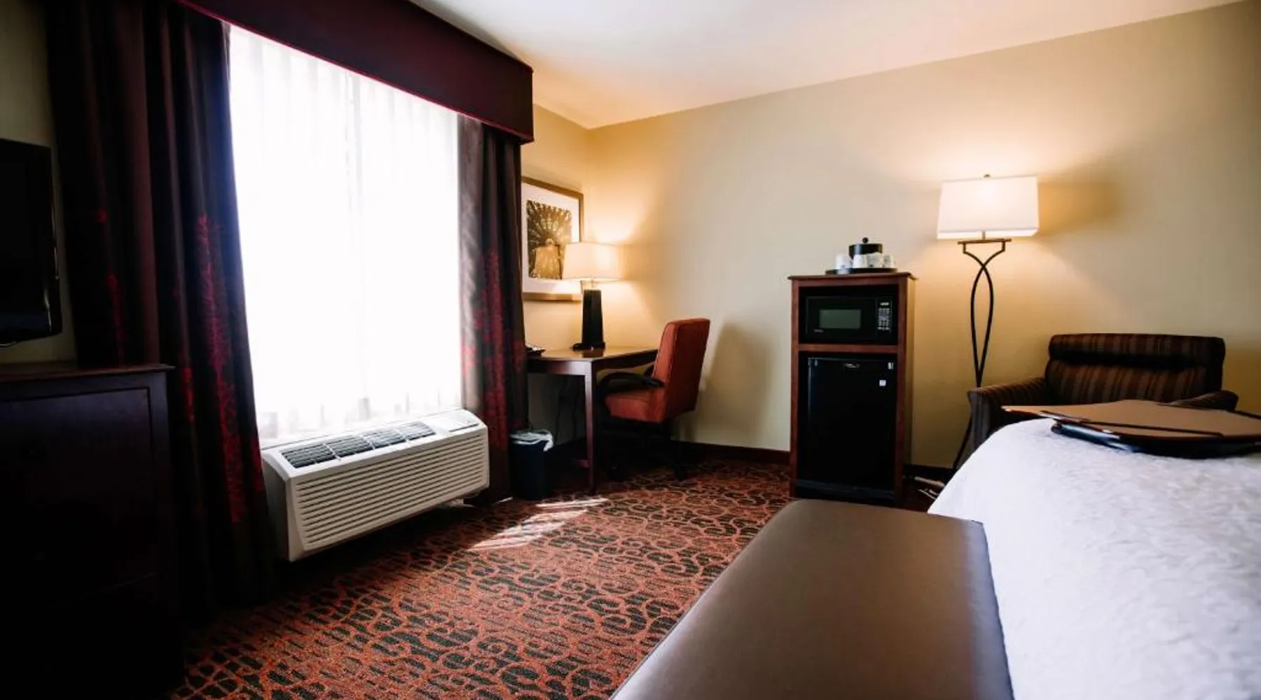 Comfortable Accommodations: Hampton Inn & Suites Minot in Minot offers family rooms with free WiFi, air-conditioning, and modern amenities. Each room includes a tea and coffee maker, hairdryer, refrigerator, free toiletries, microwave, shower, and TV. Exceptional Facilities: Guests can enjoy a fitness center, indoor swimming pool, and hot tub. Additional facilities include a 24-hour front desk, elevator, and free on-site private parking. Delicious Breakfast: A continental buffet breakfast is served daily, highly praised by guests for its quality and variety. Convenient Location: Located 0.6 mi from Minot International Airport, the hotel provides a free airport shuttle service. Reception staff speak English. Offering free Wi-Fi and a 32-inch flat-screen TV, this room is equipped with with tea and coffee-making facilities, a small refrigerator and a microwave.