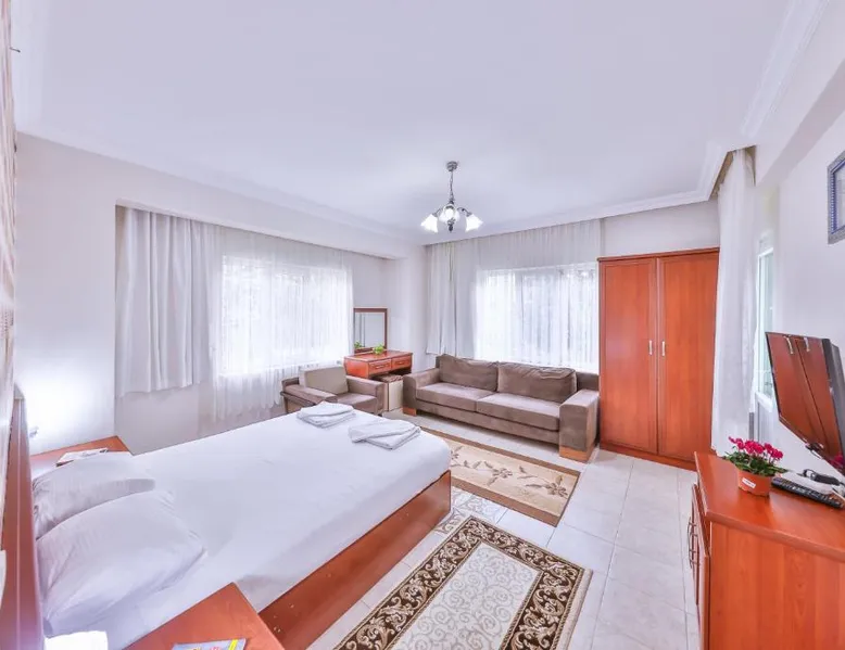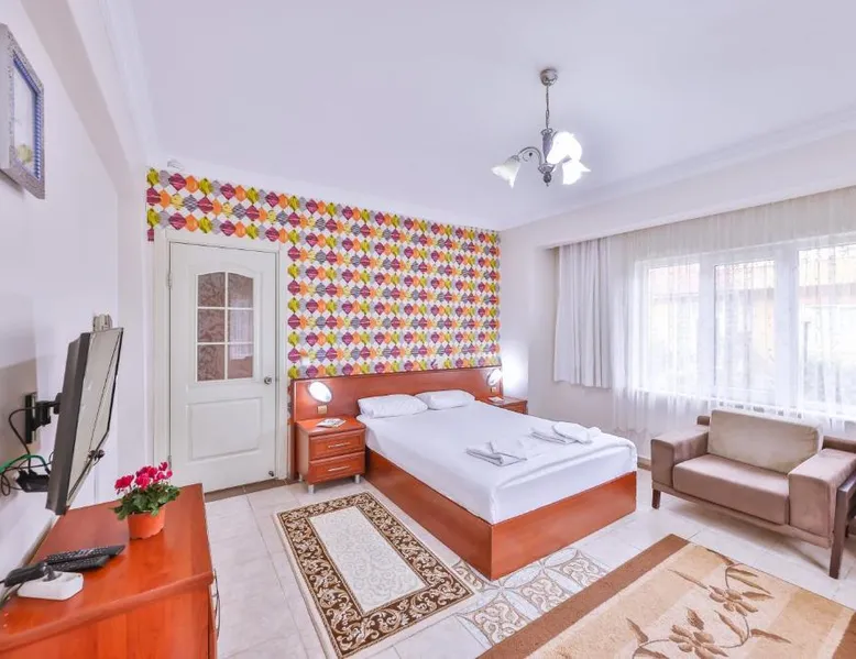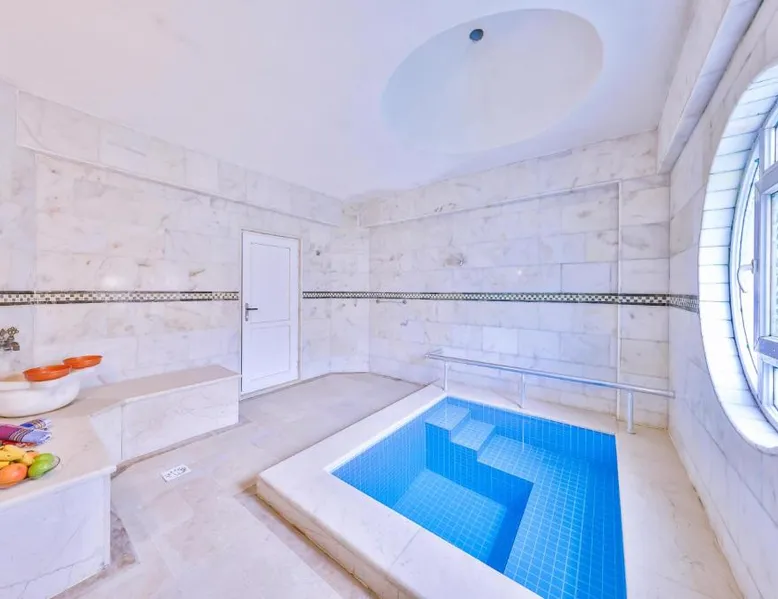 Elegant Accommodations: Afyon Dundar Thermal Villa in Afyon offers a villa with a hot spring bath, a lush garden, and free WiFi. Guests enjoy private check-in and check-out services, a 24-hour front desk, and free on-site parking. Comfortable Amenities: The property features a hot tub, hammam, and a children's playground. Additional facilities include a minimarket, bike hire, barbecue areas, and a soundproofed balcony. Family rooms and express check-in and check-out services cater to all guests. Delicious Breakfast: A continental or halal breakfast is served with local specialties and cheese. Guests can relax in the spa bath or enjoy the garden views from their balcony. Convenient Location: Located 29 mi from Zafer Airport and 30 mi from Yazilikaya Frig Valley, the villa provides easy access to local attractions. Guests appreciate the convenient location and the variety of activities available. This villa features a balcony, kitchen and kitchenware. A private Turkish bath with a thermal pool is also available.