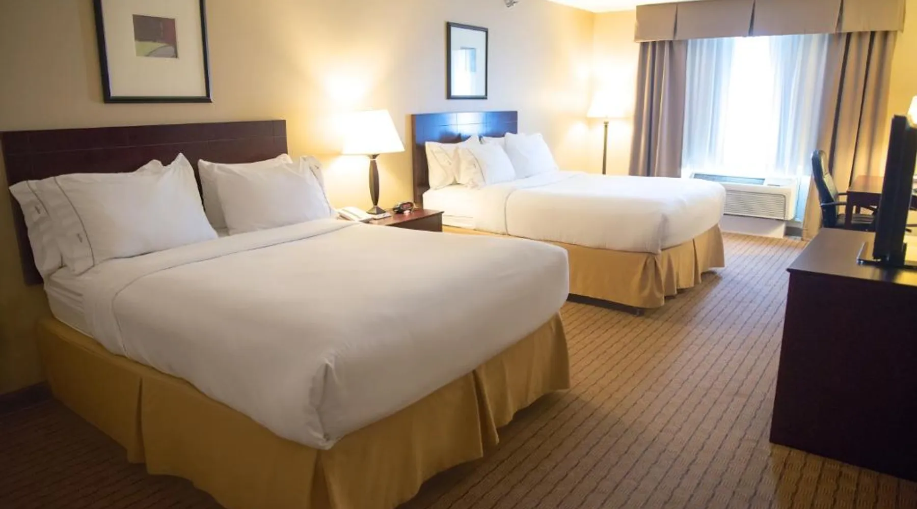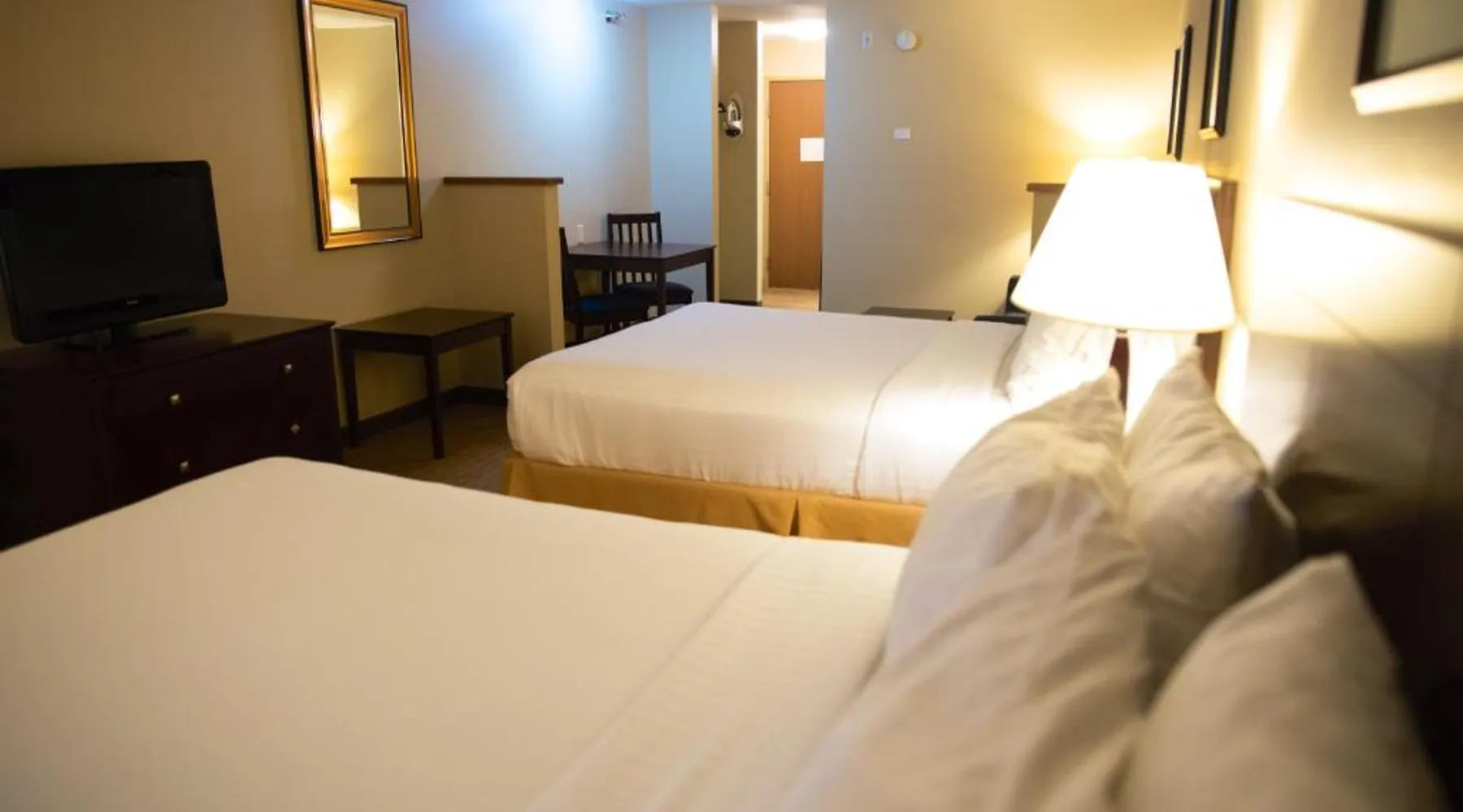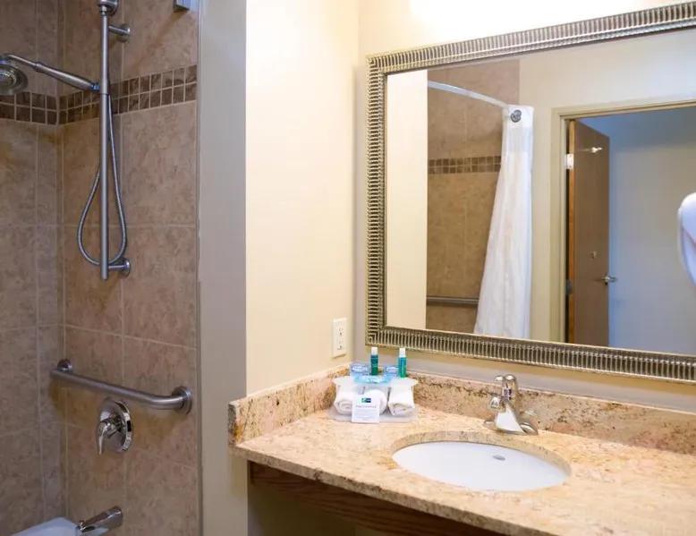 Comfortable Accommodations: Holiday Inn Express Devils Lake by IHG in Devils Lake offers comfortable rooms with air-conditioning, private bathrooms, and free WiFi. Each room includes a work desk, sofa bed, and TV, ensuring a pleasant stay. Leisure Facilities: Guests can enjoy a spa and wellness center, indoor swimming pool, fitness center, and a beautiful garden. Additional amenities include a lounge, fitness room, and outdoor seating area, providing ample opportunities for relaxation and exercise. Convenient Services: The hotel provides private check-in and check-out, a 24-hour front desk, daily housekeeping, and free on-site parking. Additional services include laundry, car hire, and luggage storage, catering to all guest needs. Local Attractions: Located 2.5 mi from Devils Lake Municipal Airport, the hotel is near attractions such as hiking and cycling trails. Guests appreciate the friendly staff and excellent service support, enhancing their overall stay experience. Offering free toiletries, this double room includes a private bathroom with a shower and a hairdryer. The spacious double room offers air conditioning, a private entrance, a coffee machine, a seating area, as well as a flat-screen TV with cable channels. The unit offers 2 beds.