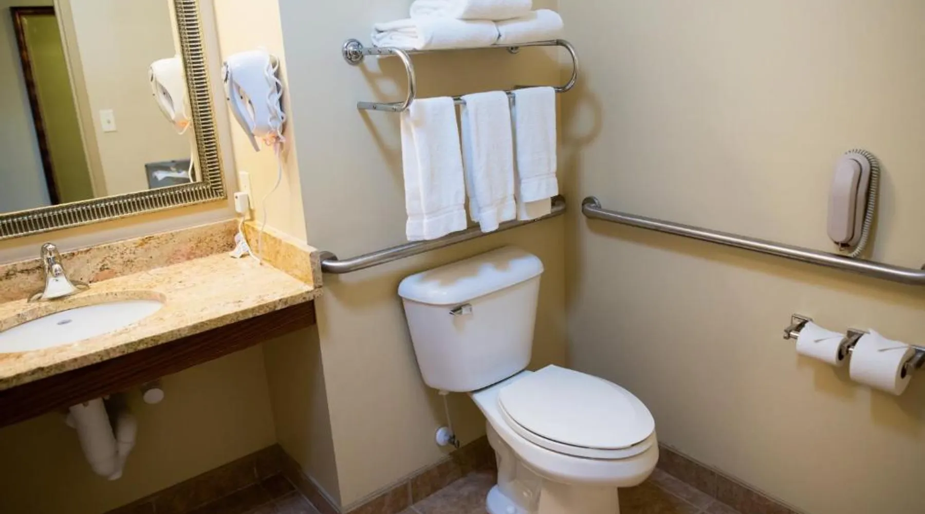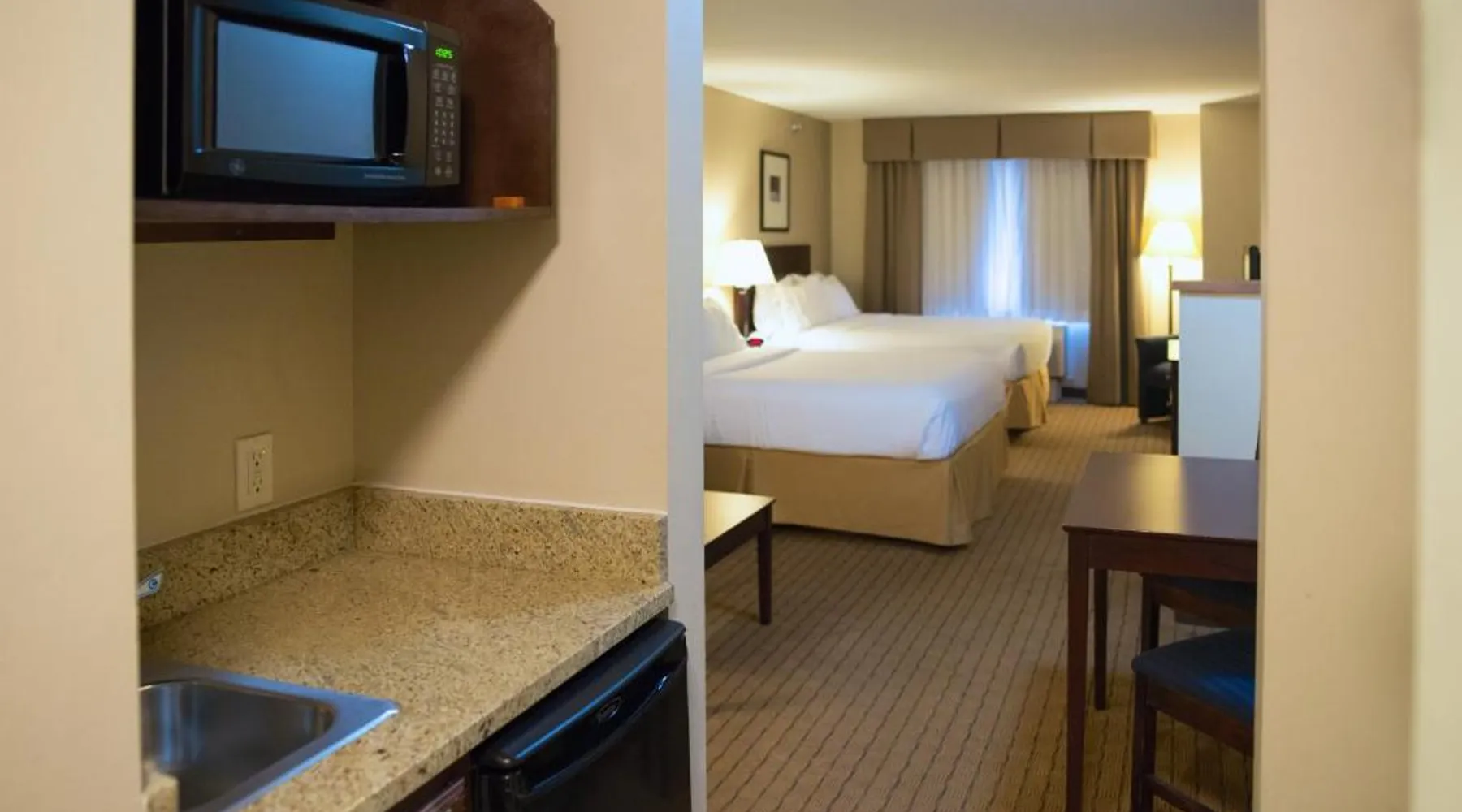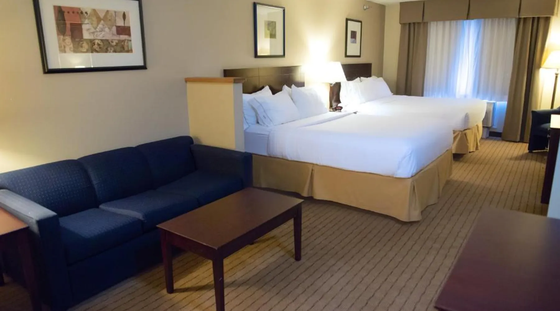 Comfortable Accommodations: Holiday Inn Express Devils Lake by IHG in Devils Lake offers comfortable rooms with air-conditioning, private bathrooms, and free WiFi. Each room includes a work desk, sofa bed, and TV, ensuring a pleasant stay. Leisure Facilities: Guests can enjoy a spa and wellness center, indoor swimming pool, fitness center, and a beautiful garden. Additional amenities include a lounge, fitness room, and outdoor seating area, providing ample opportunities for relaxation and exercise. Convenient Services: The hotel provides private check-in and check-out, a 24-hour front desk, daily housekeeping, and free on-site parking. Additional services include laundry, car hire, and luggage storage, catering to all guest needs. Local Attractions: Located 2.5 mi from Devils Lake Municipal Airport, the hotel is near attractions such as hiking and cycling trails. Guests appreciate the friendly staff and excellent service support, enhancing their overall stay experience. Offering free toiletries, this double room includes a private bathroom with a shower and a hairdryer. The spacious double room offers air conditioning, a private entrance, a coffee machine, a seating area, as well as a flat-screen TV with cable channels. The unit offers 2 beds.
